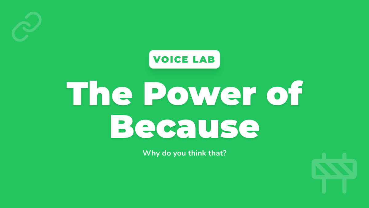 A foundational lesson for kindergarten students on using the word 'because' to link an opinion with a supporting reason, using relatable examples like food and play.
