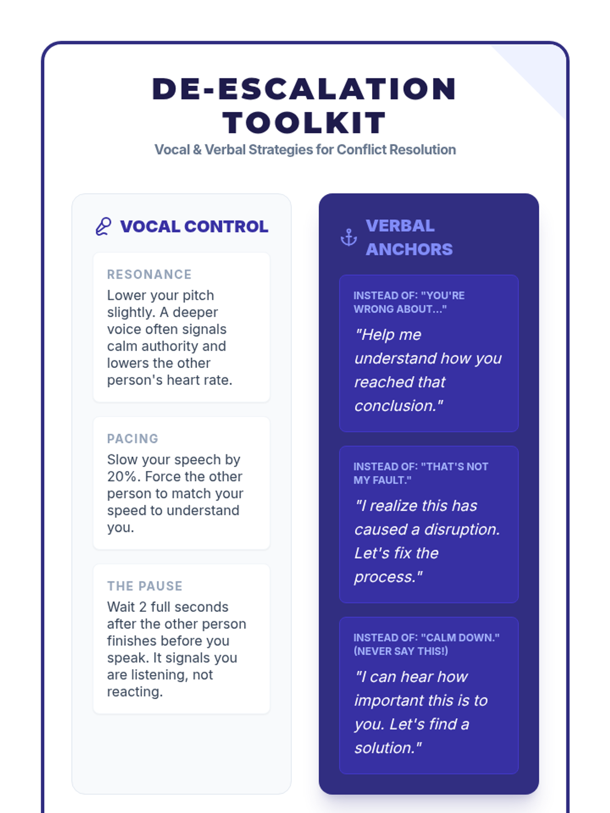 Students evaluate emotional cues and de-escalation techniques in conflict resolution scenarios.