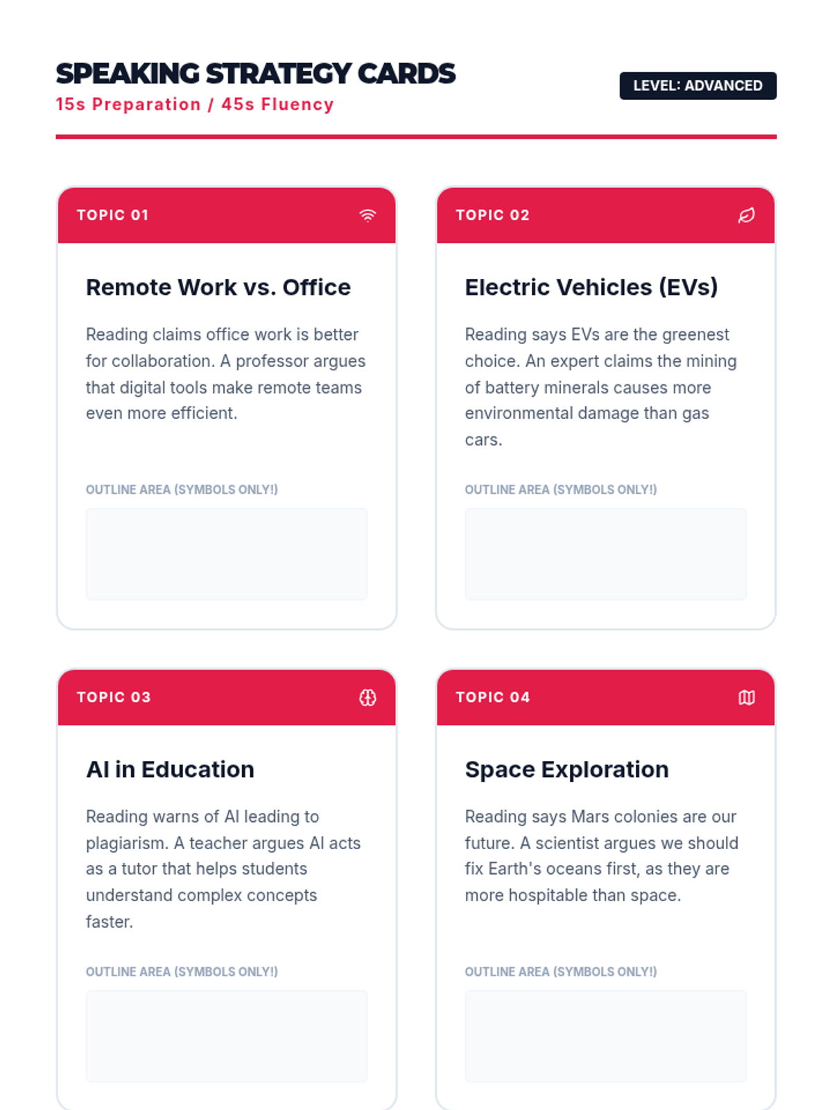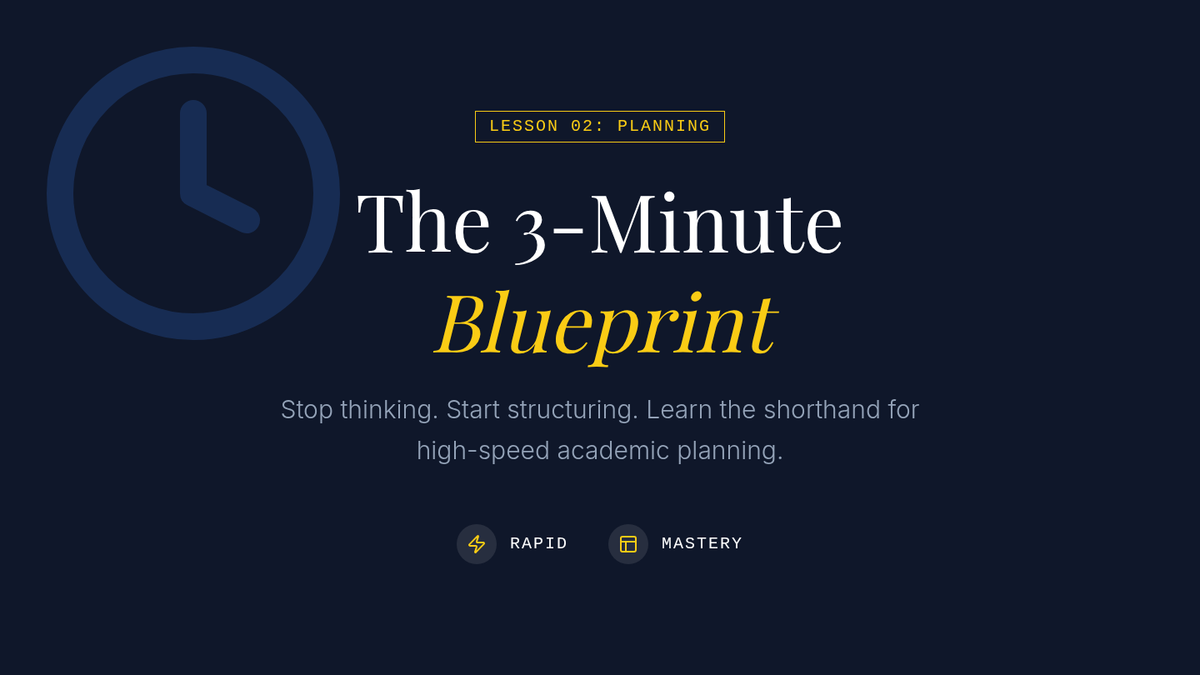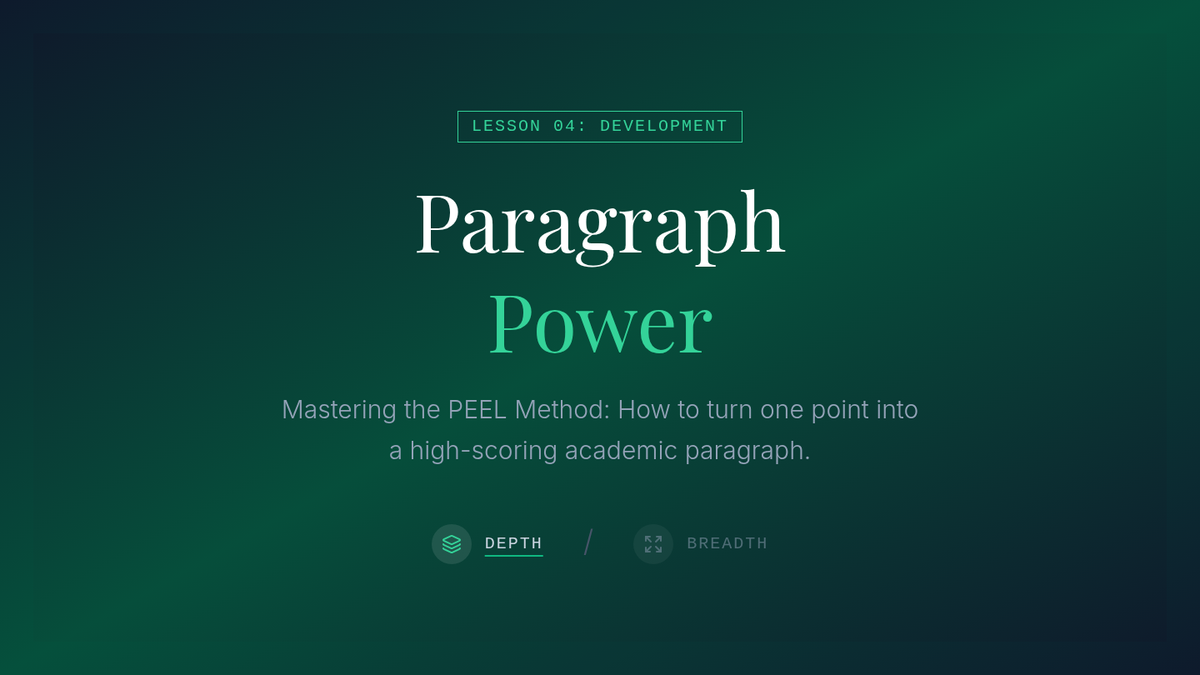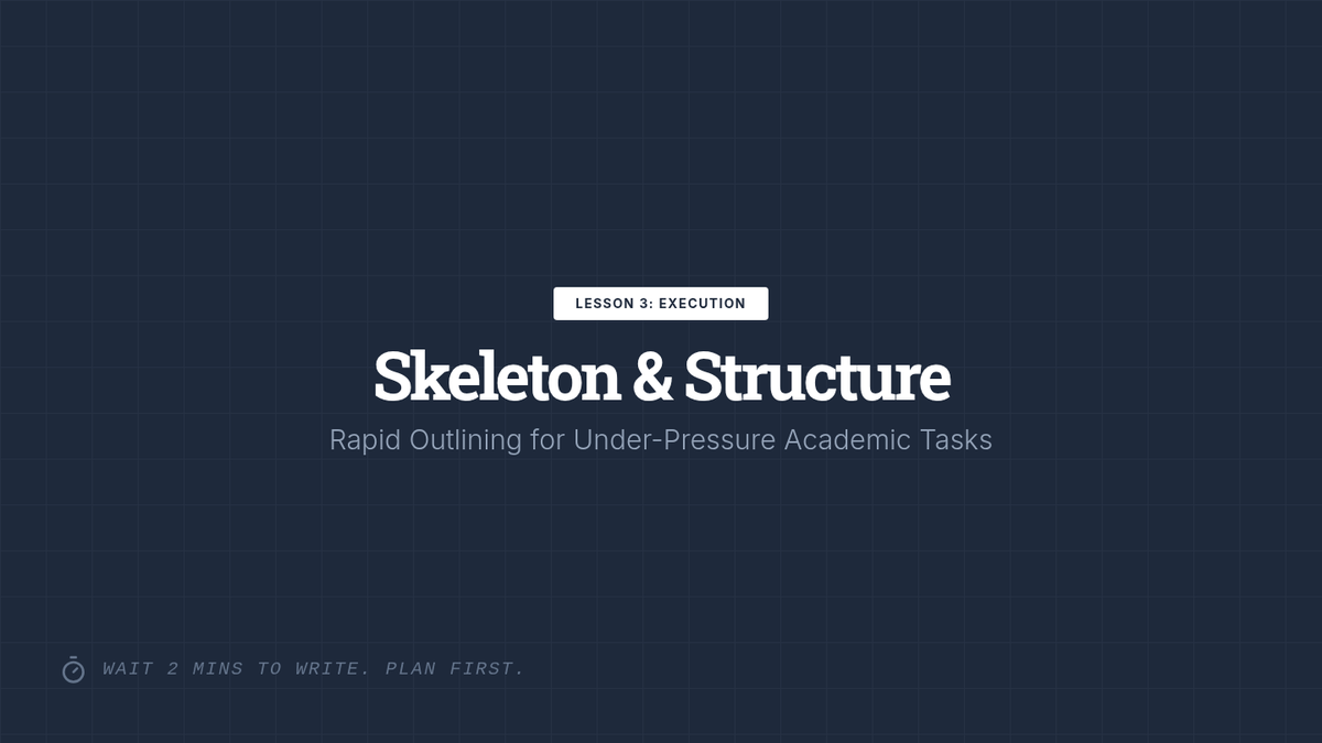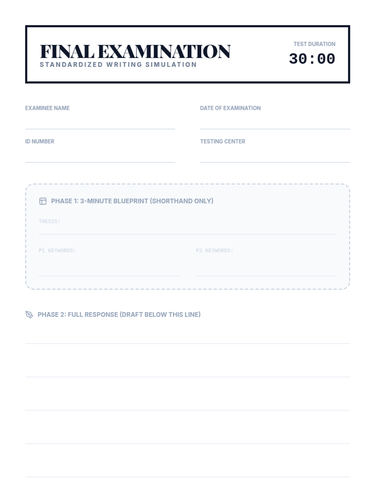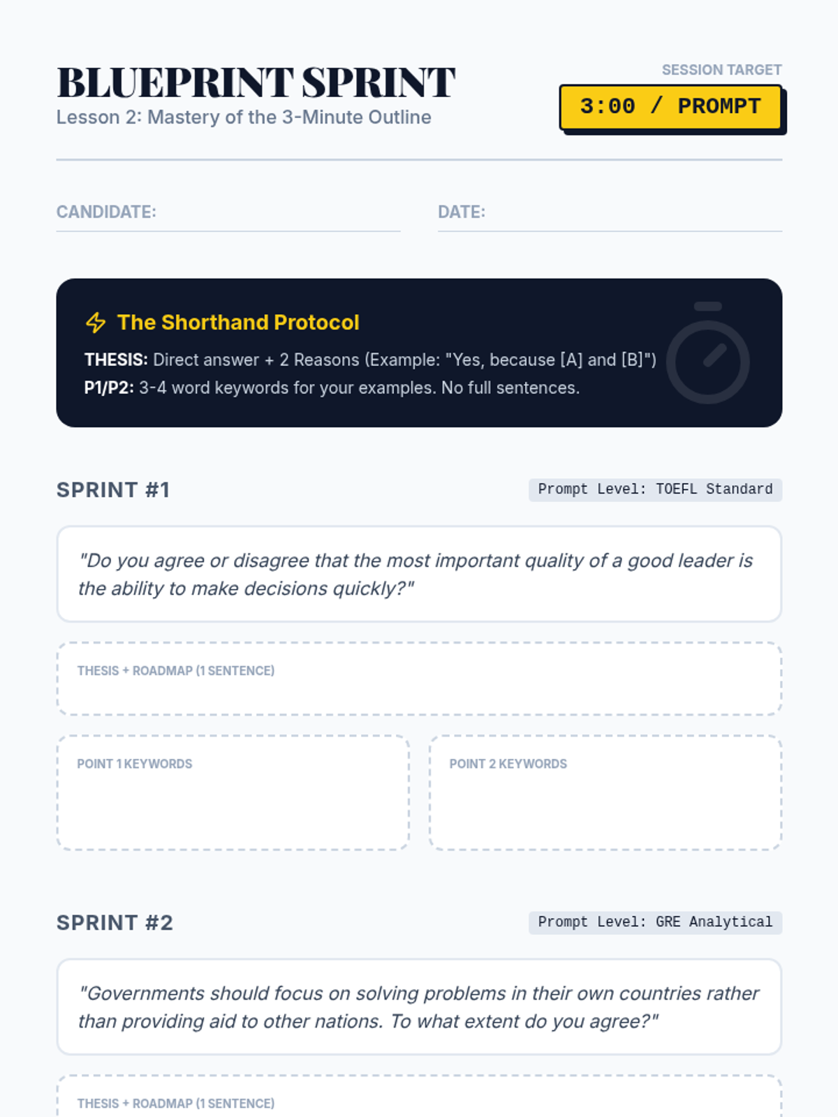 Focuses on the skill of rapid planning, teaching students a shorthand method to generate a thesis and two supporting points within a strict three-minute window.