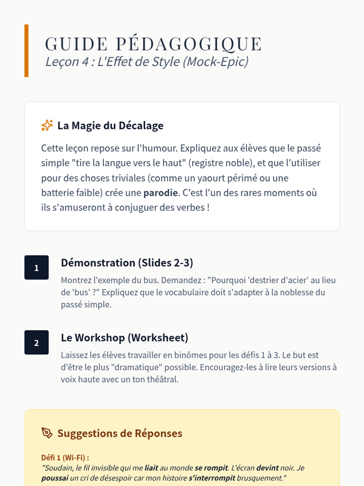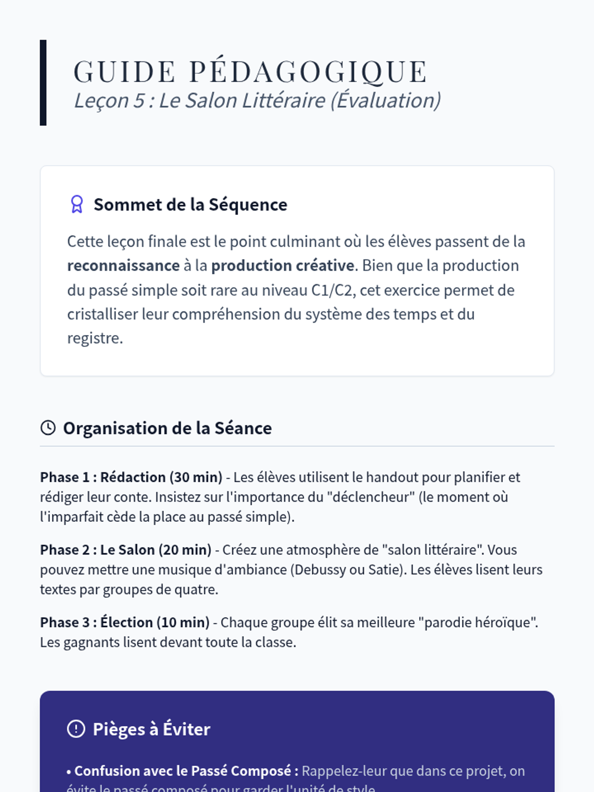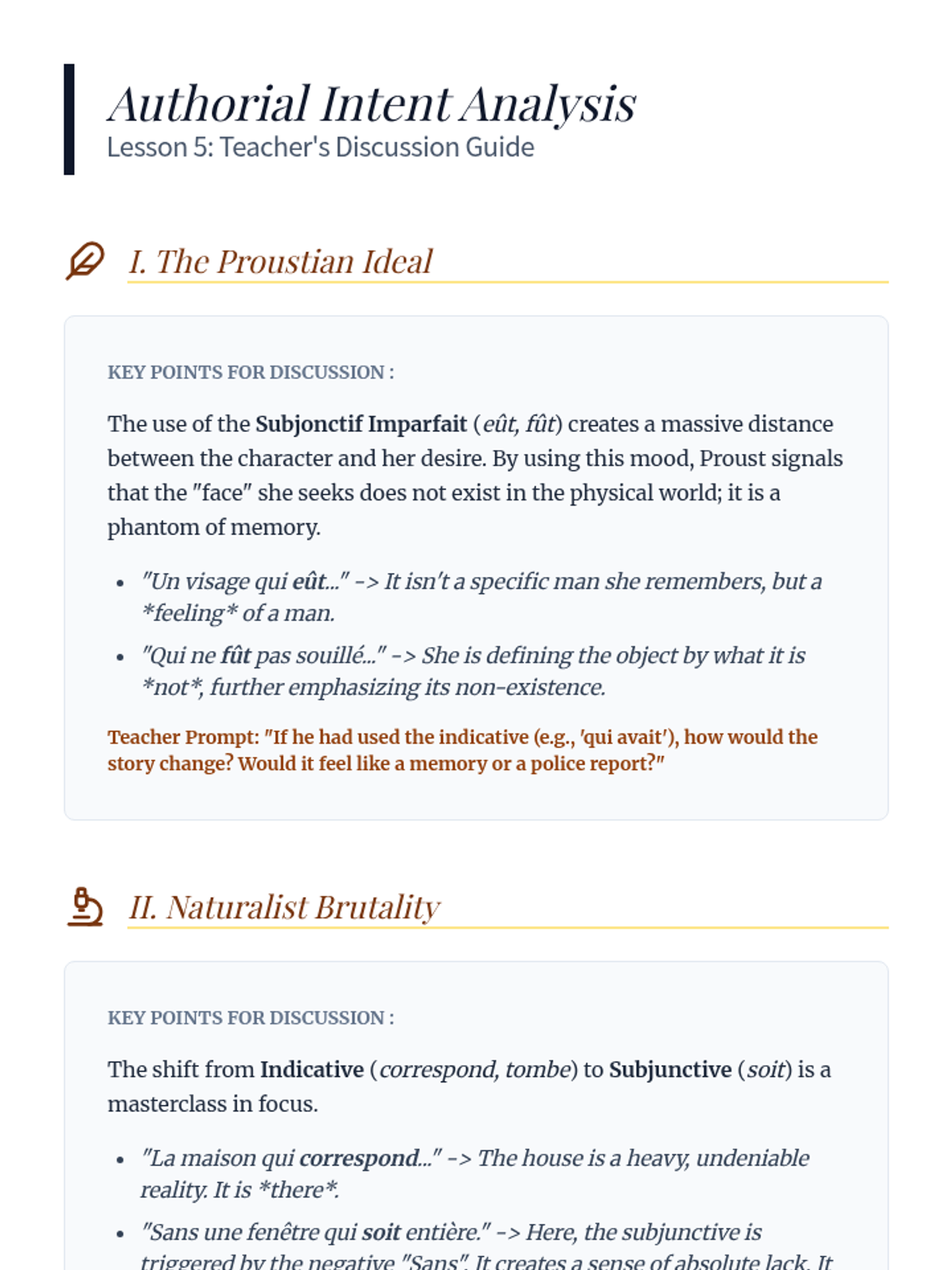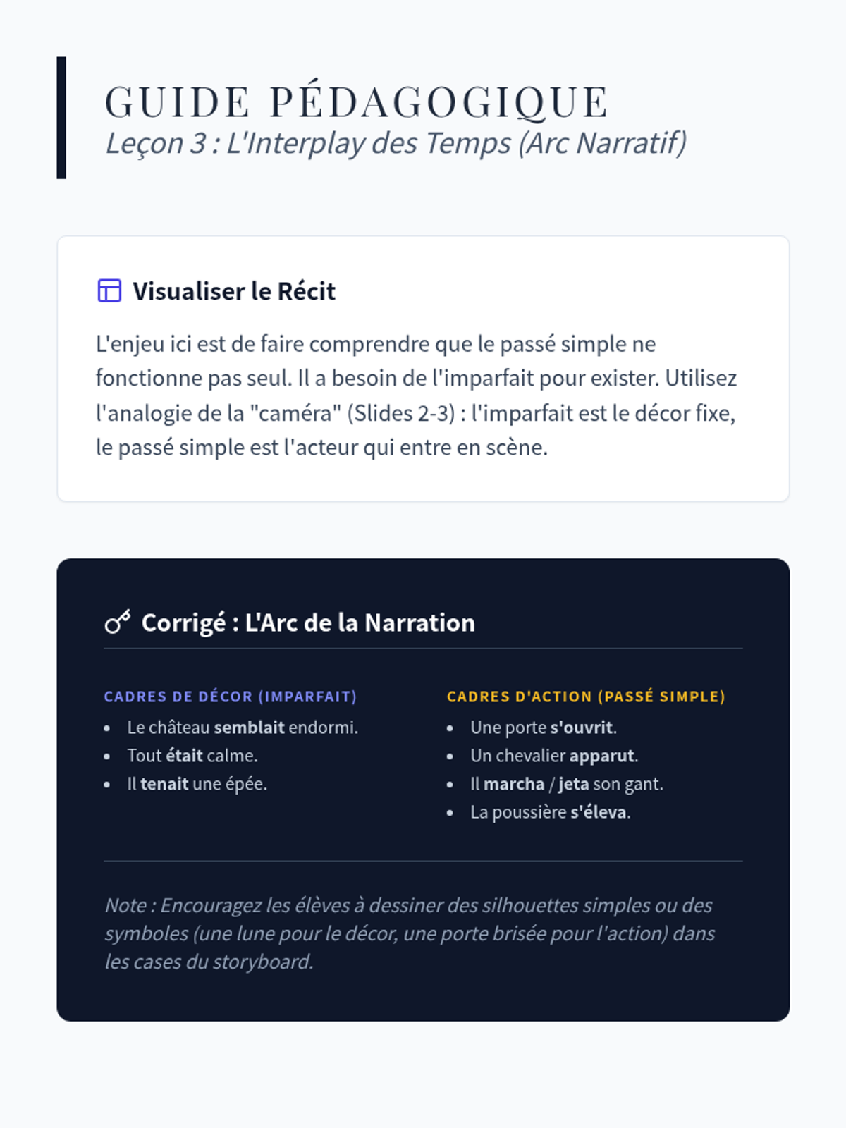 A mastery-focused lesson on identifying and interpreting the 'passé simple' in 19th and 20th-century French literature to understand narrative distance.