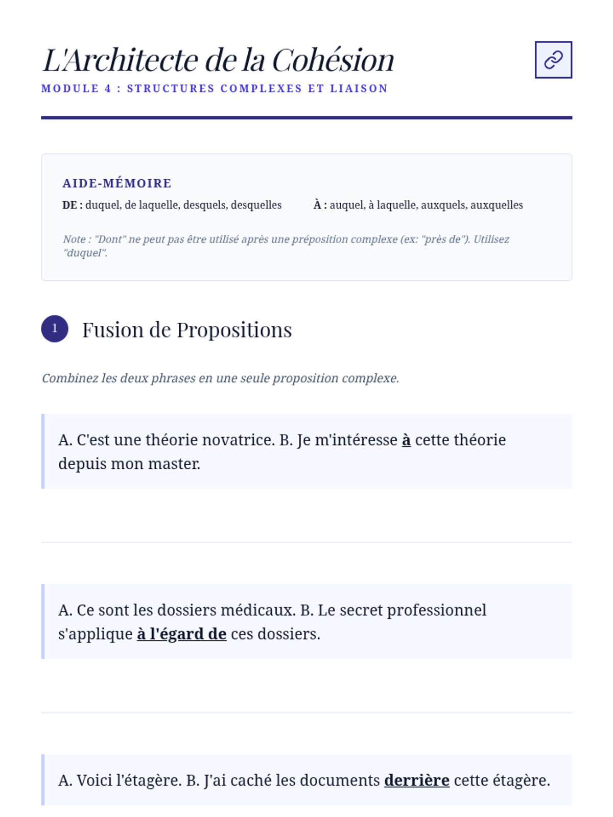 A deep dive into complex relative pronouns (lequel, auquel, duquel) and their role in creating cohesive, sophisticated sentence structures.