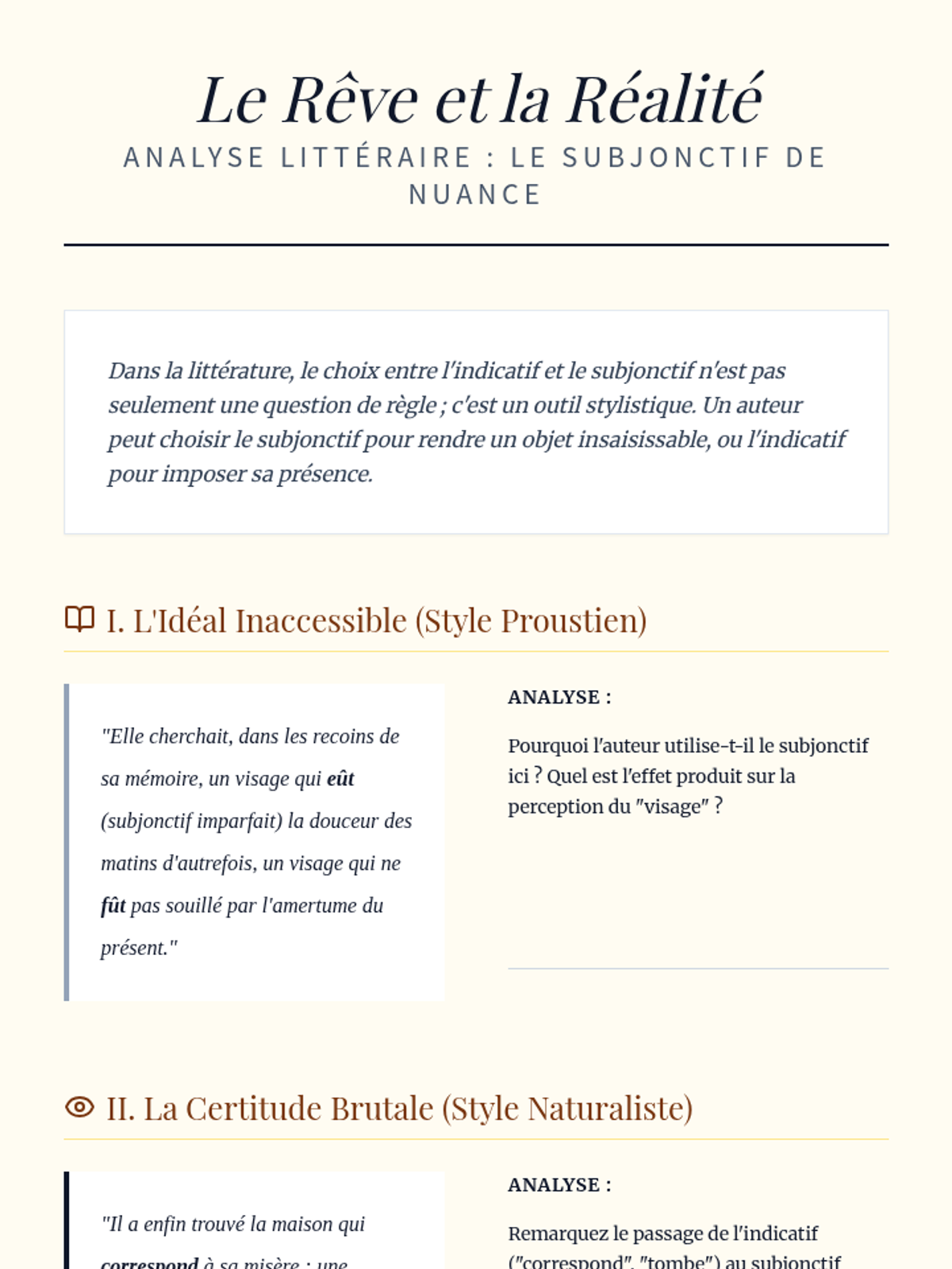 An exploration of the imparfait du subjonctif, its triggers through 'concordance des temps', and its socio-stylistic weight in presidential oratory and classic literature.