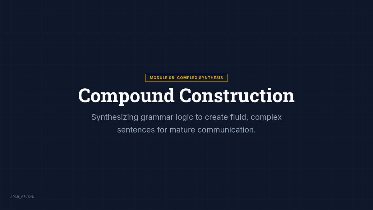 Synthesizes previous knowledge to build fluid, compound sentences using logical conjunctions for mature communication.