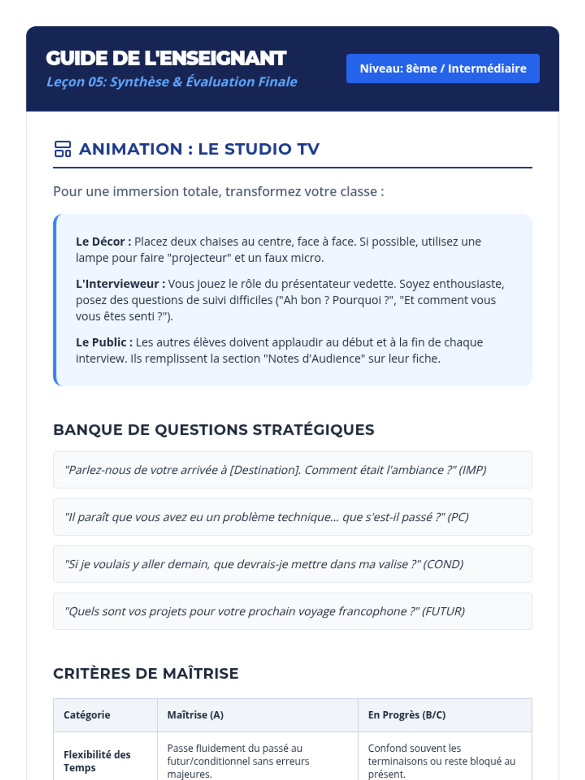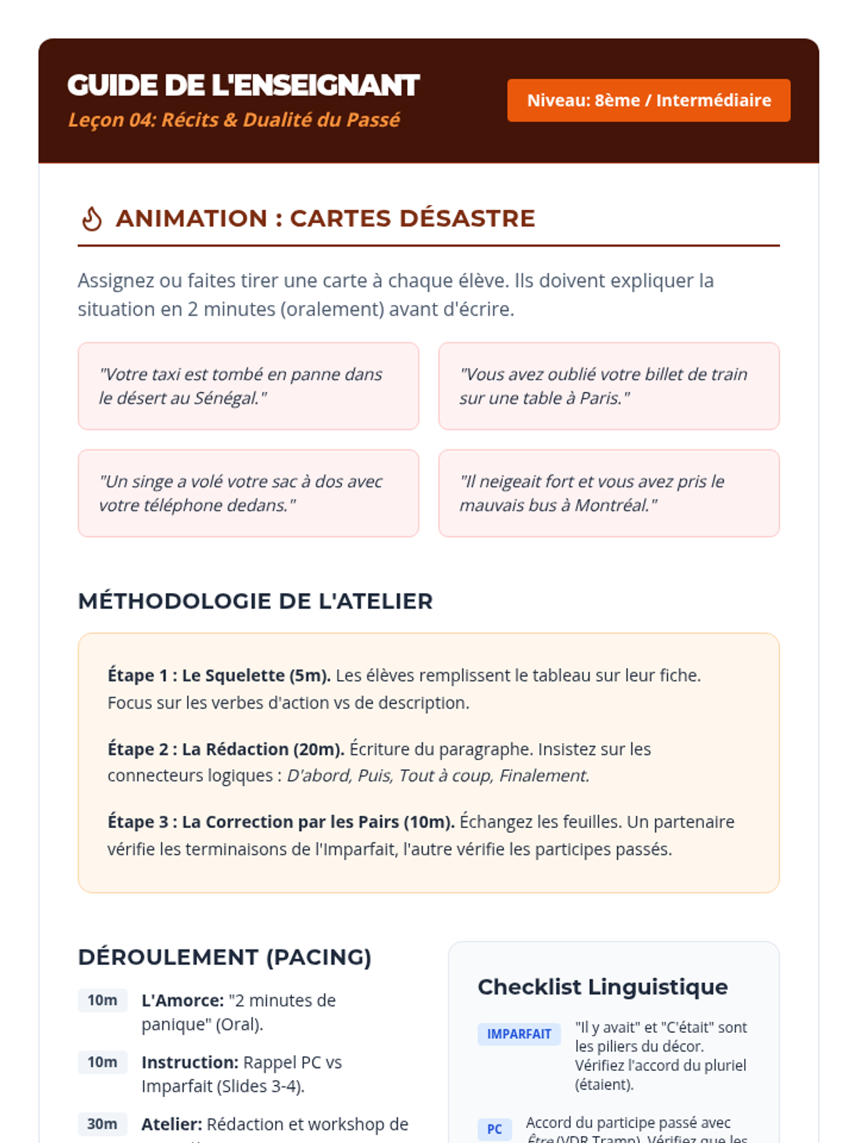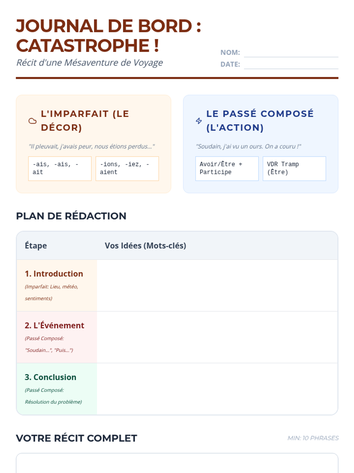 Students master the interplay between Passé Composé and Imparfait by narrating travel mishaps and setting the scene for their stories.
