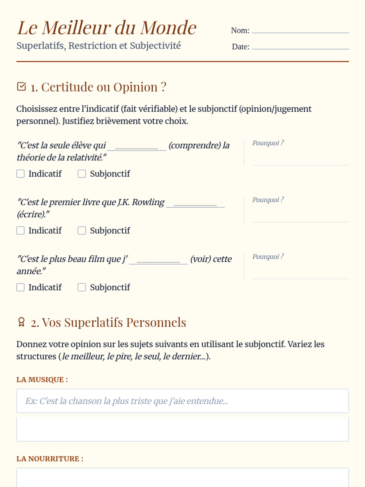 An exploration of how superlatives and words like 'le seul' or 'l'unique' trigger the subjunctive to signal subjective opinion rather than objective fact.