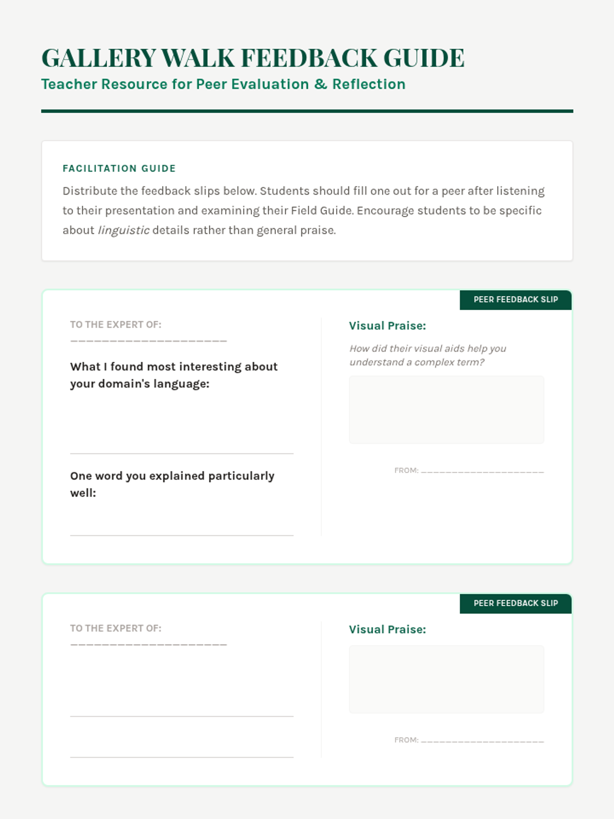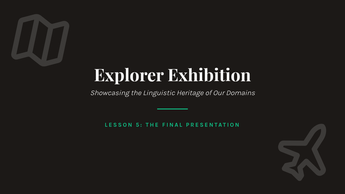Students present their final field guides in a gallery walk format, teaching peers about the linguistic influences in their chosen domains.