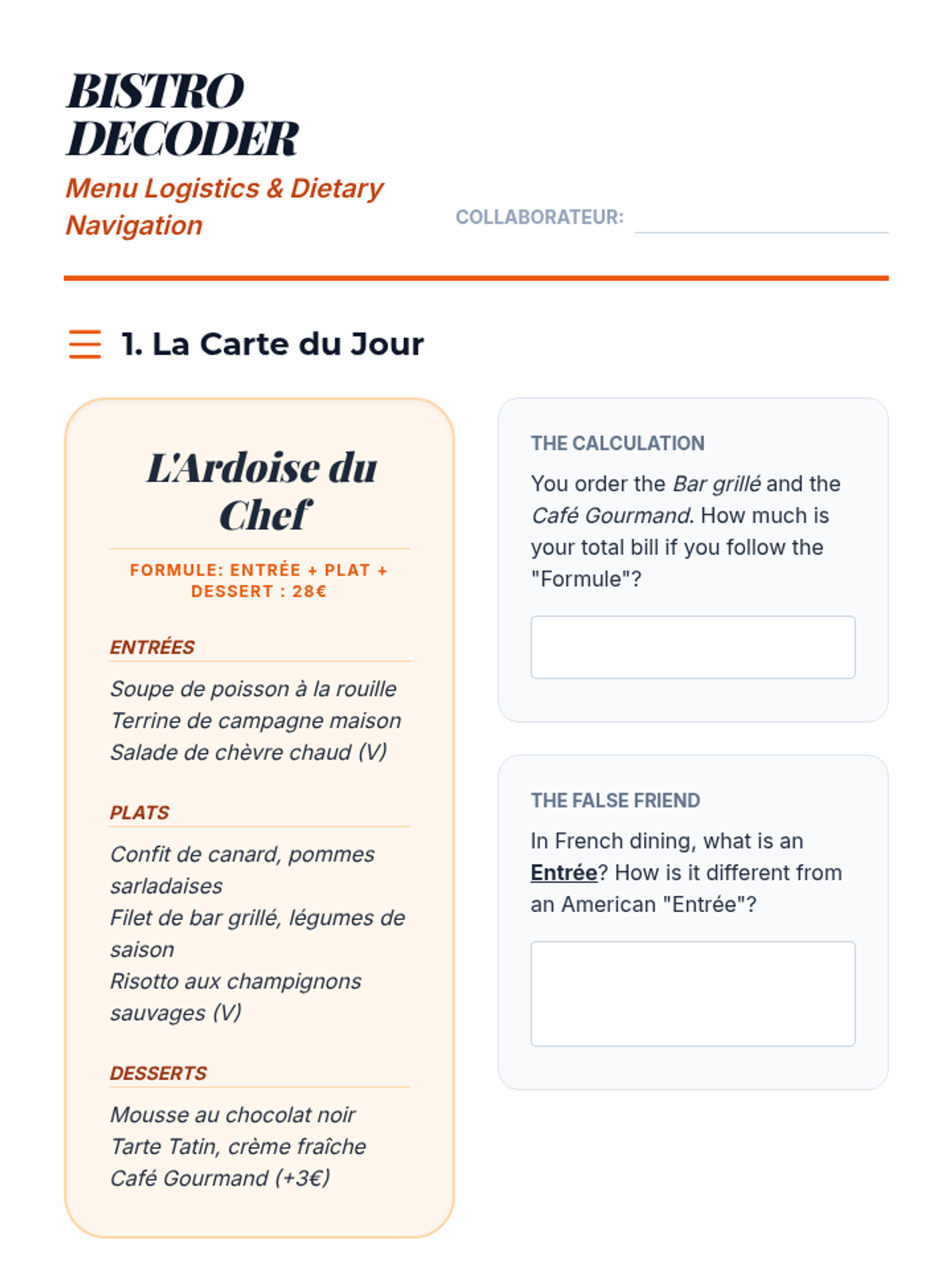 An exploration of French culinary structures and dining etiquette, equipping students with the skills to decode menus and express dietary needs effectively.