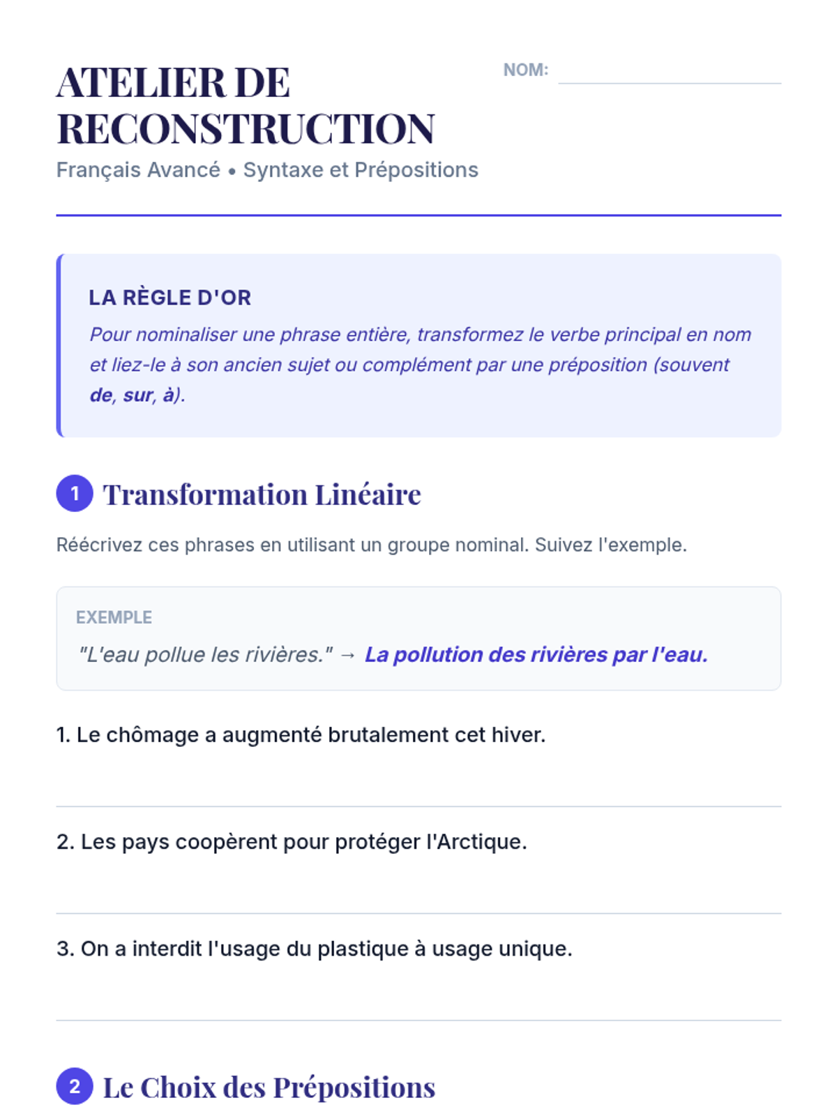 Students explore the shift from verbal to nominal structures to understand how academic French achieves a formal tone. They compare different registers and identify the impact of nominalization on sentence density.