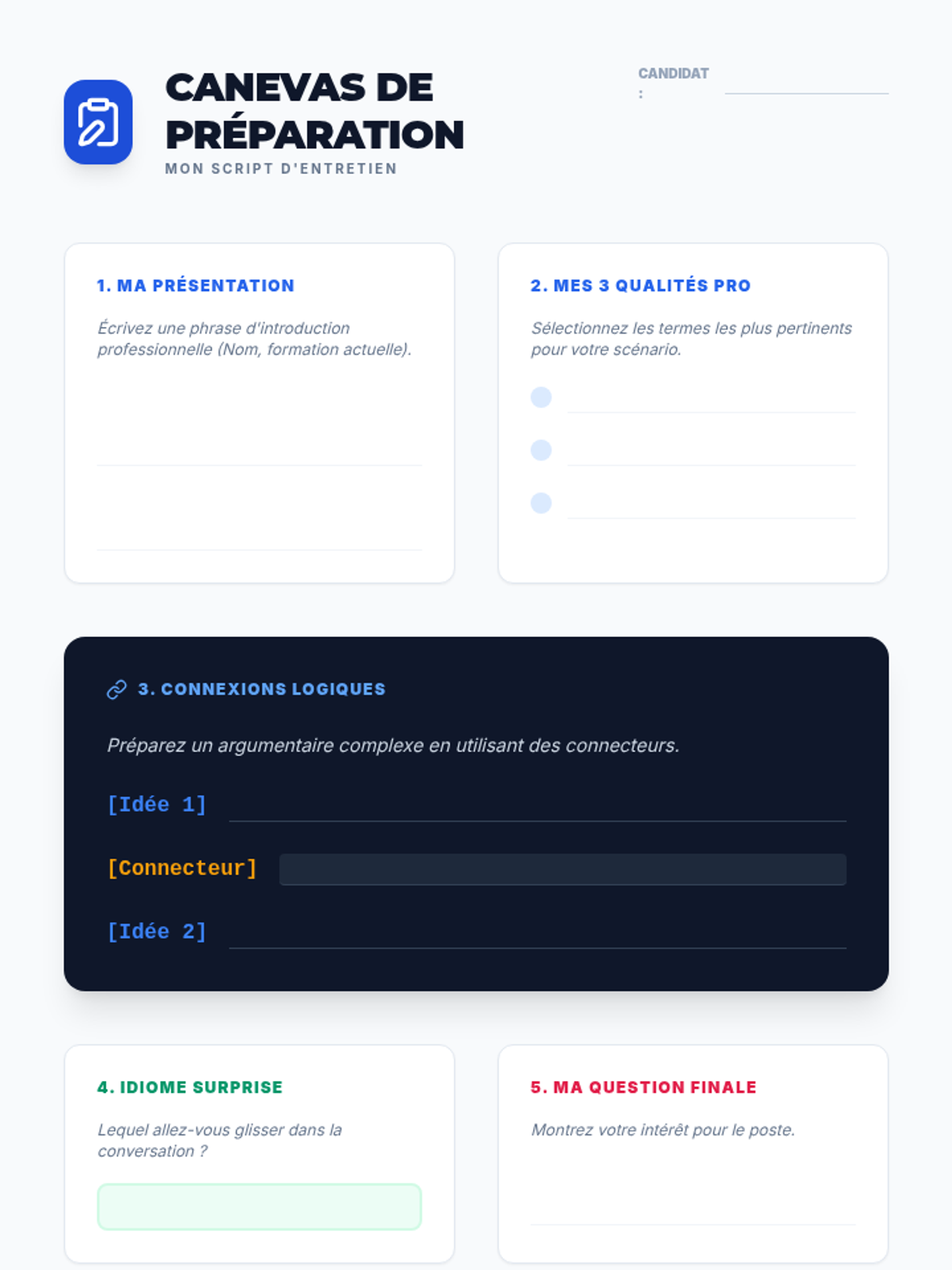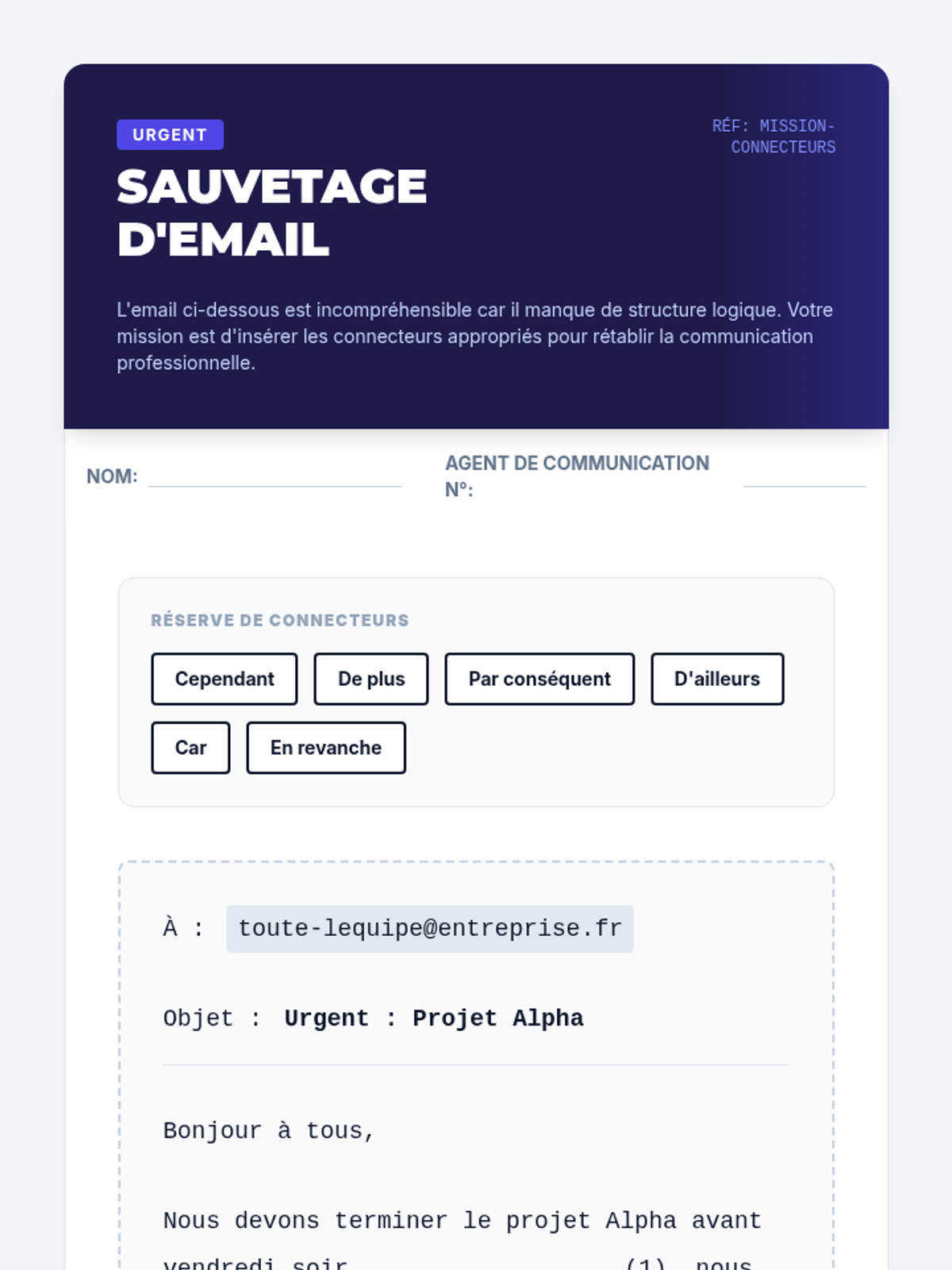 Students analyze logical connectors (les connecteurs logiques) to map out the structure and flow of academic arguments.