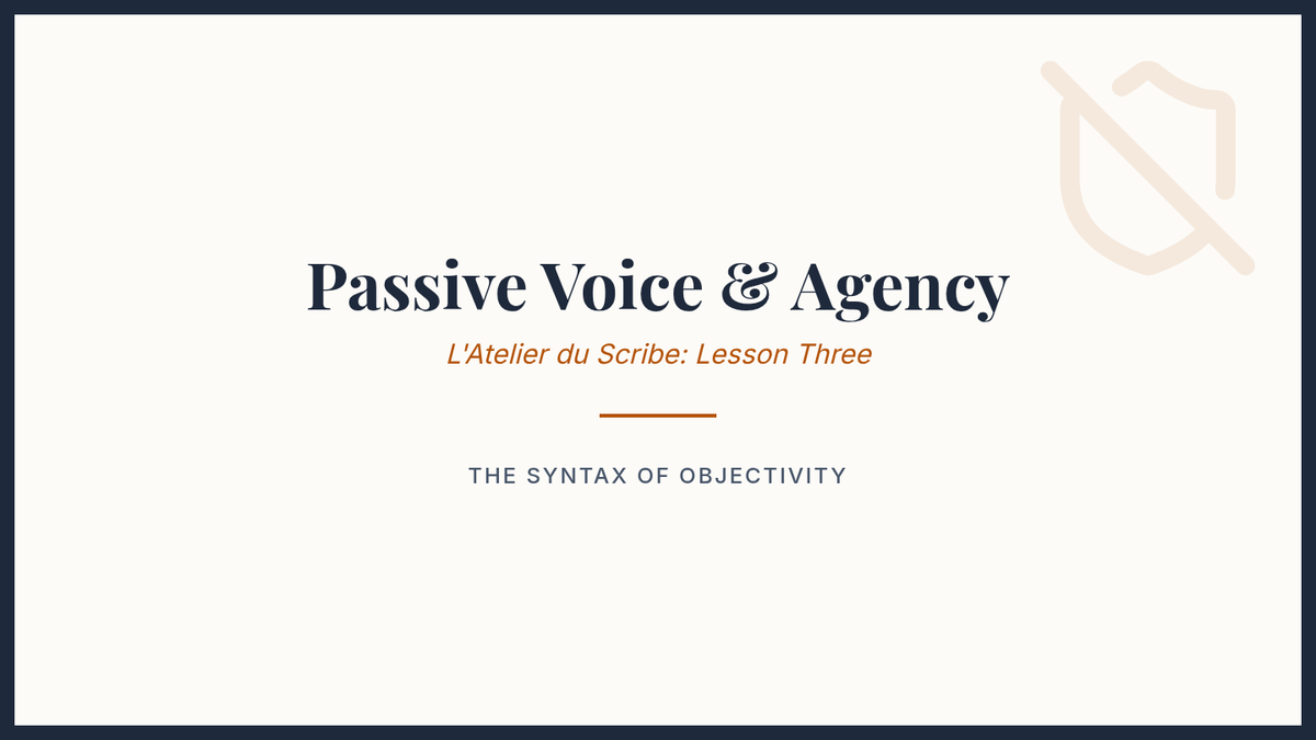 A workshop on using the passive voice to control agency and objectivity in formal writing, with a focus on maintaining literary tense consistency.