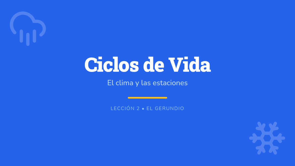 Students explore weather and seasonal changes using el gerundio. They learn to describe natural cycles like 'lloviendo', 'nevando', and 'brillando'.