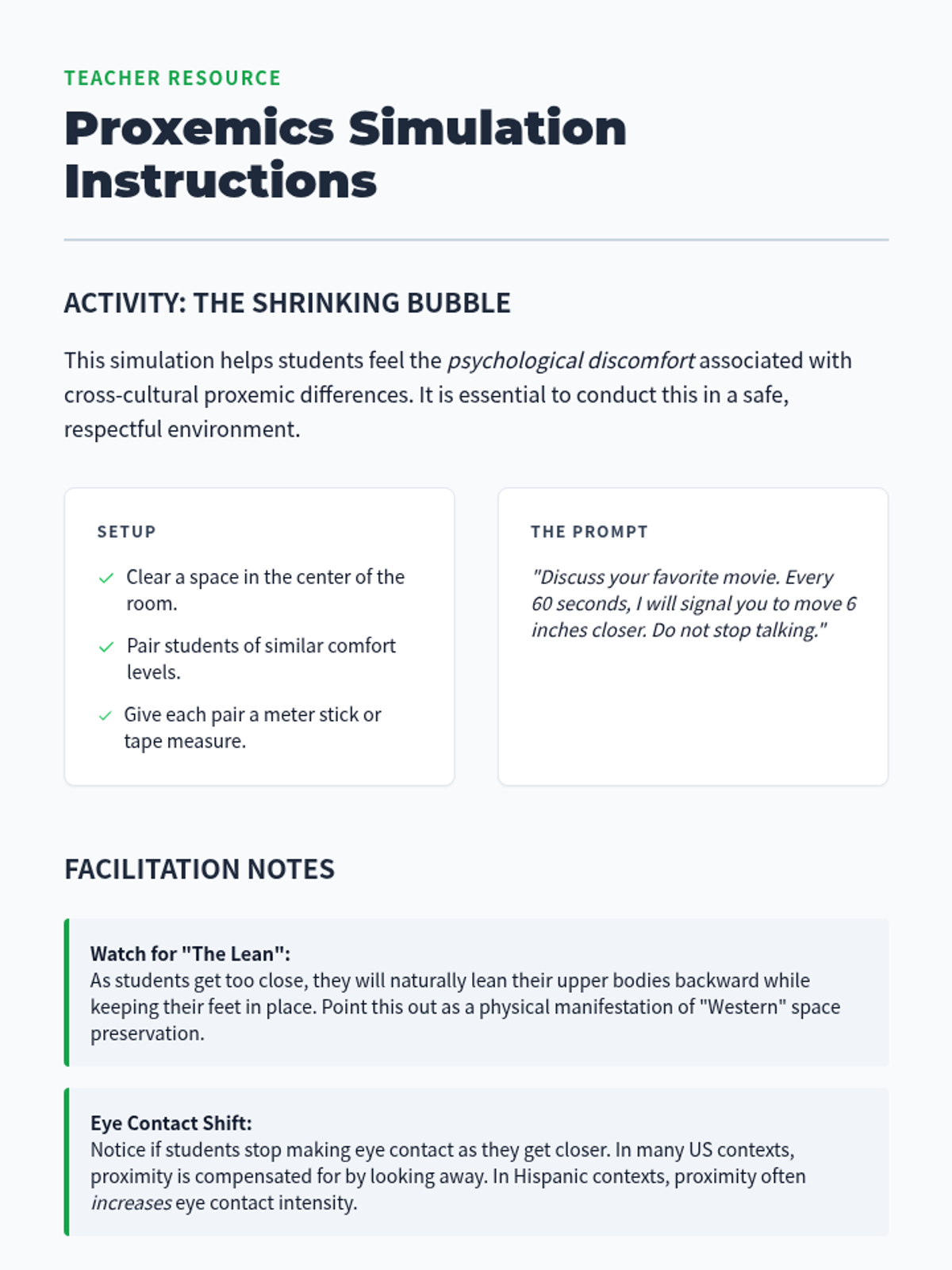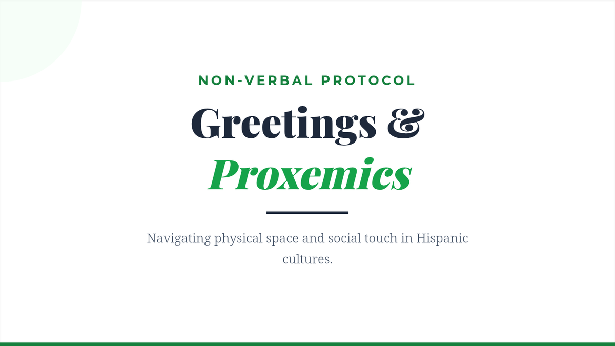 This lesson focuses on non-verbal communication, including greetings like cheek kisses and the concept of proxemics in Hispanic cultures compared to the US.