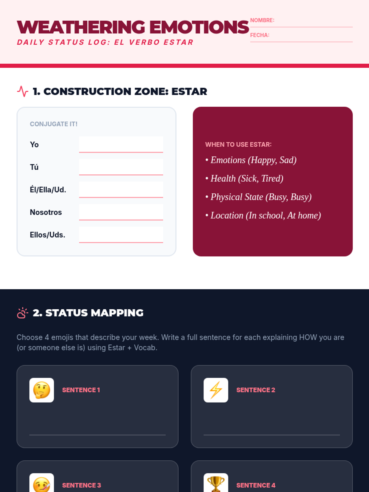 Focusing on the verb 'Estar,' students learn to describe their physical and emotional states, moving beyond 'bien' to express nuance in social check-ins.