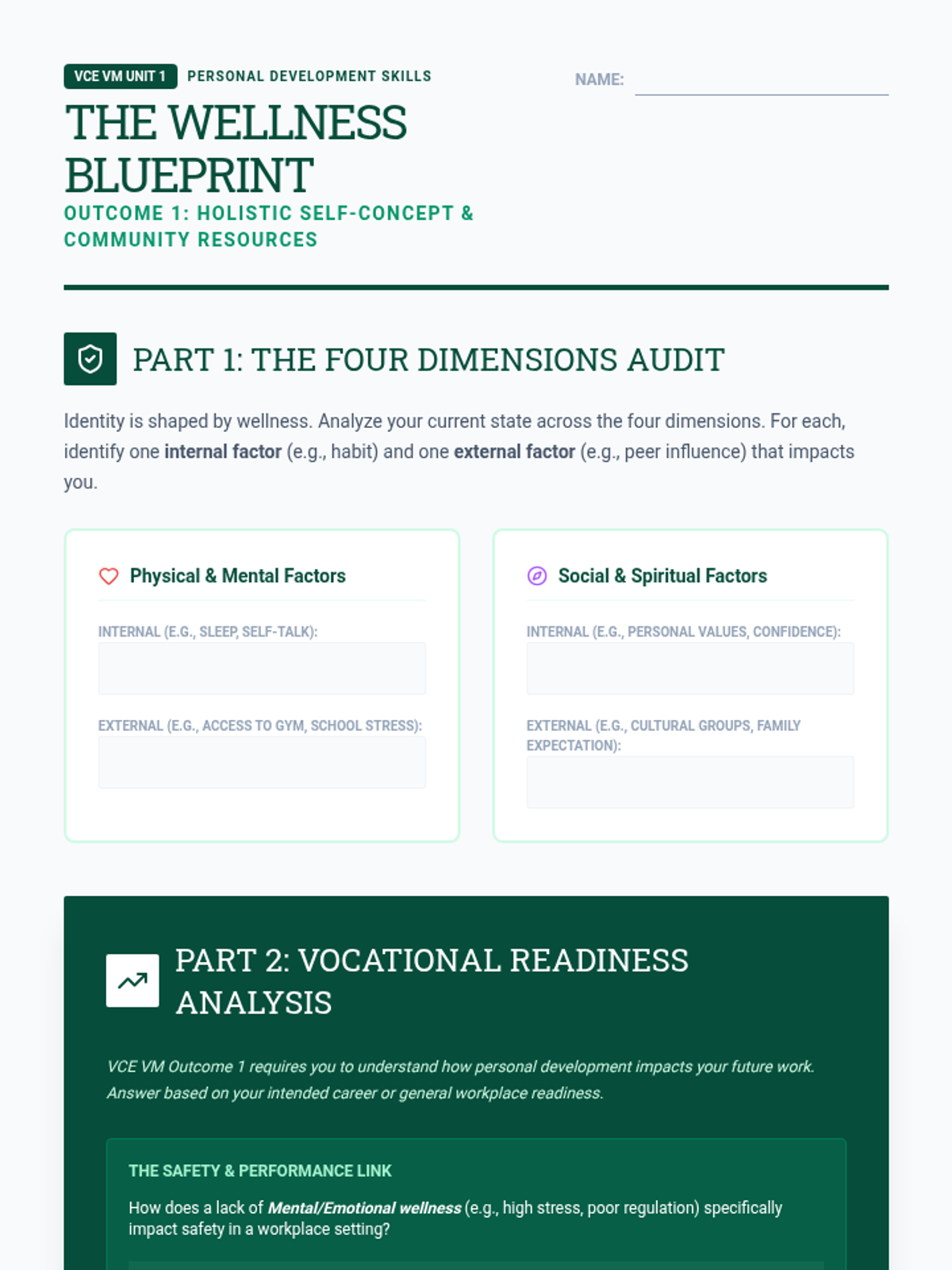 An exploration of holistic health through the four dimensions of well-being. Students analyze how their emotional intelligence goals support their overall health and balance.