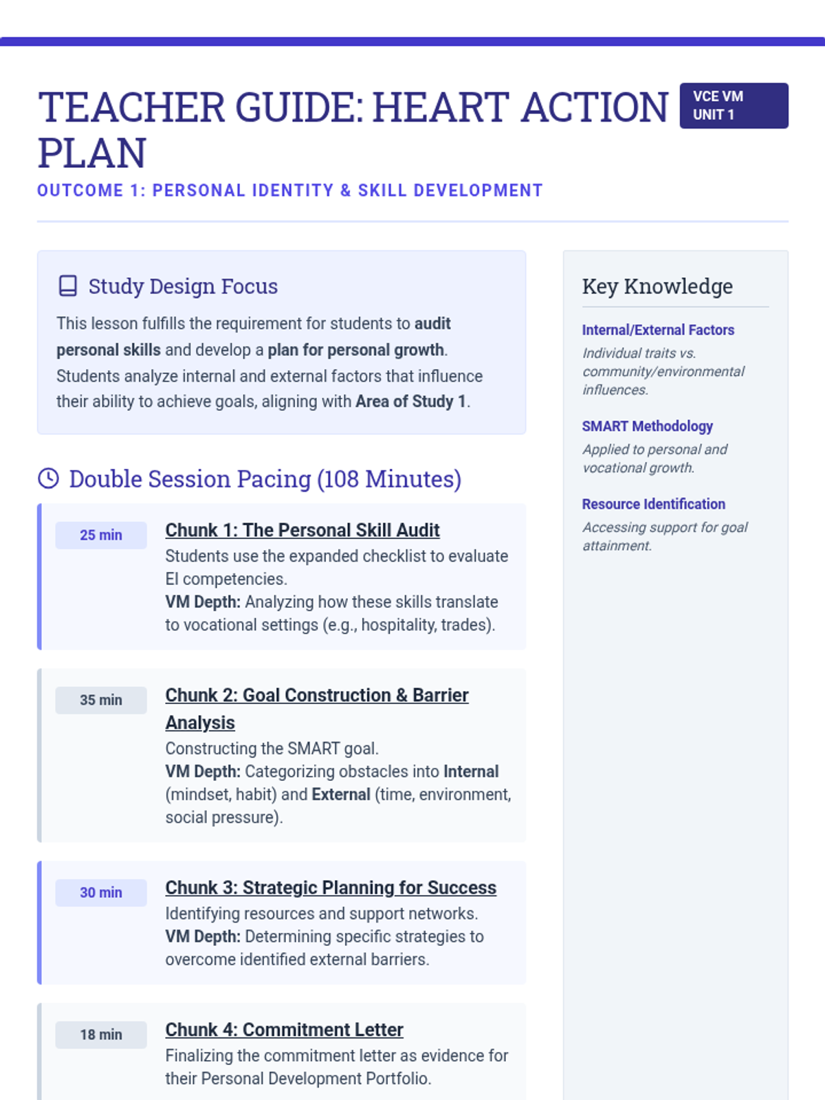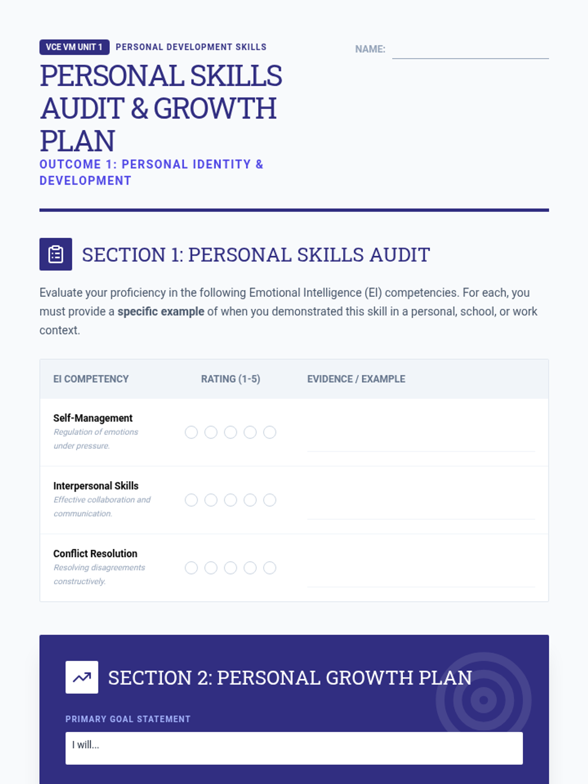 A follow-up workshop focused on personal application. Students perform a deep-dive self-assessment and construct a formal SMART goal plan for their emotional development.