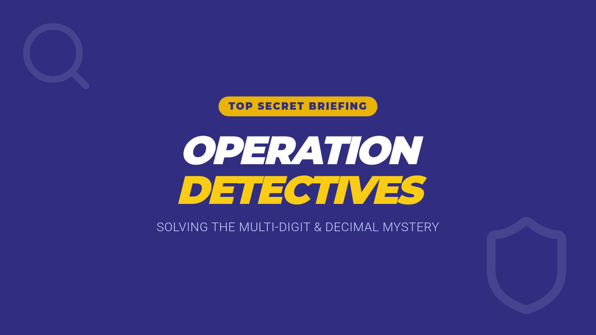 A comprehensive 4-week spiral review of 4th-grade math standards designed for 5th graders. Focuses on place value, multiplication, division, fractions, and decimals through a secret agent themed mission.