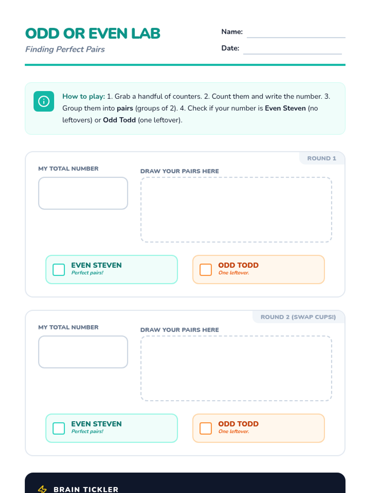 Digit Duel Worksheet