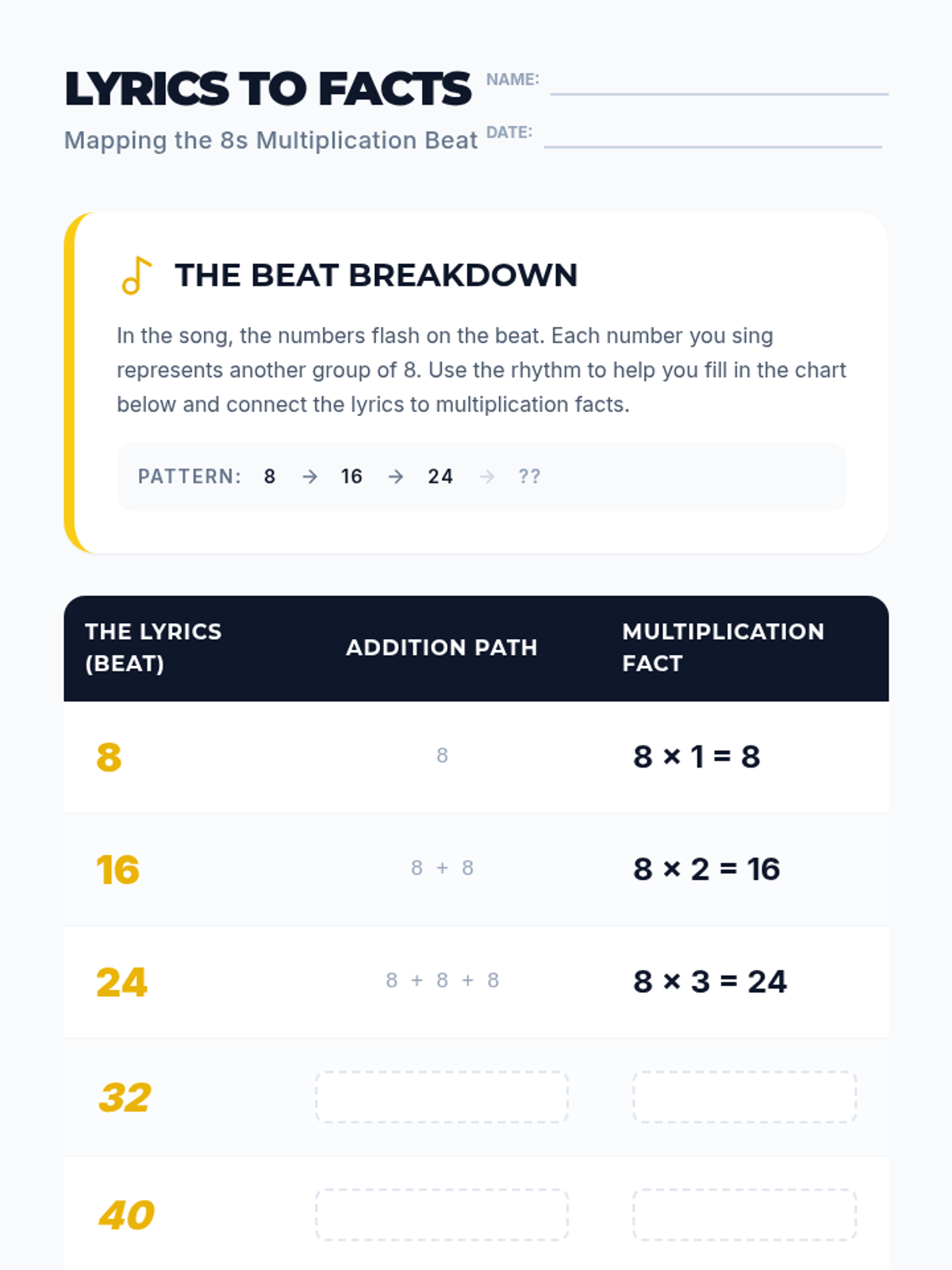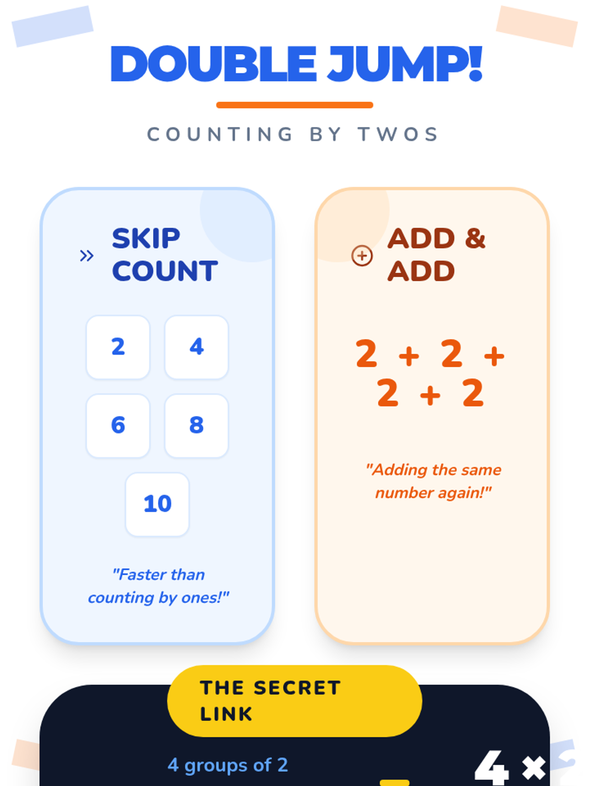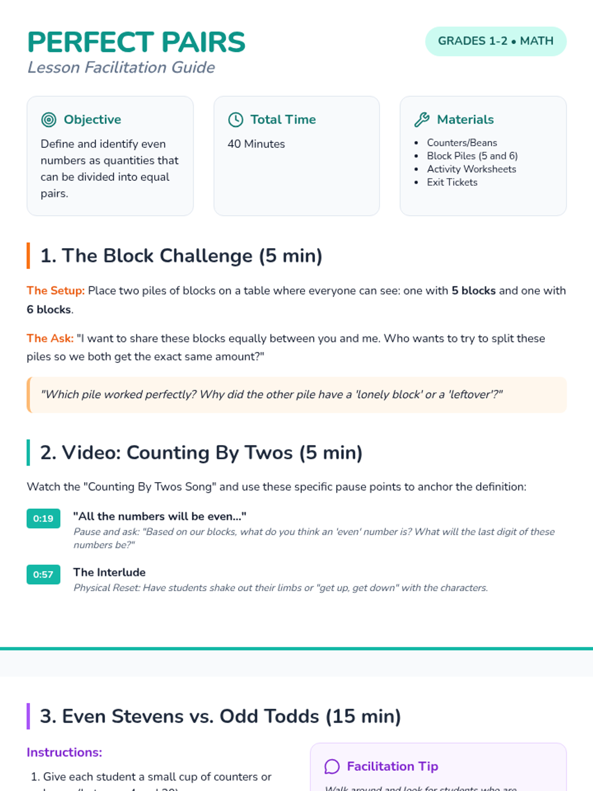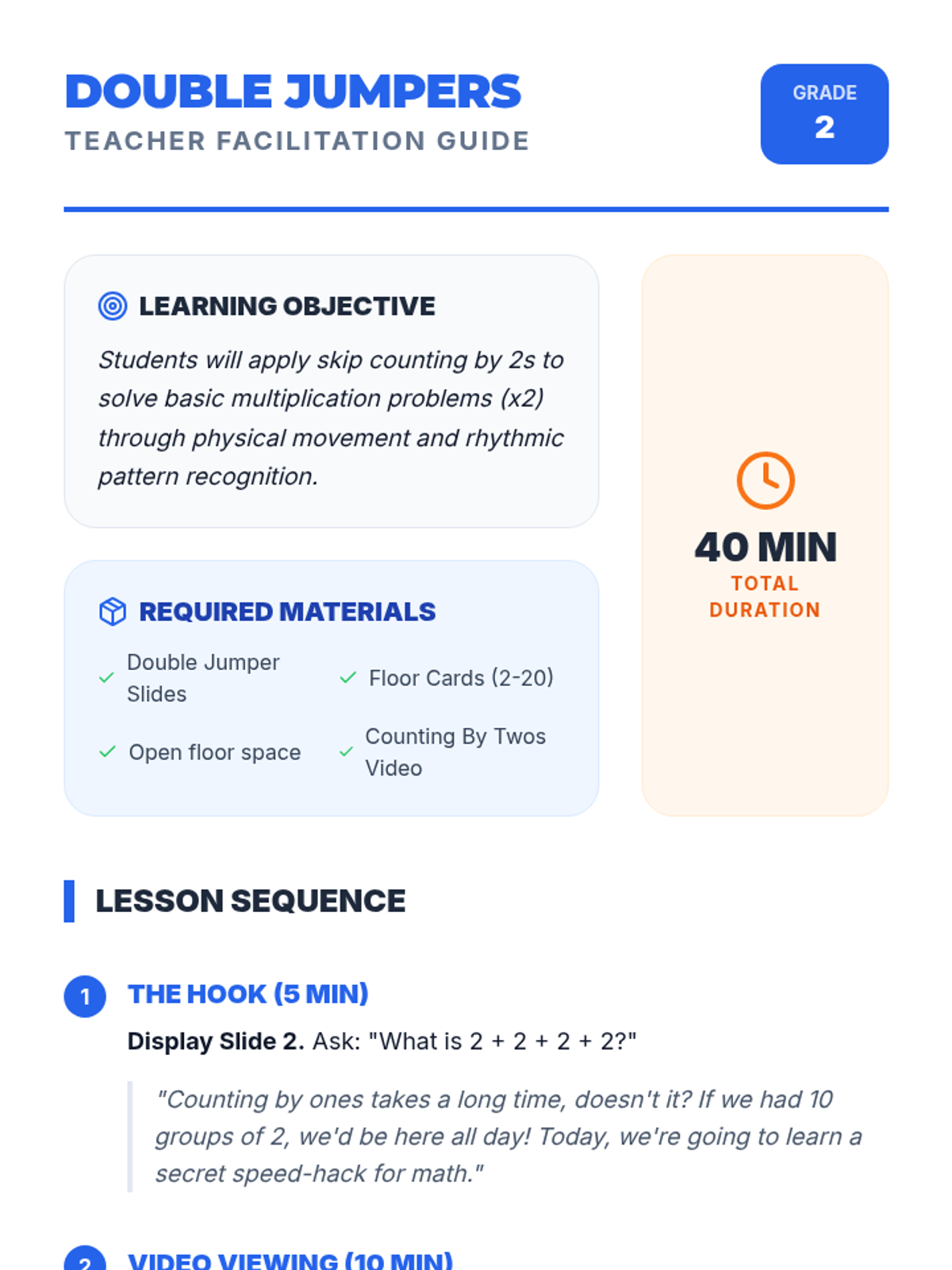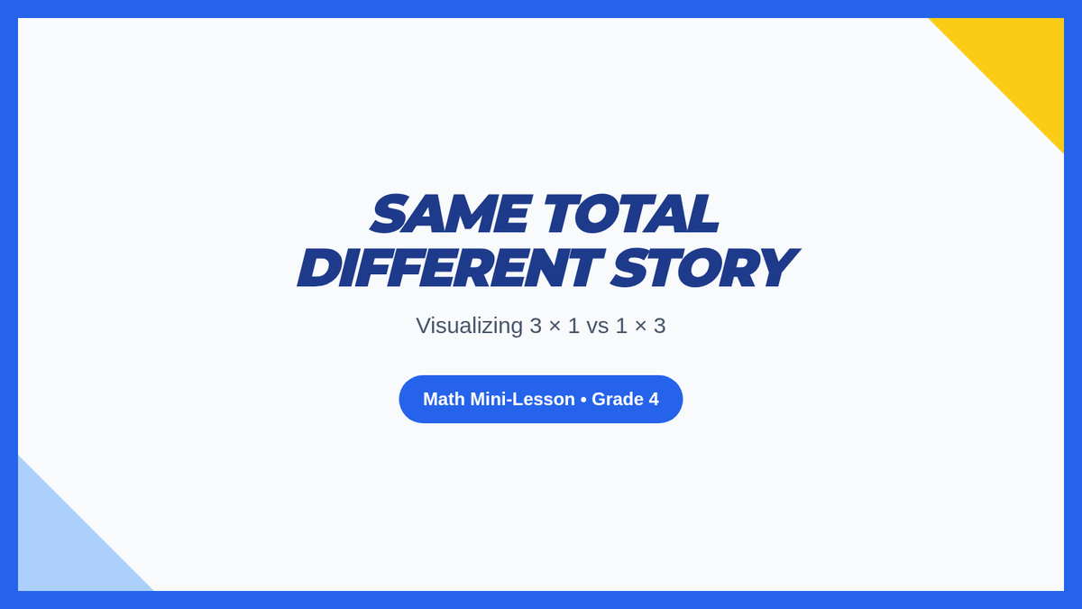 Foundations for MultiplicationEqual groups, repeated addition, and array structures for early learners. Connects skip counting to multiplication concepts through visual models and concrete examples.