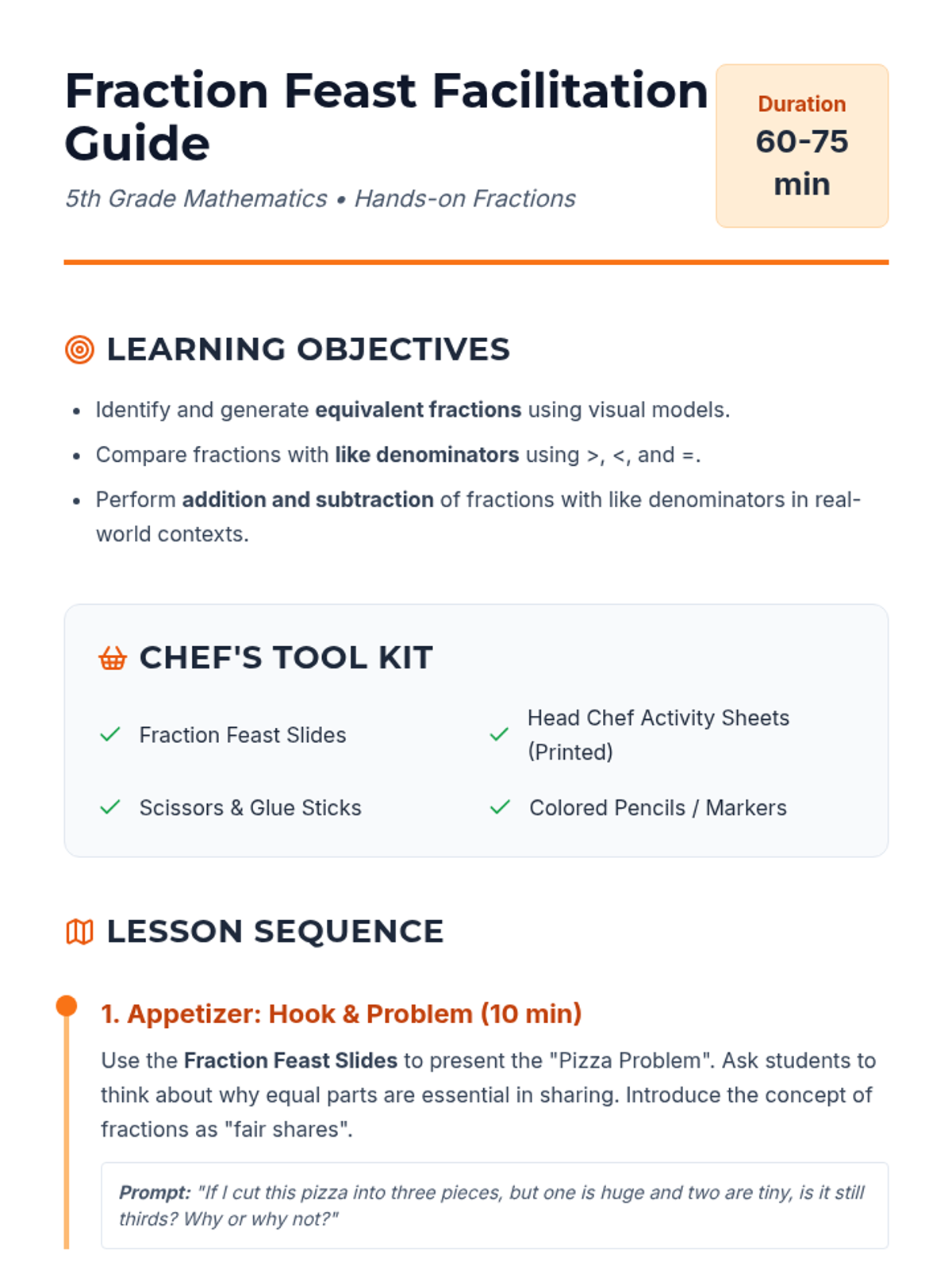 Fraction Feast Teacher Guide
