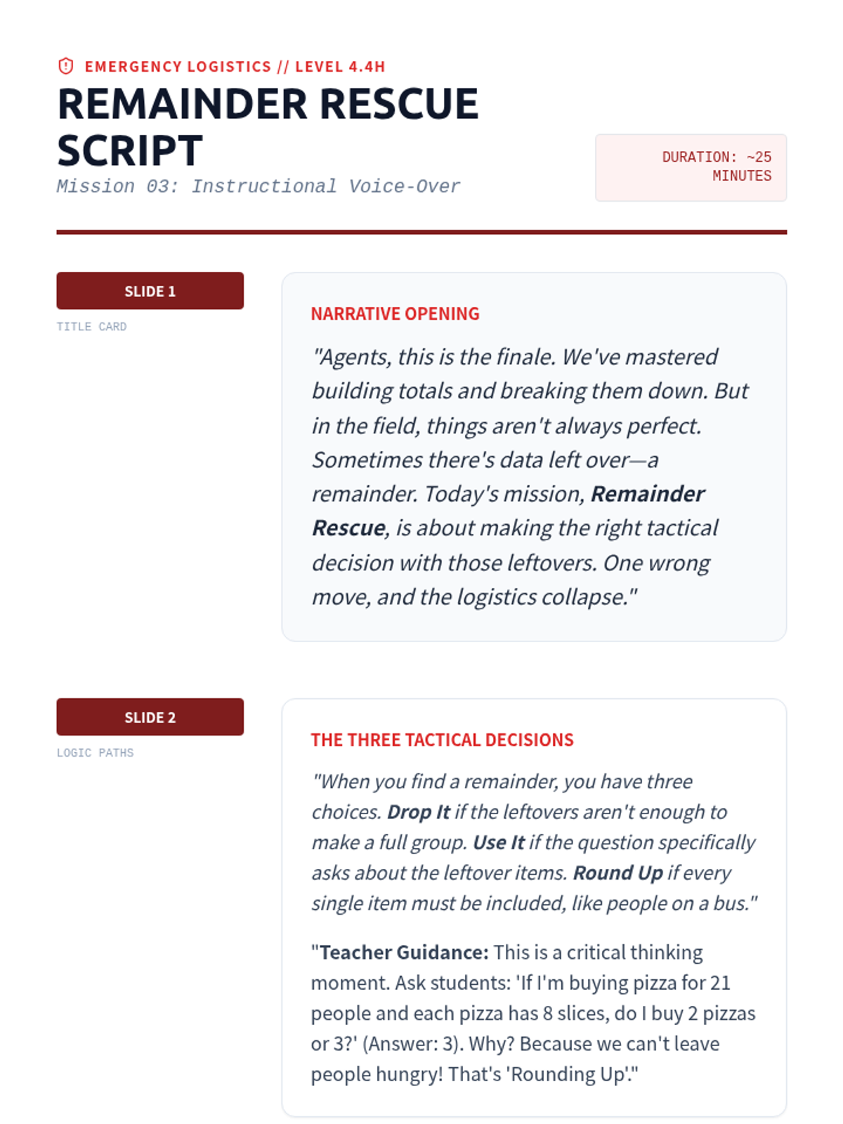 Remainder Rescue Teacher Guide
