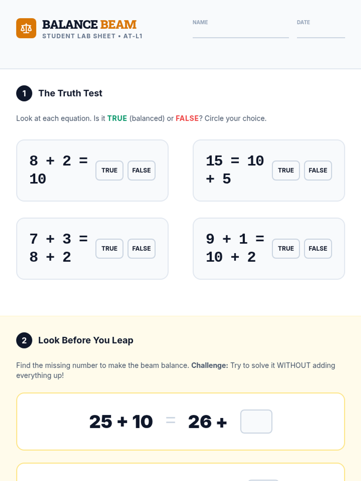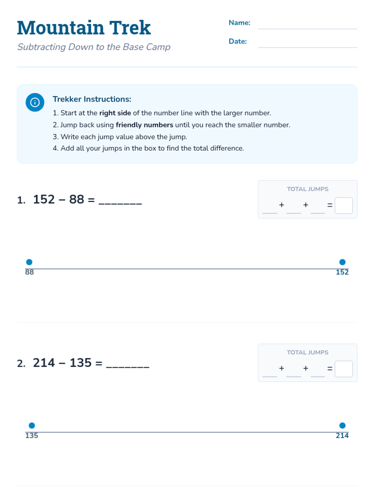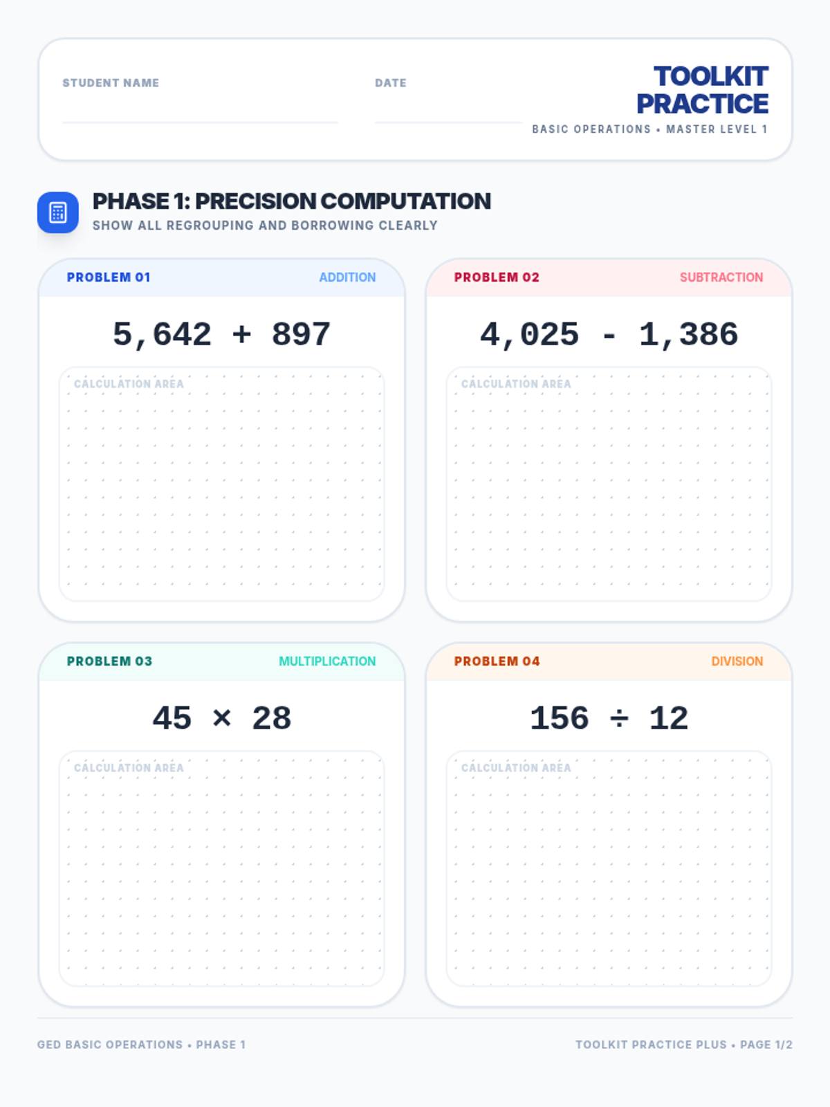 Addition and Subtraction ConceptsMental math strategies, regrouping techniques, and the inverse relationship between operations. Builds computational fluency through visual models, number lines, and real-world word problems.