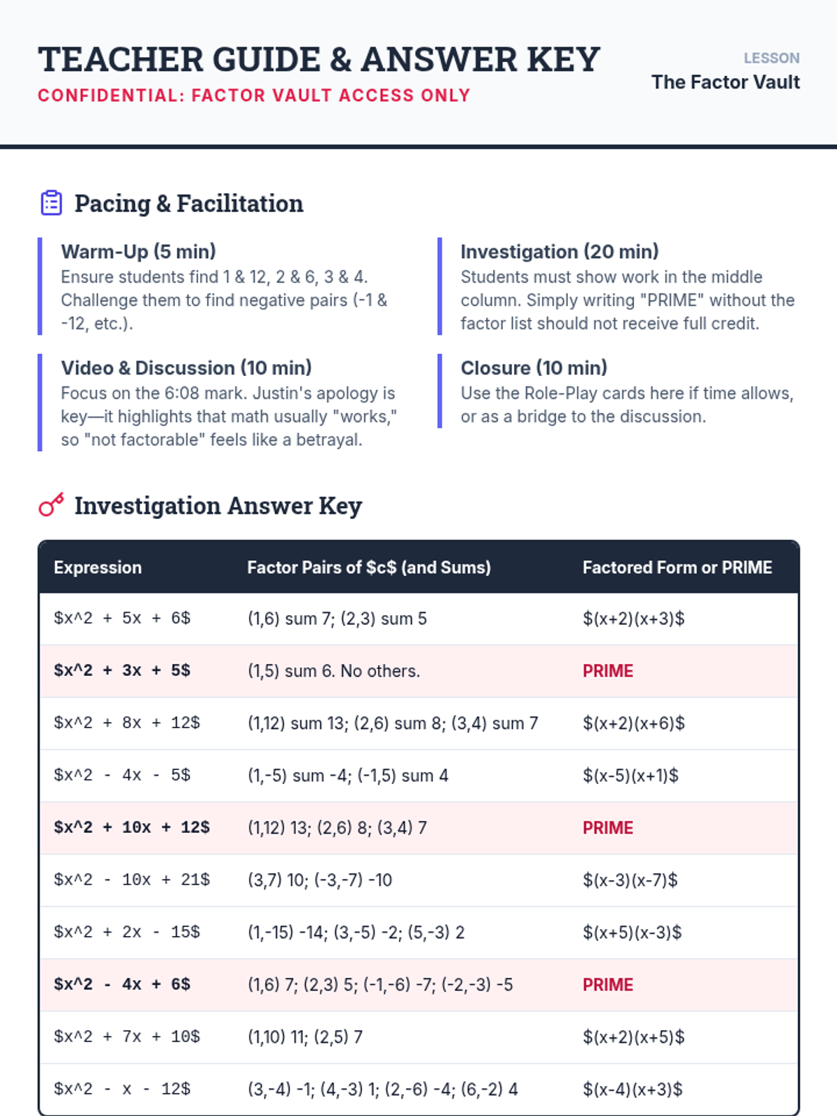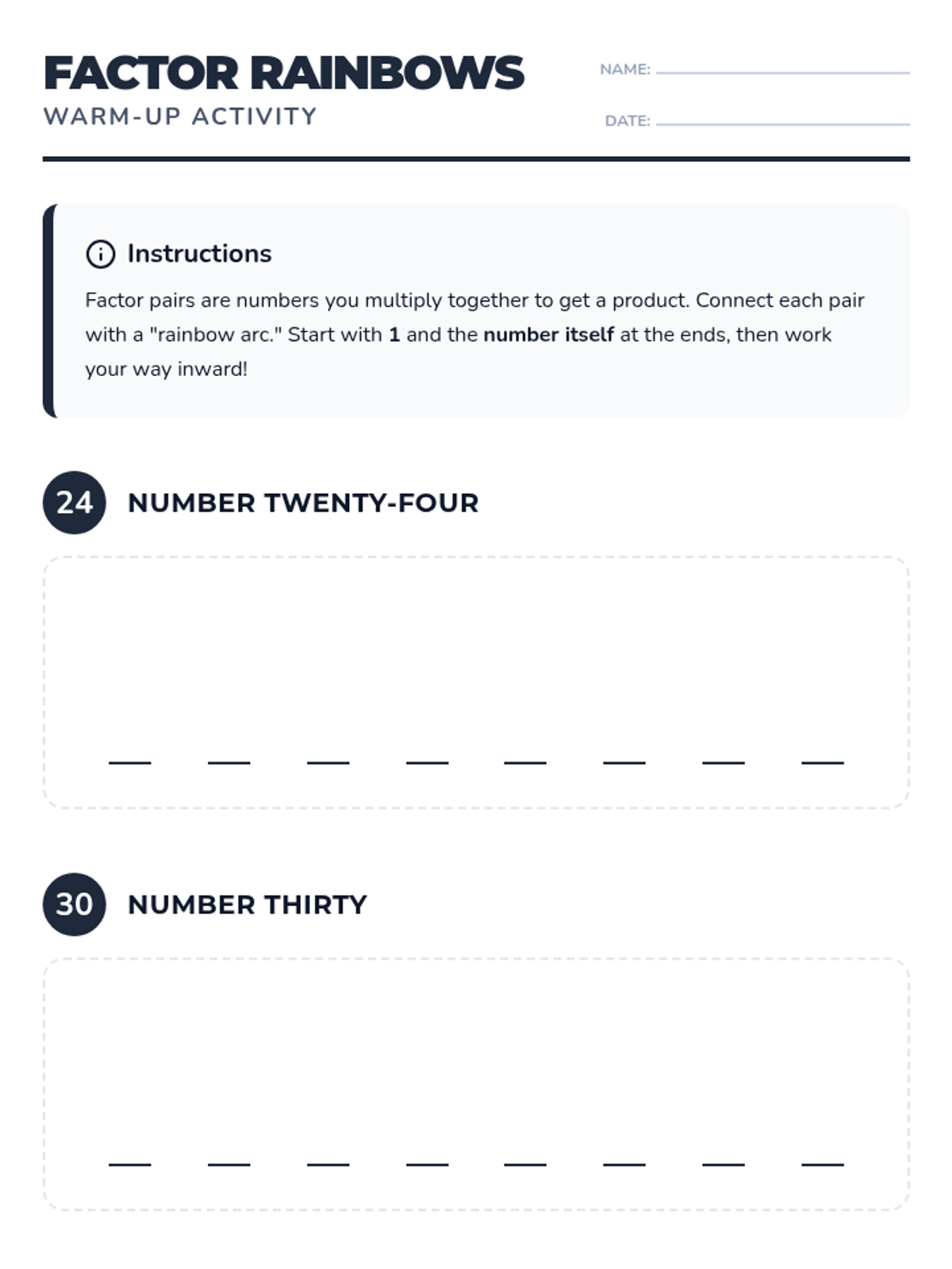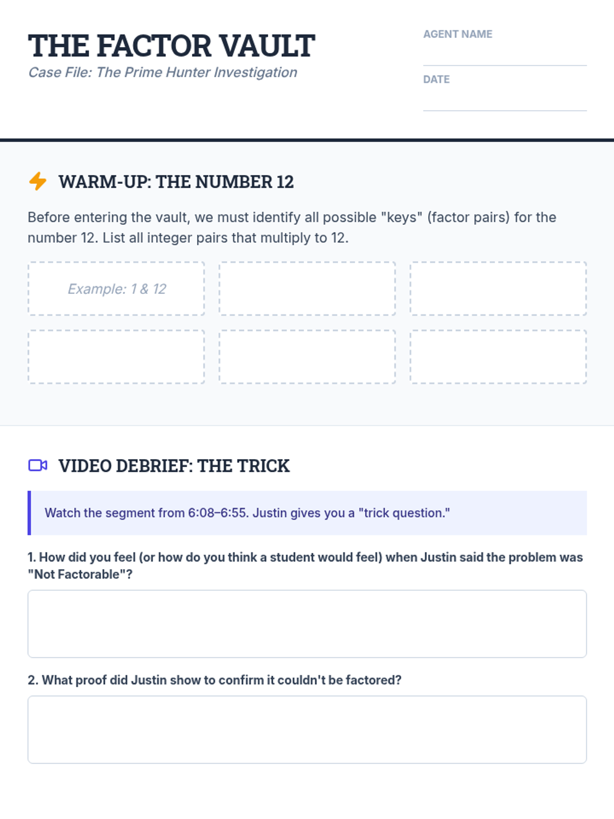 Factors and MultiplesPrime and composite numbers, divisibility rules, and the relationship between multiplication and division. Strengthens skills in identifying greatest common factors and least common multiples for fraction operations.