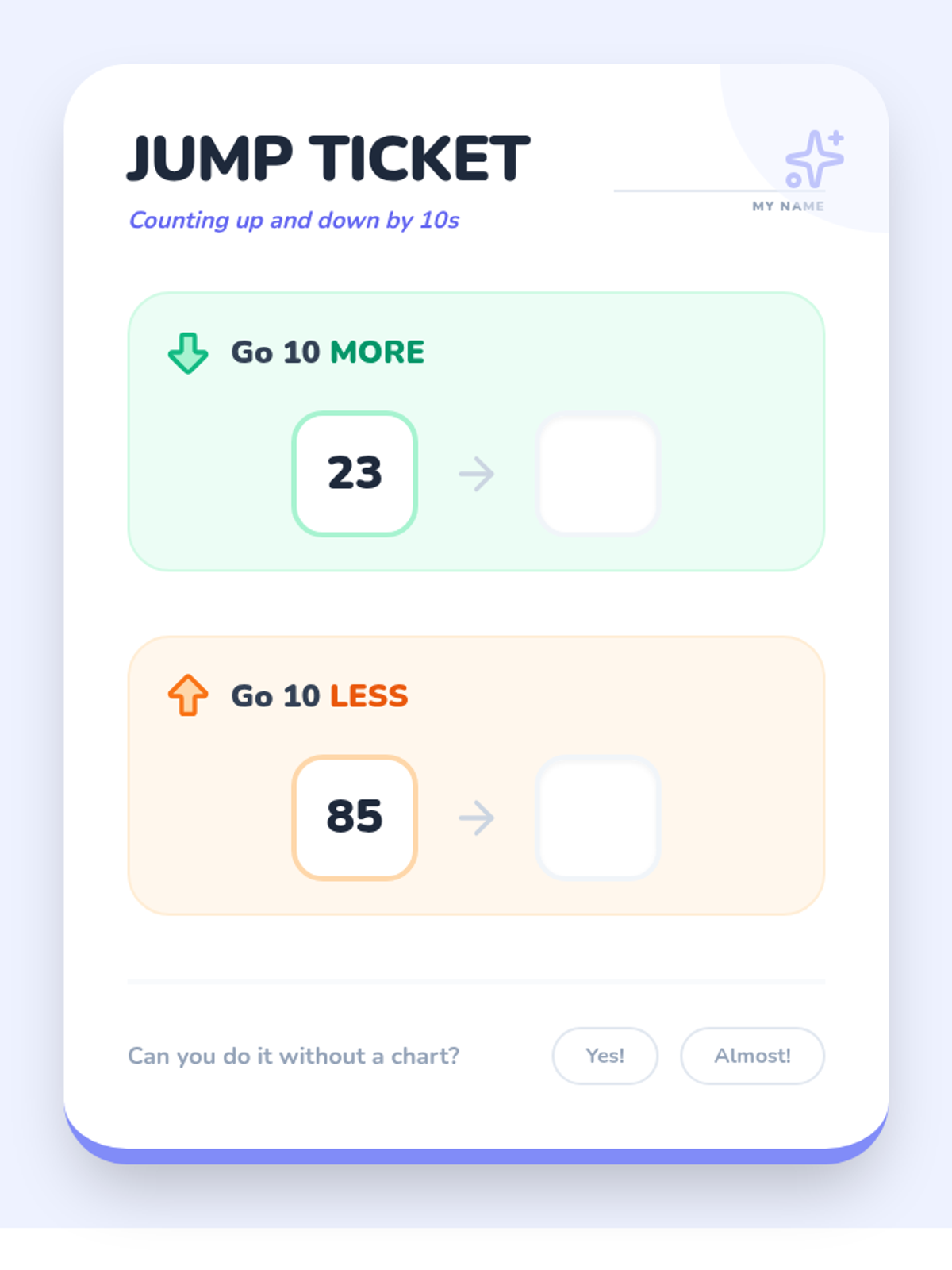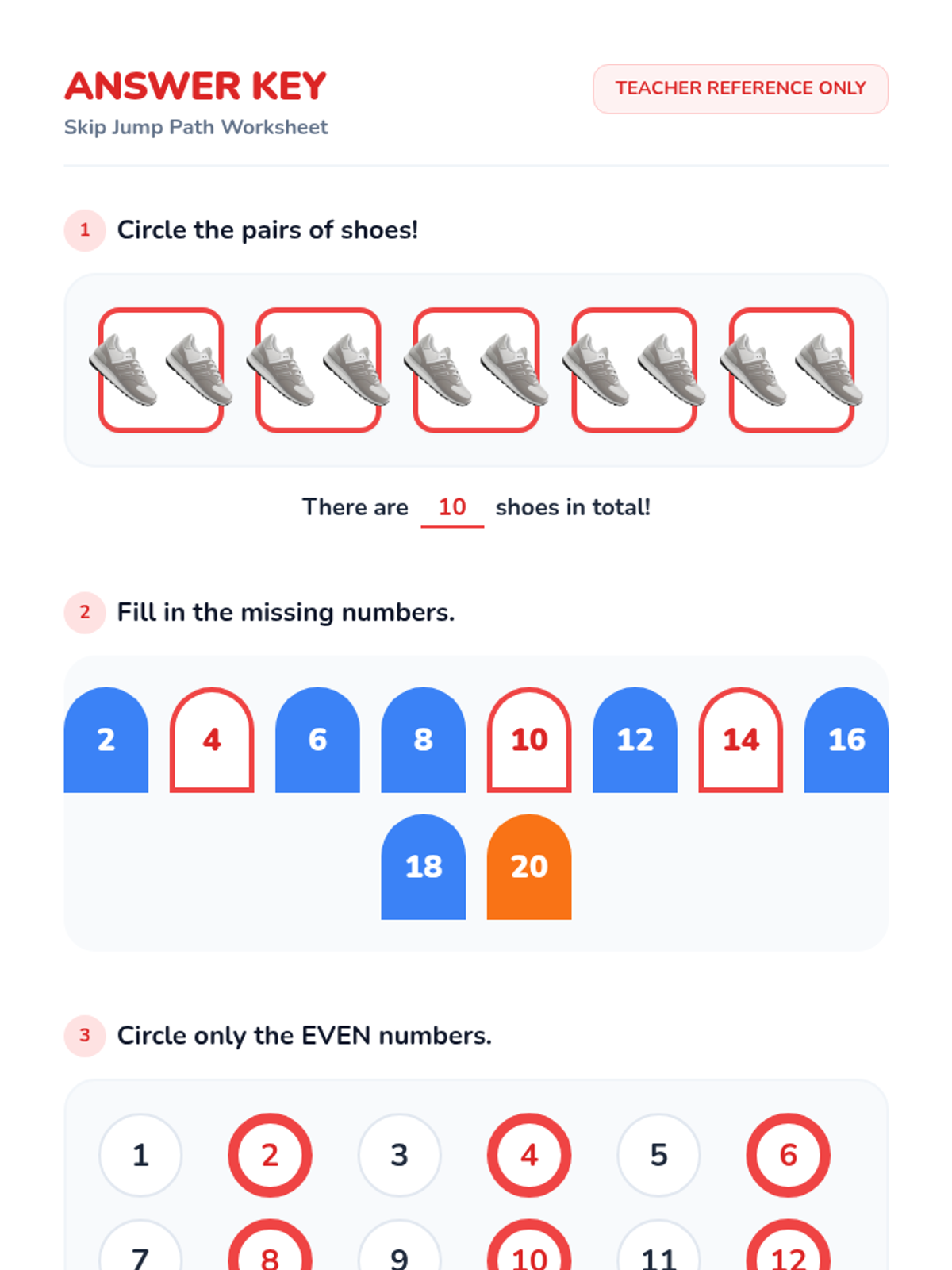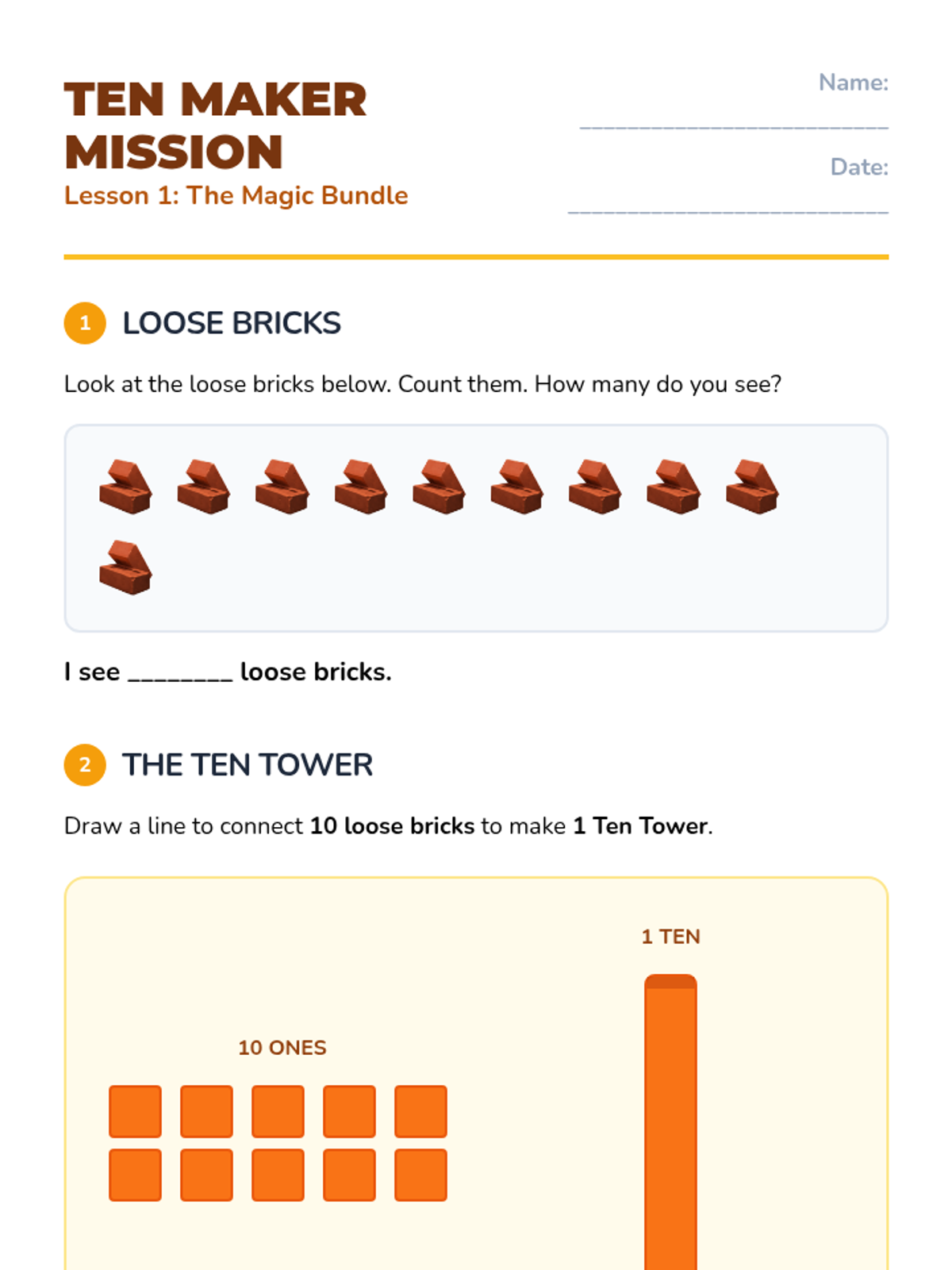 Numbers 0-10Numeral recognition, counting, and cardinality for integers zero through ten. Strengthens one-to-one correspondence and basic number sense through visual sets and tracing.