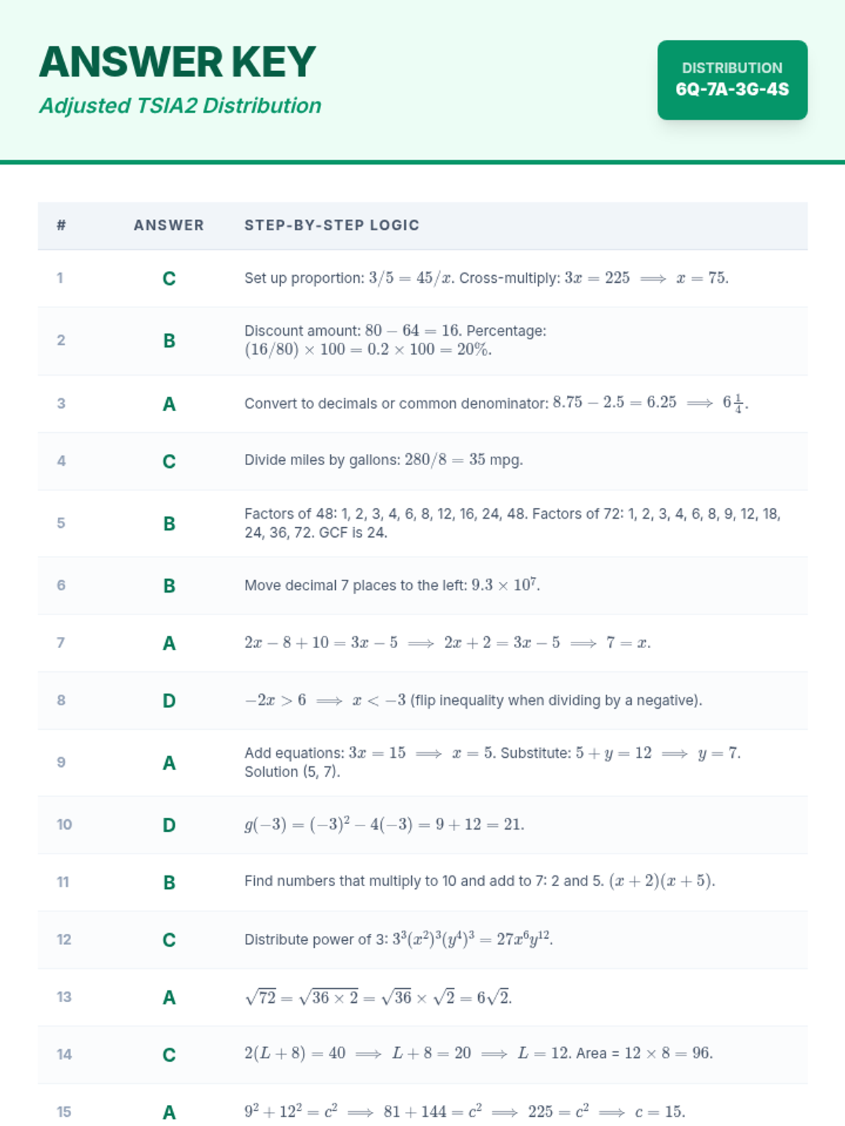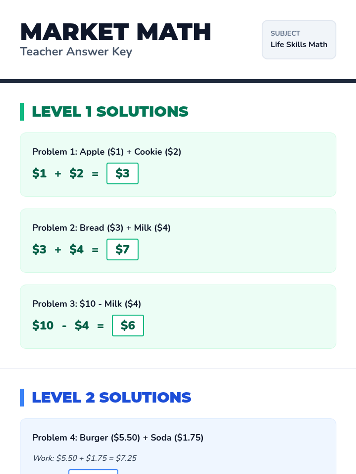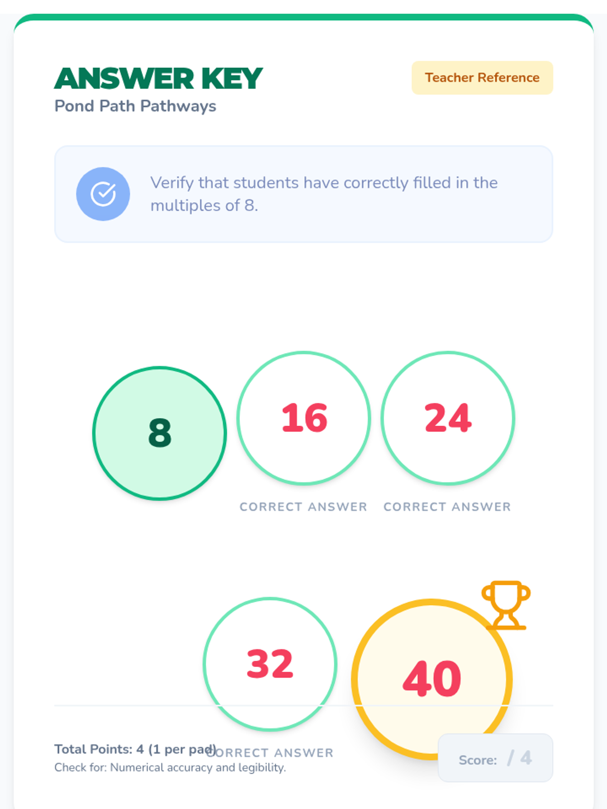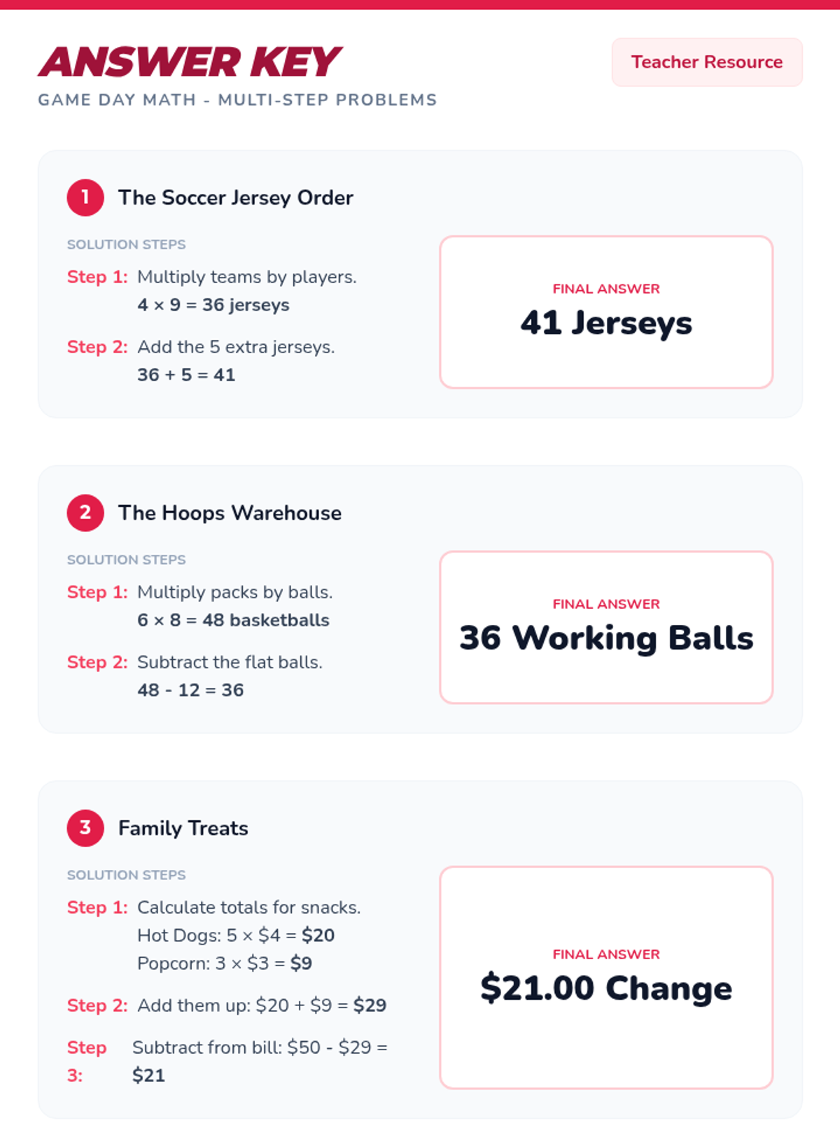 Game Day Math Answer Key