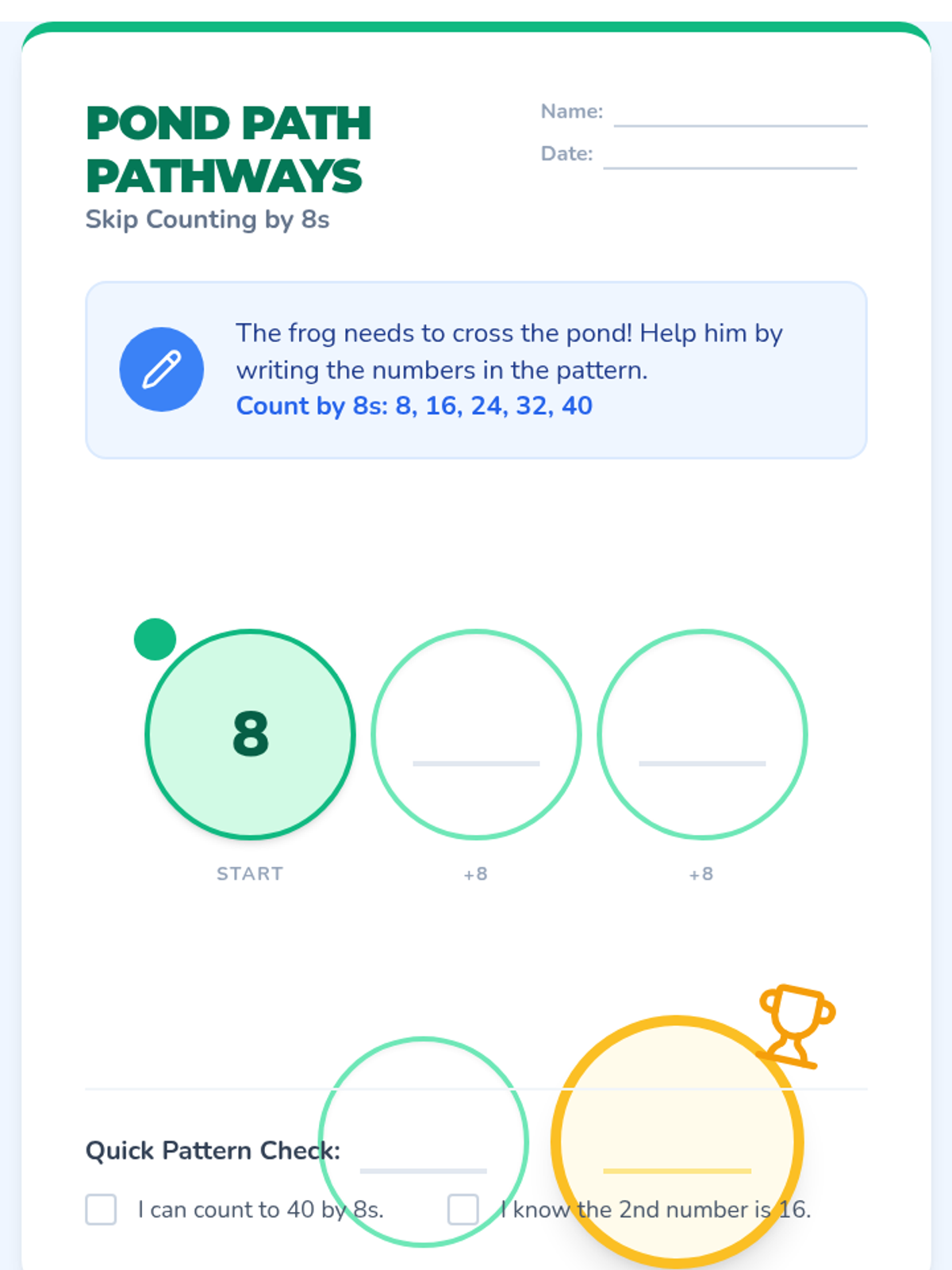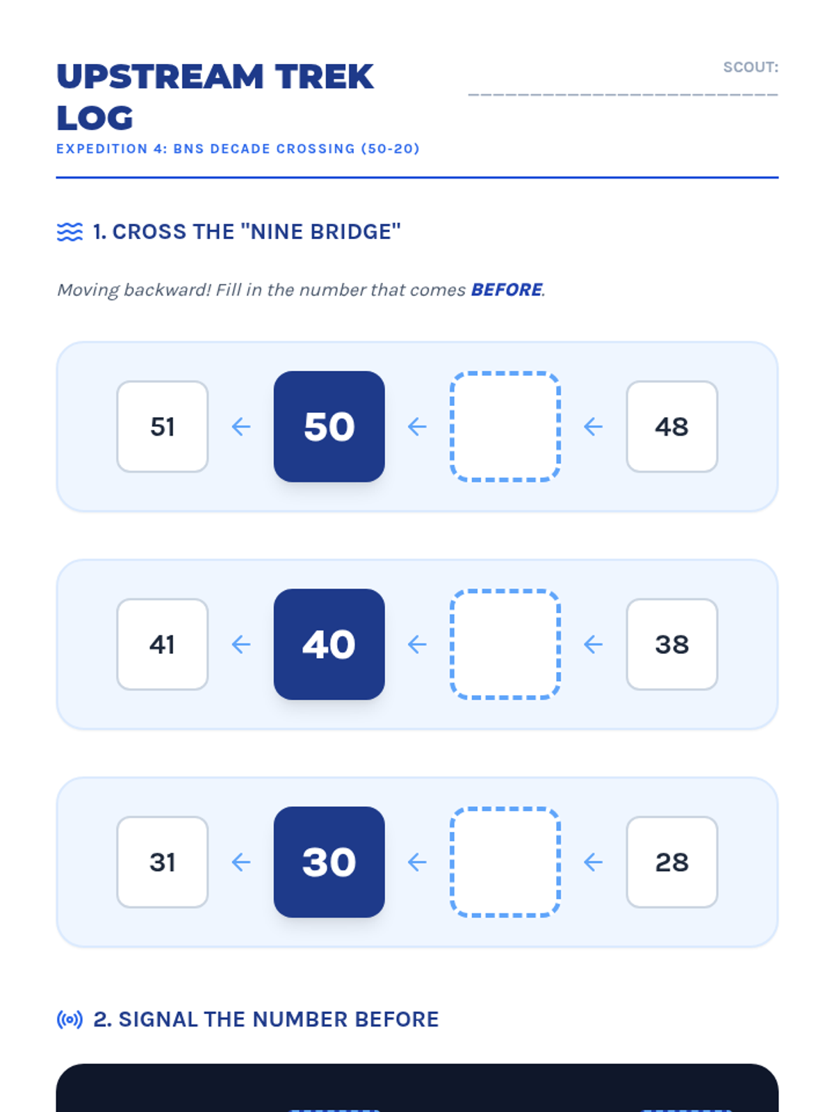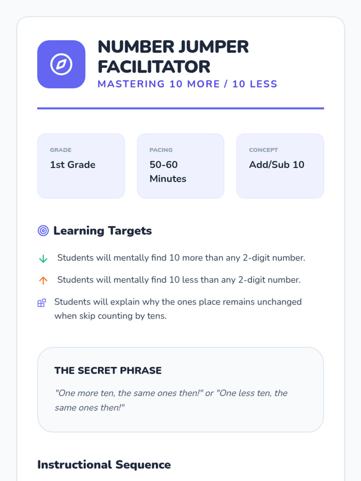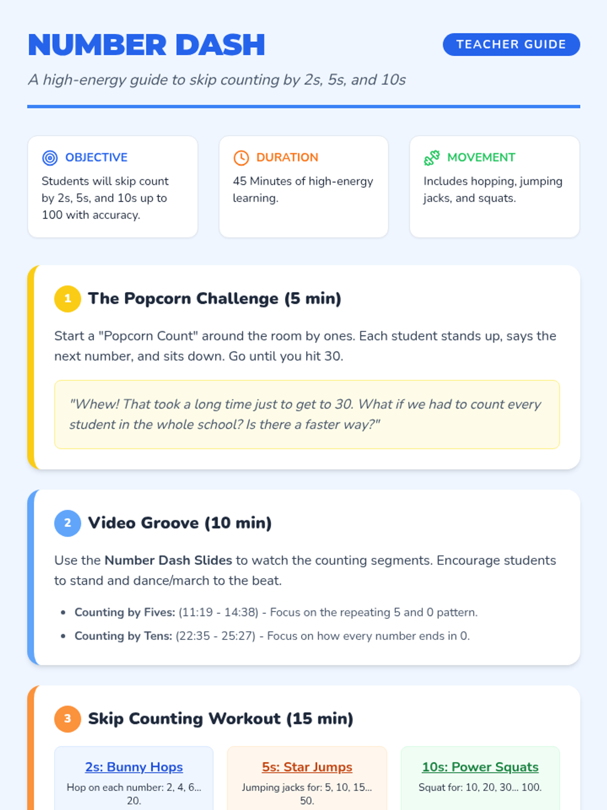 Counting SequenceSequential number naming and cardinal counting principles for early learners. Develops fluency in forward and backward sequences while introducing skip-counting patterns.