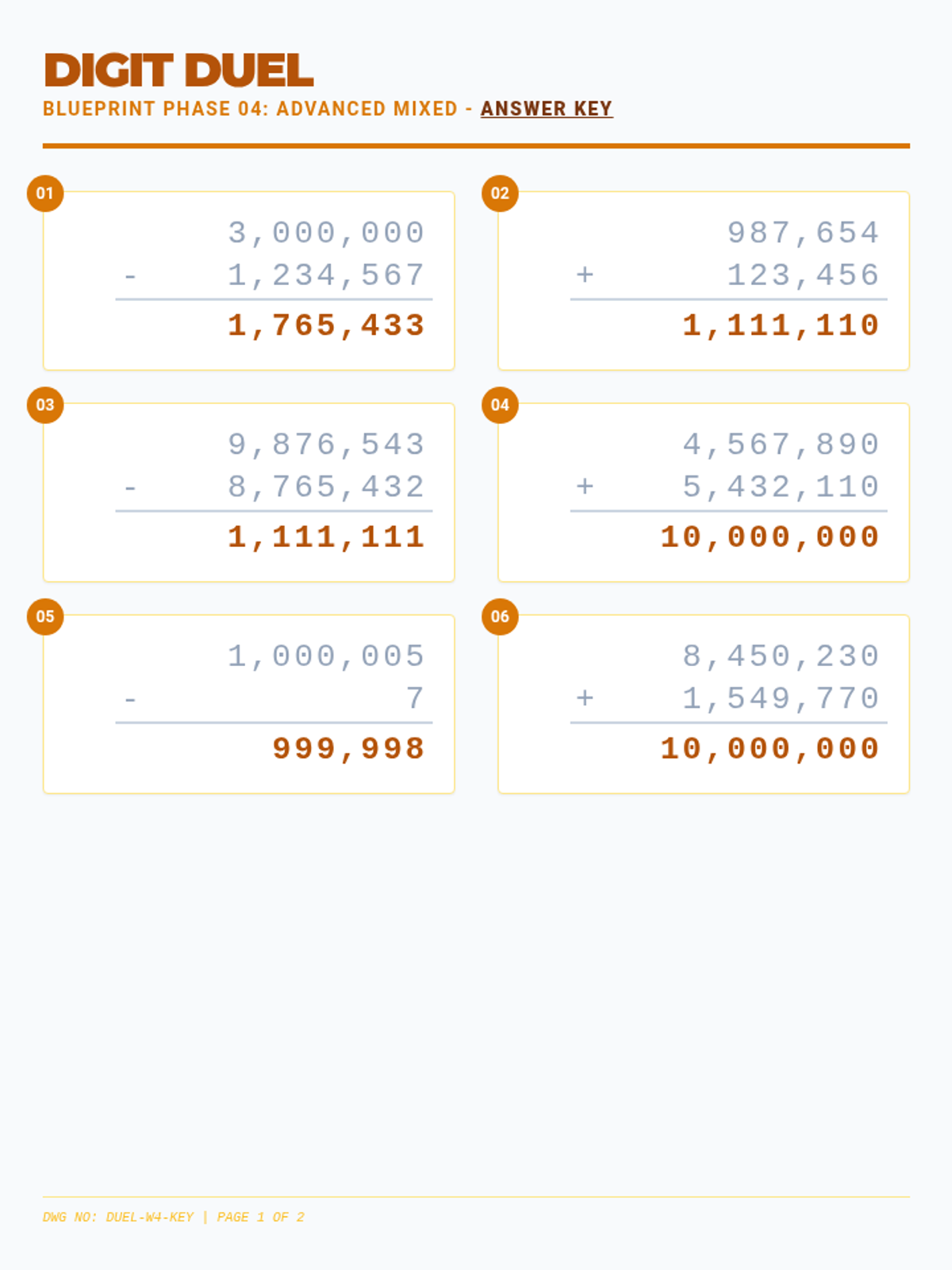 Digit Duel Answer Key