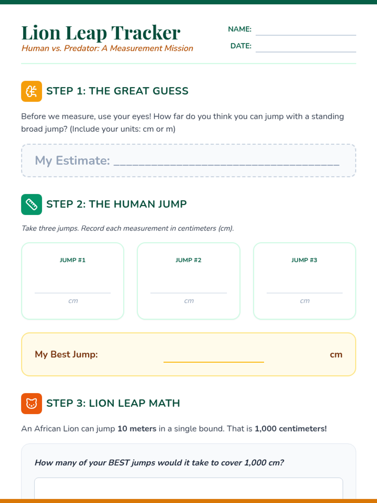 Downhill Descent Activity Sheet