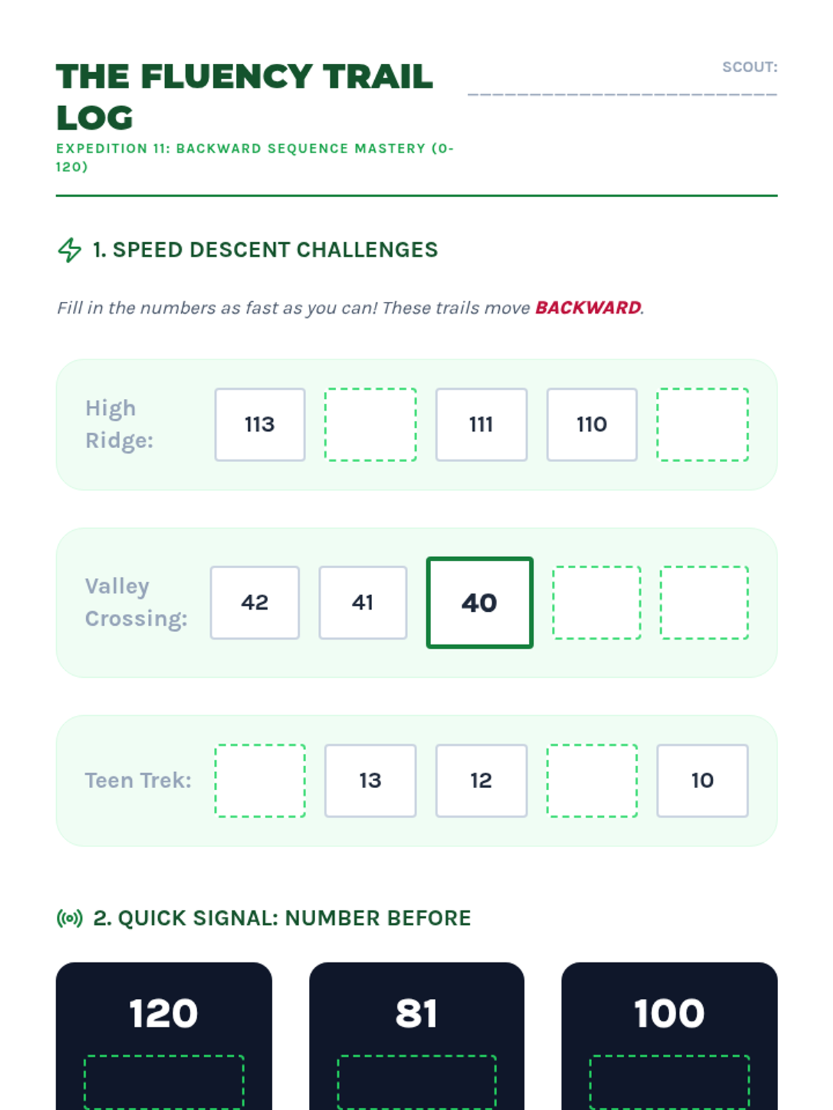 Fluency focus on backward sequences across the full 0-120 range.