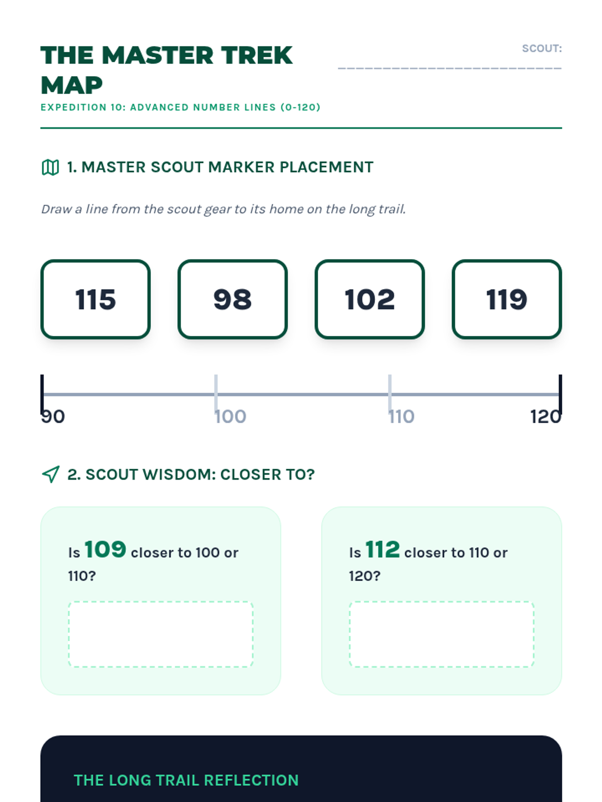 Advanced number line navigation and relative position (0-120).