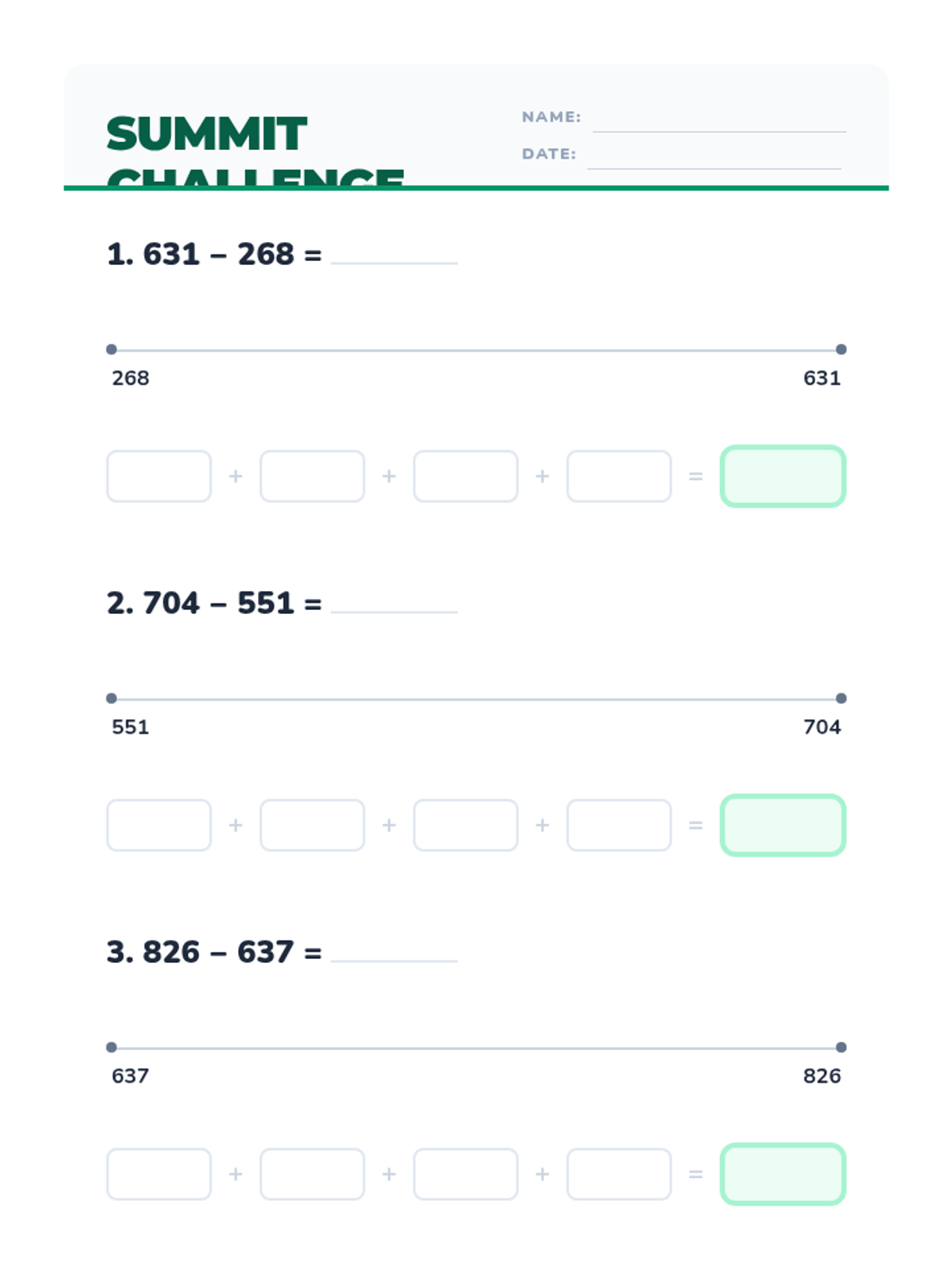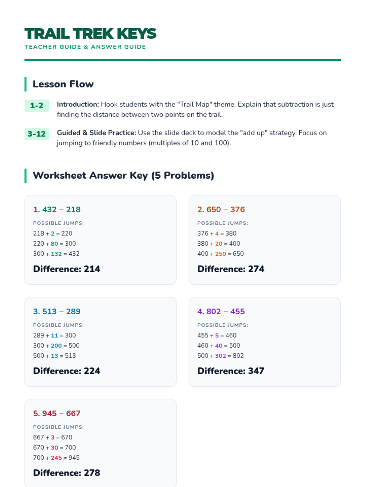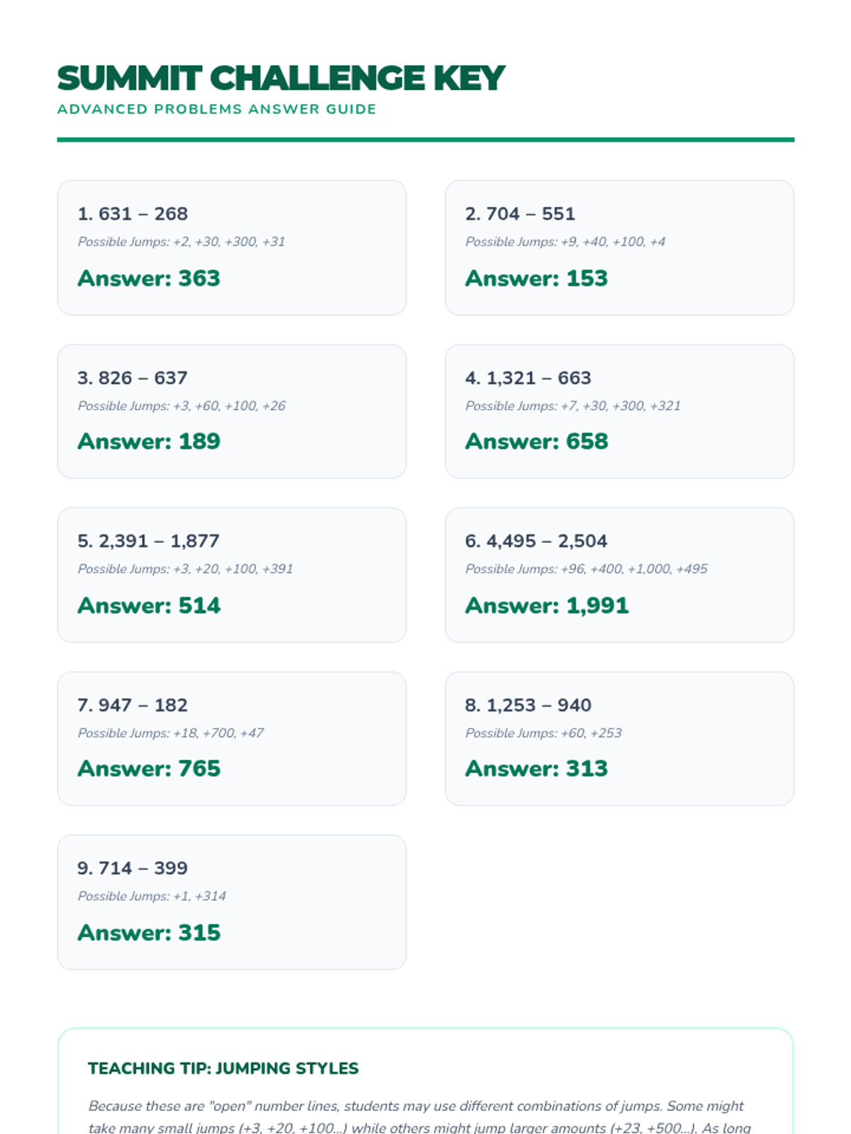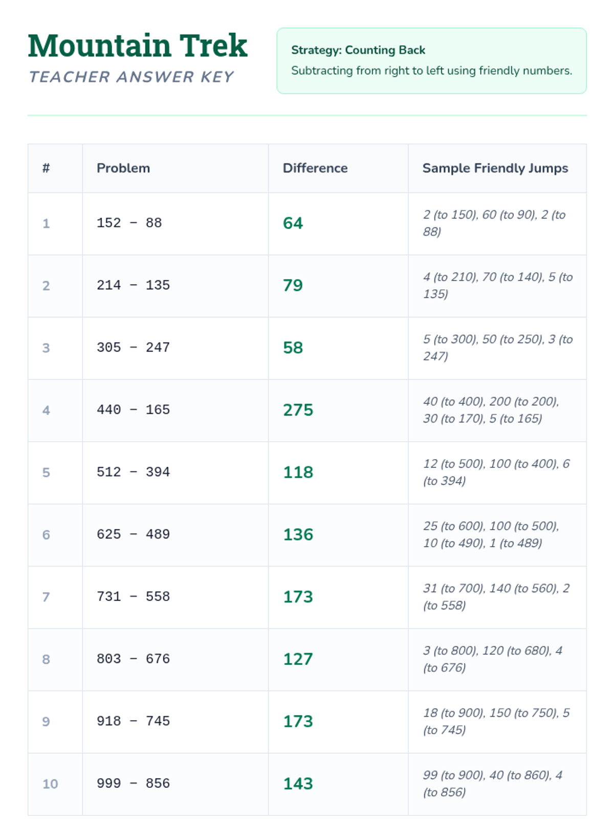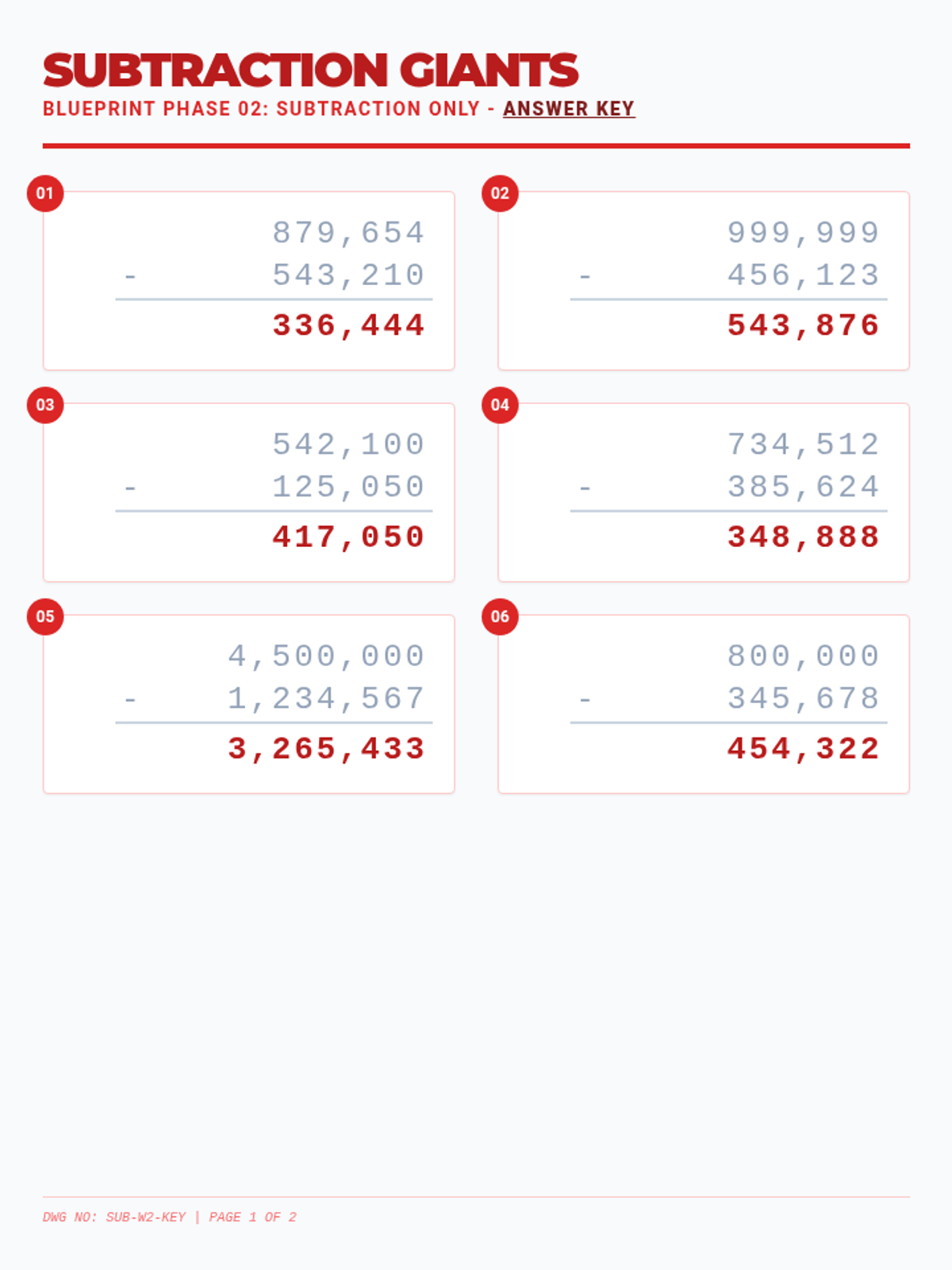 Subtraction Giants Answer Key