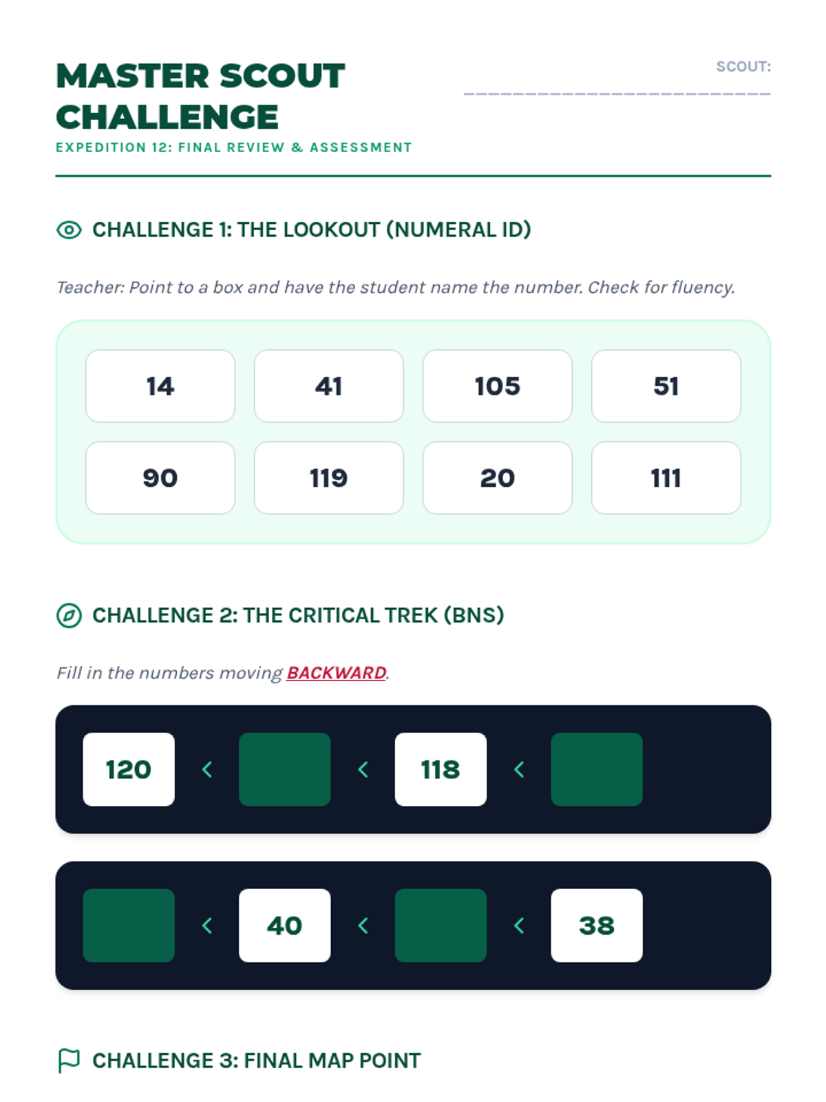 Final review and assessment of numeral ID and counting sequences.