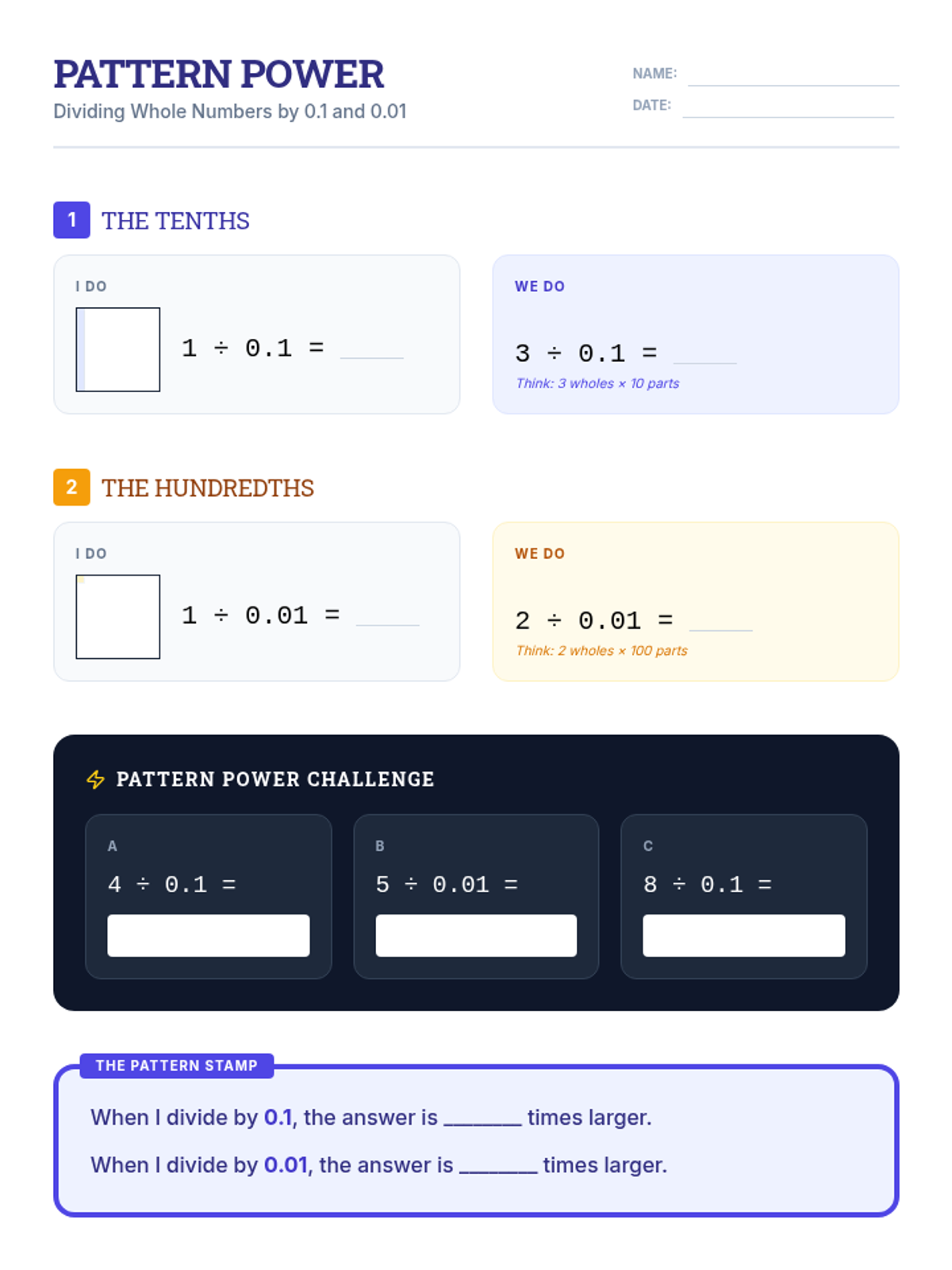 Four Operations and PatternsMulti-digit addition, subtraction, multiplication, and division strategies paired with identifying numerical patterns. Strengthens algebraic thinking through analysis of sequence rules and arithmetic relationships.