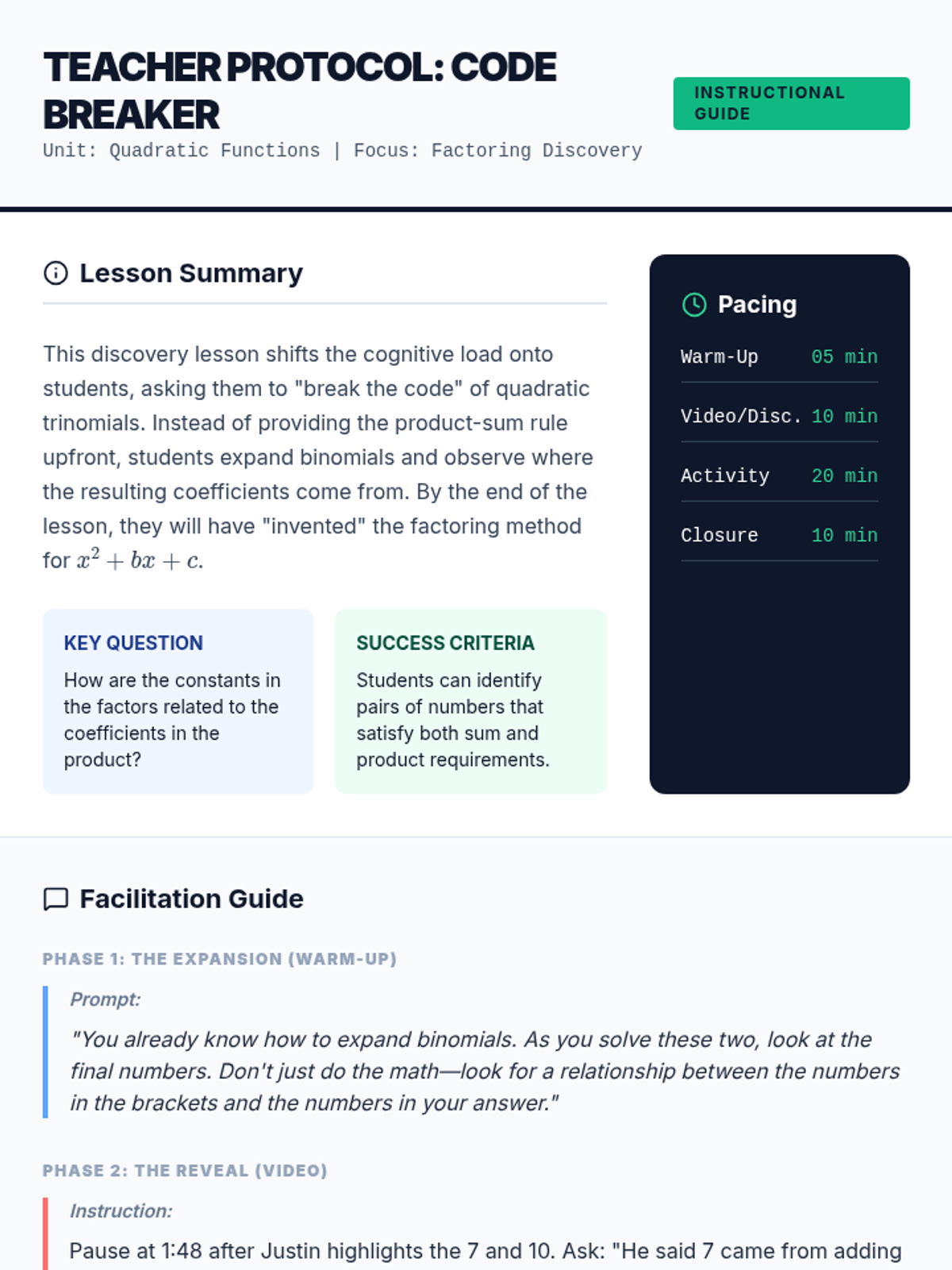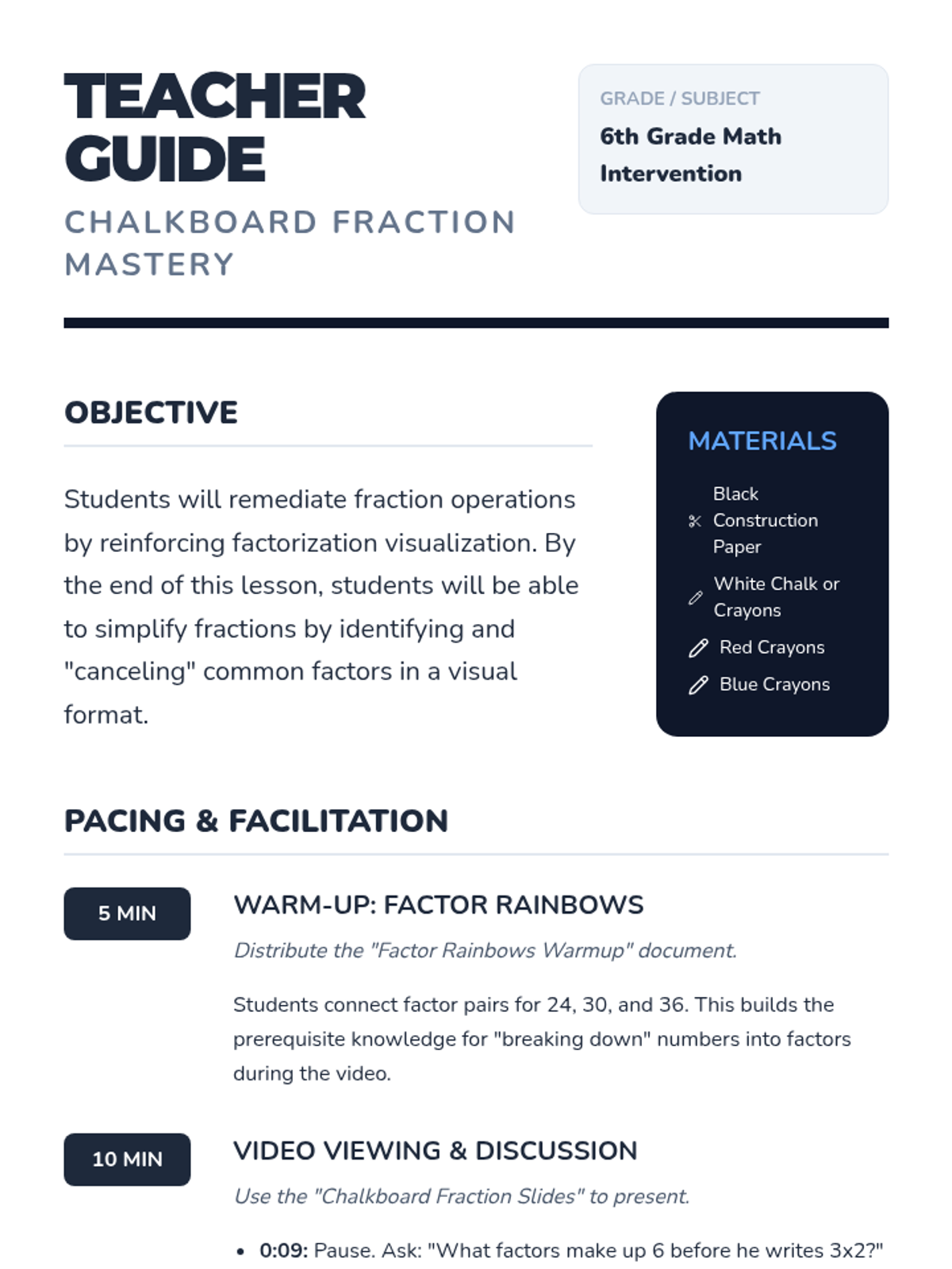 Multiplication Mastery Teacher Guide