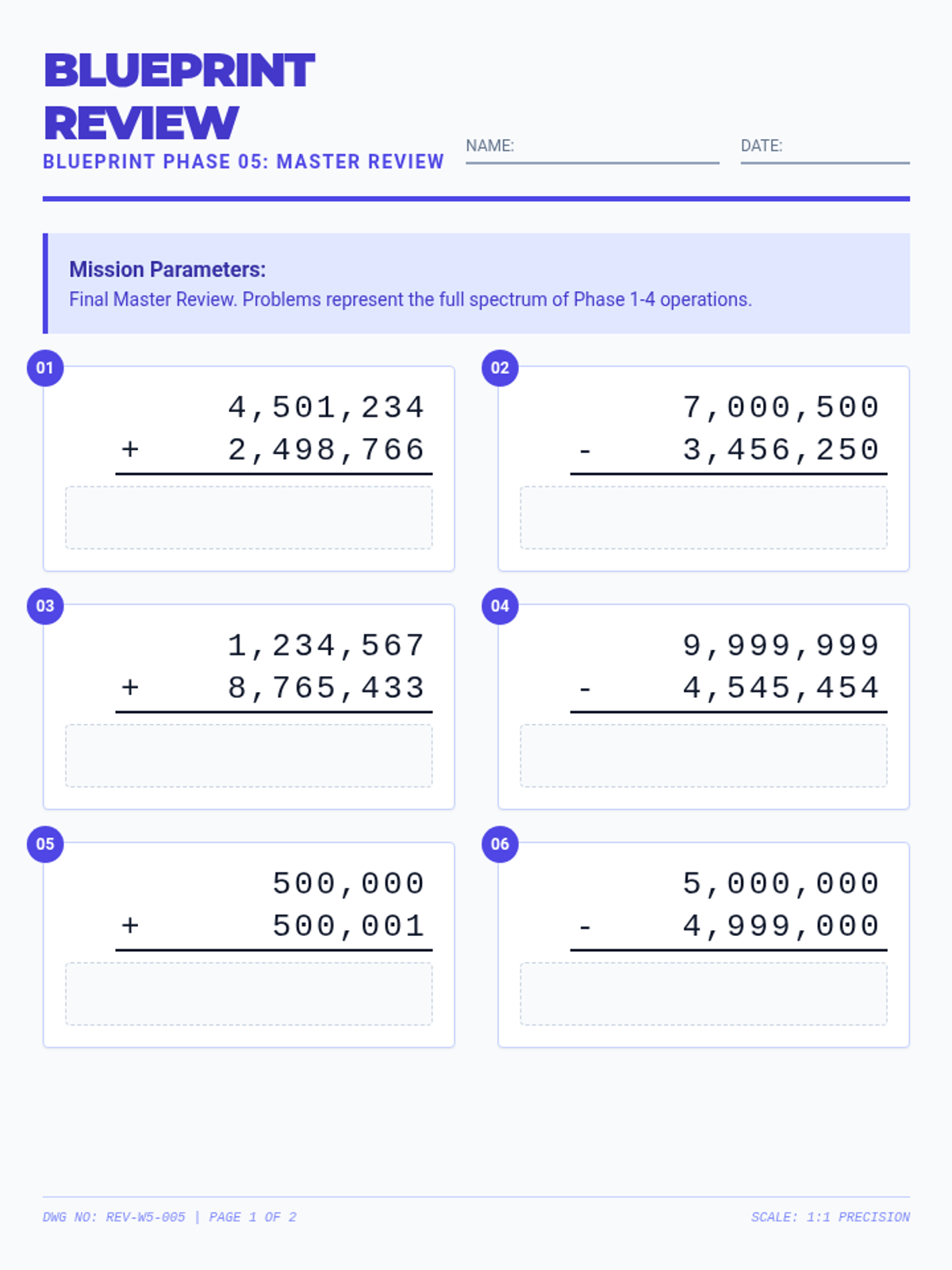 Initial mixed practice of addition and subtraction to build fluency and operational flexibility with large numbers.