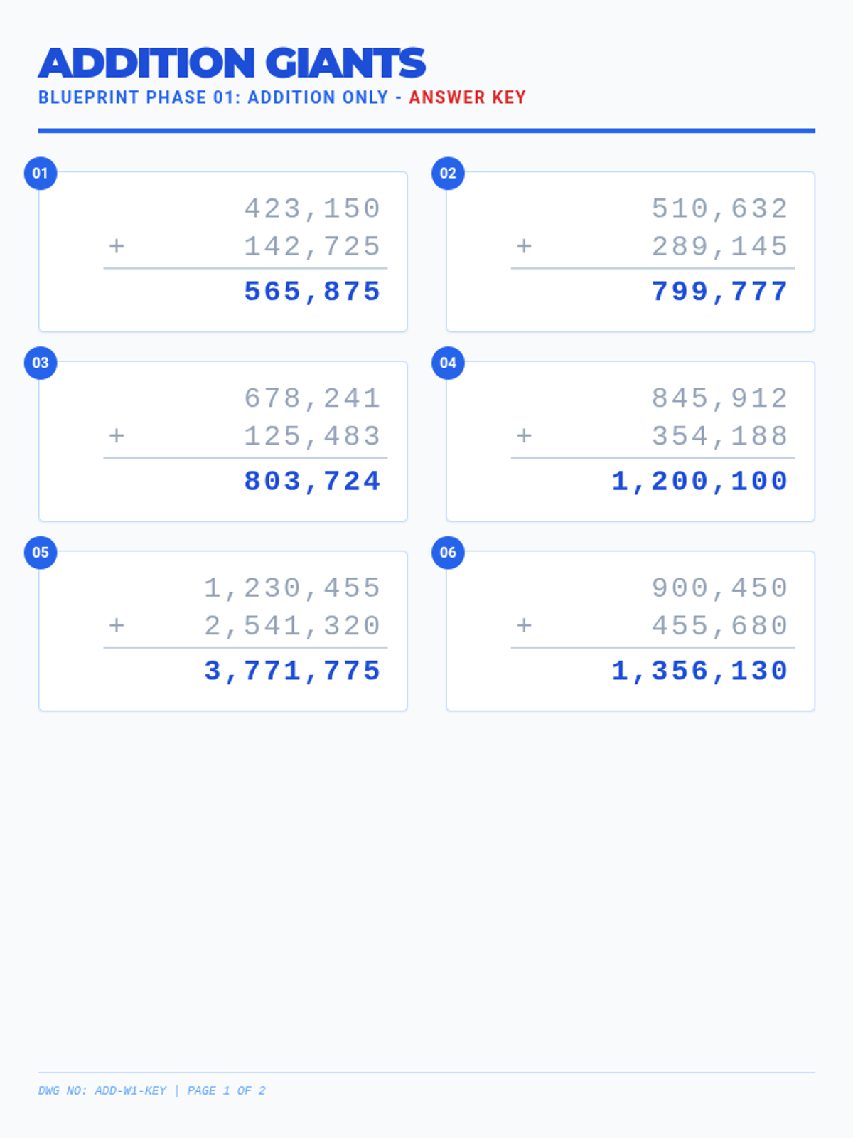 Addition Giants Answer Key