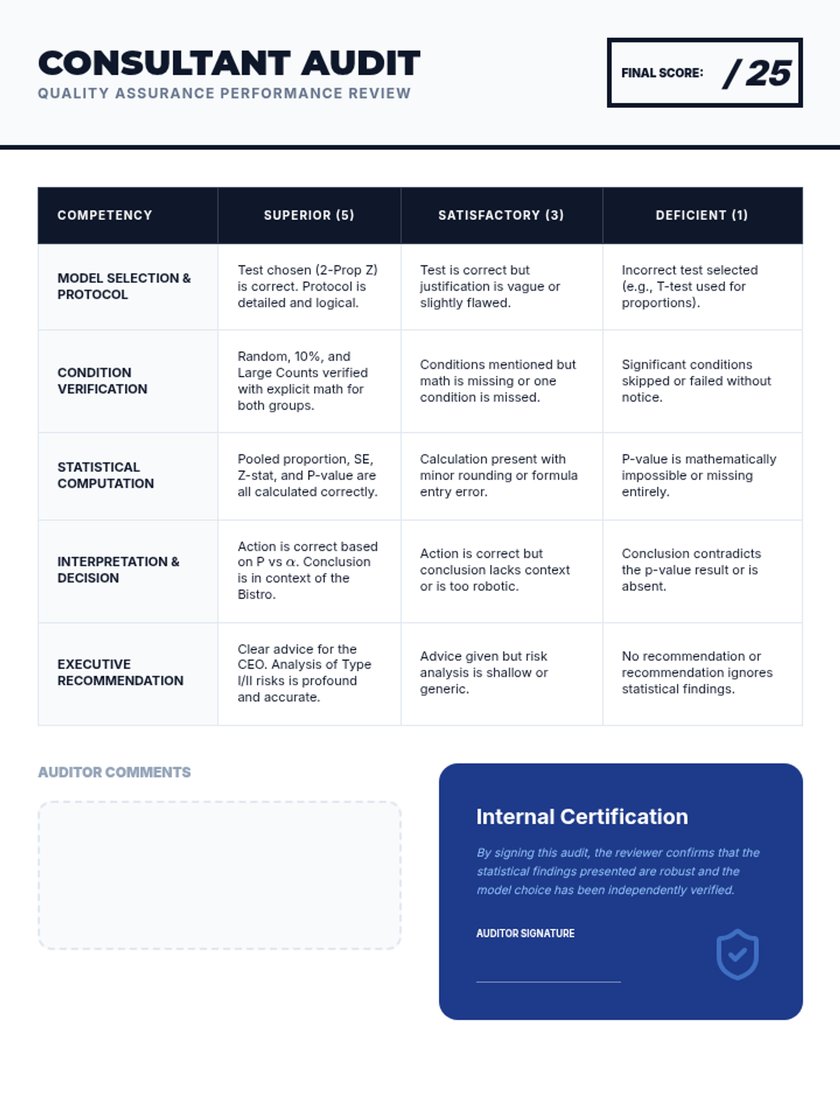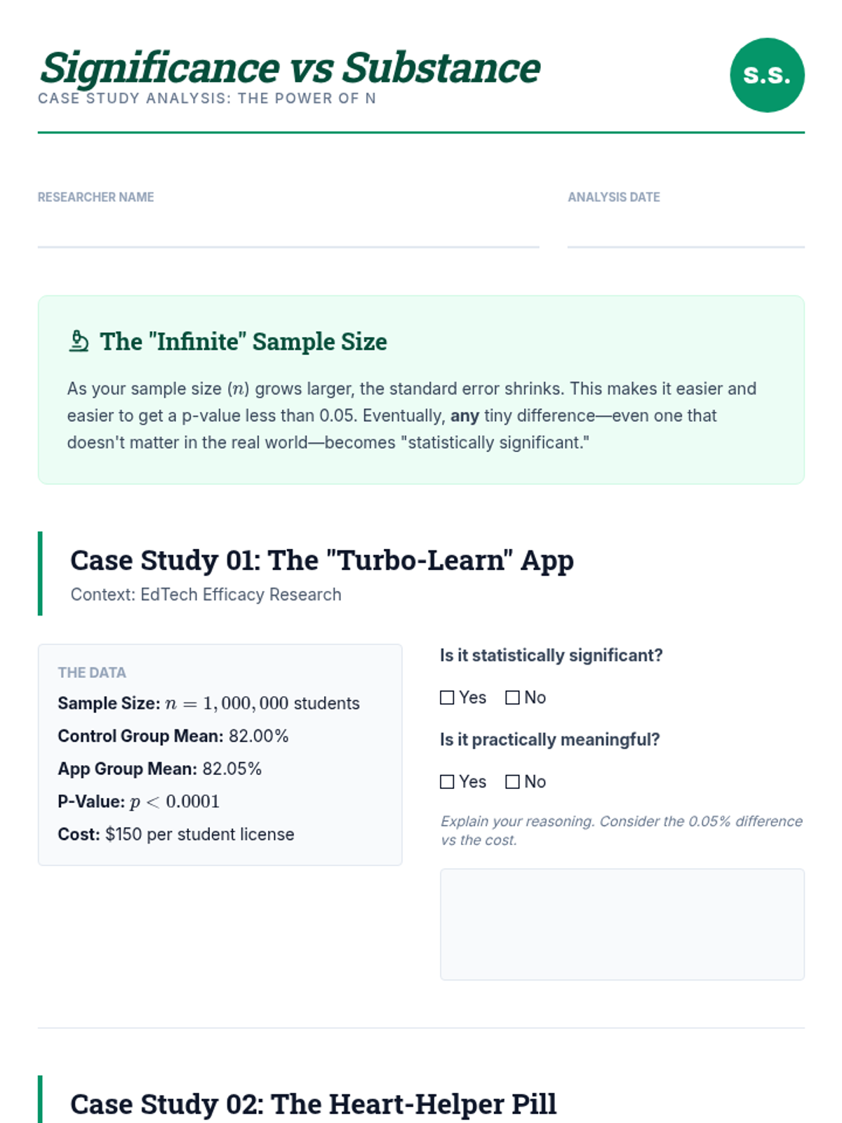 A culminating case study where students analyze clinical trial data to determine treatment efficacy and write a formal statistical report.
