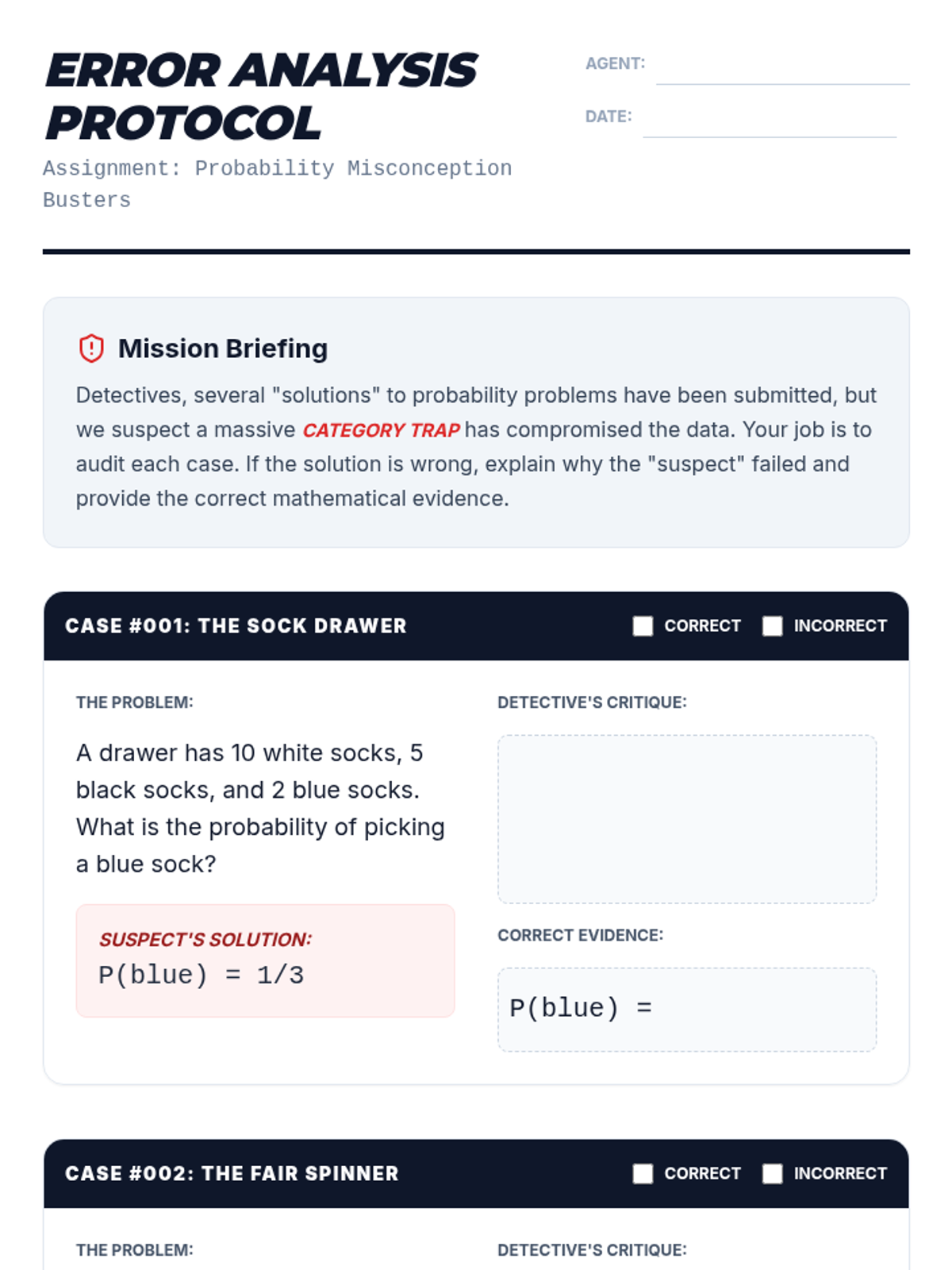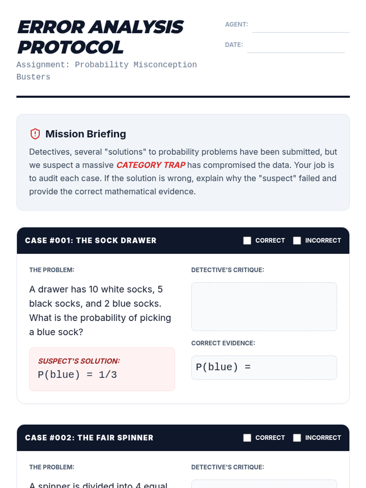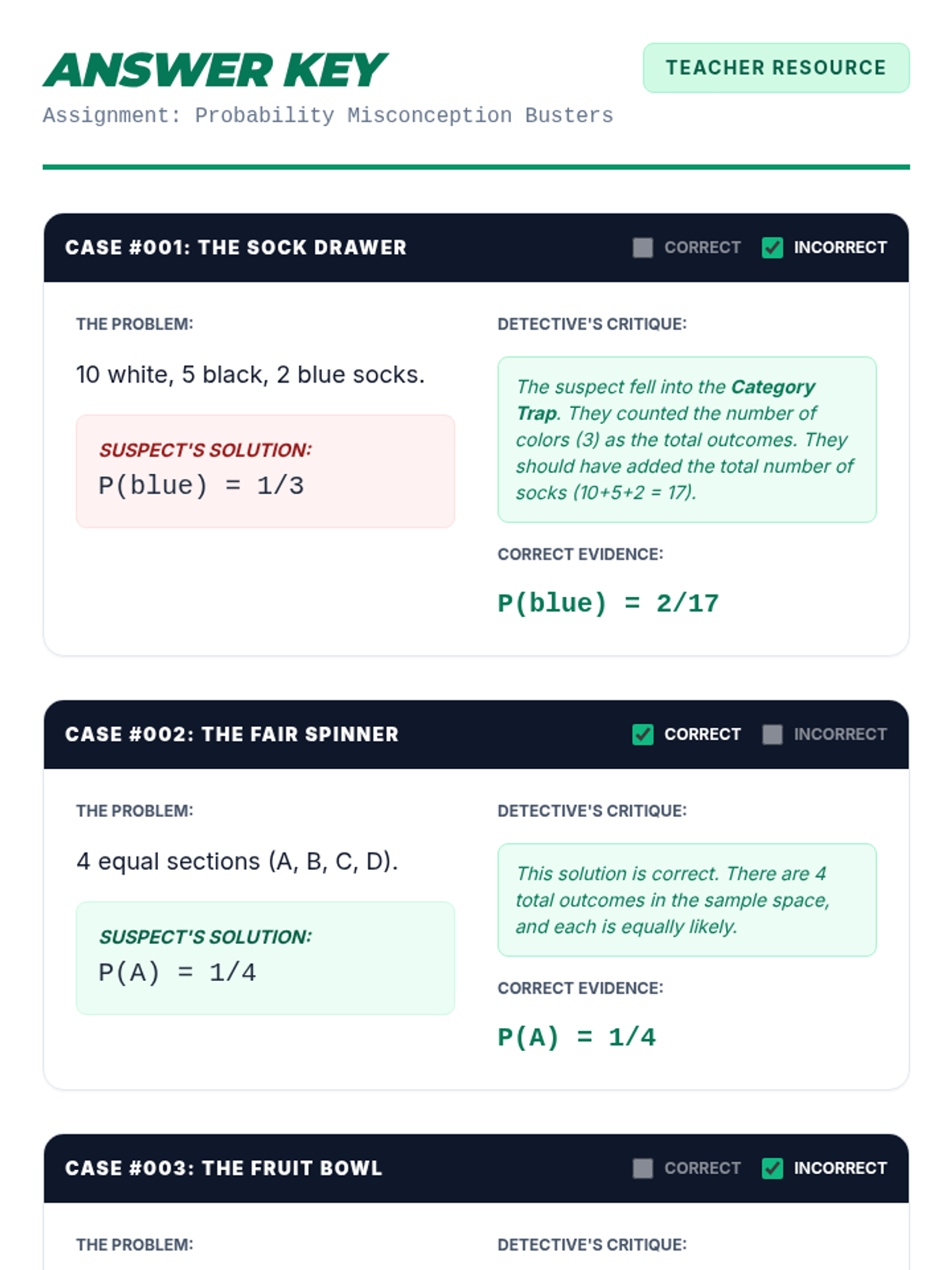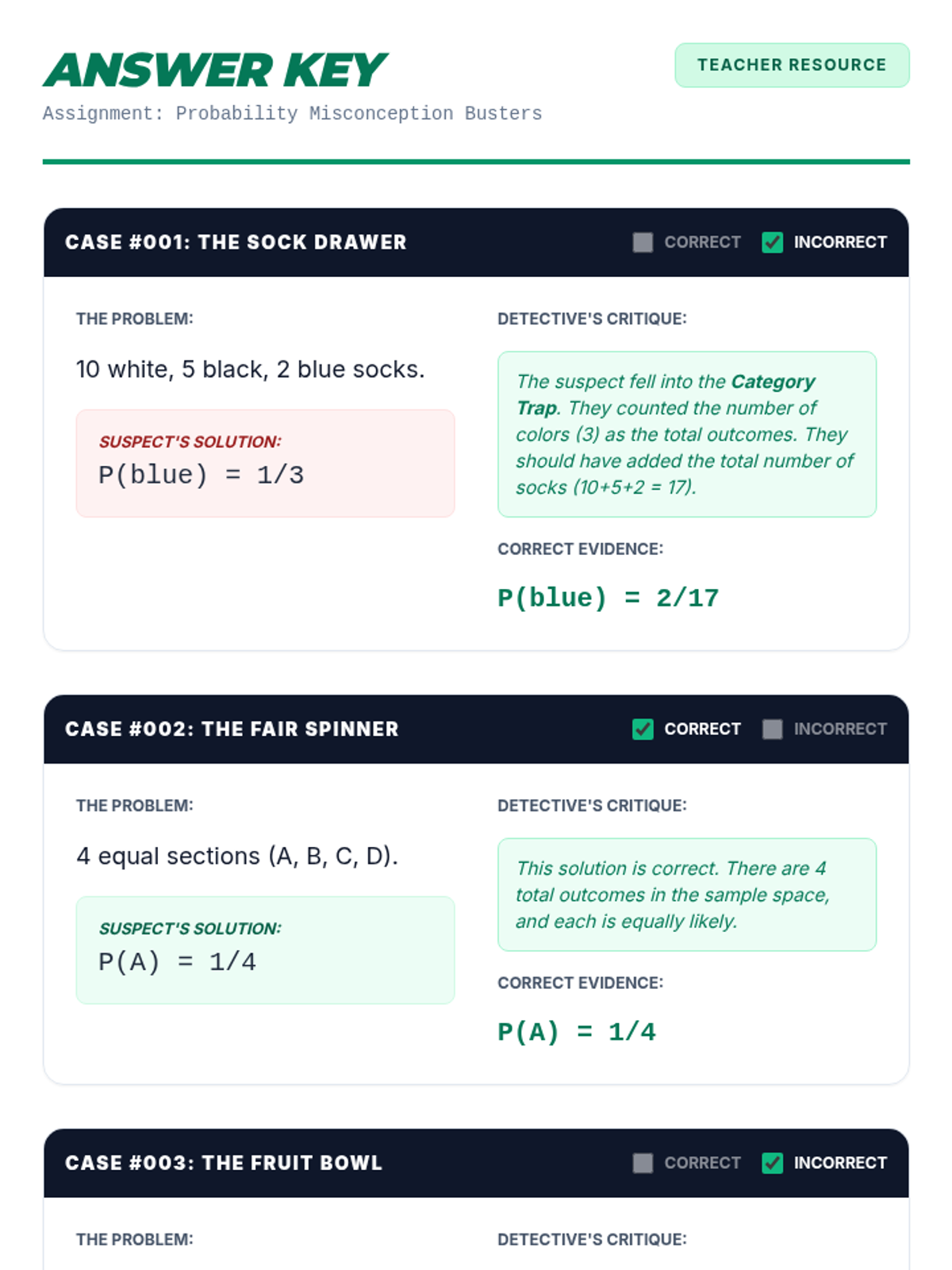 Students investigate and debunk the common 'Category Trap' in simple probability. They will learn to distinguish between the number of categories and the total number of individual outcomes to accurately define sample spaces.
