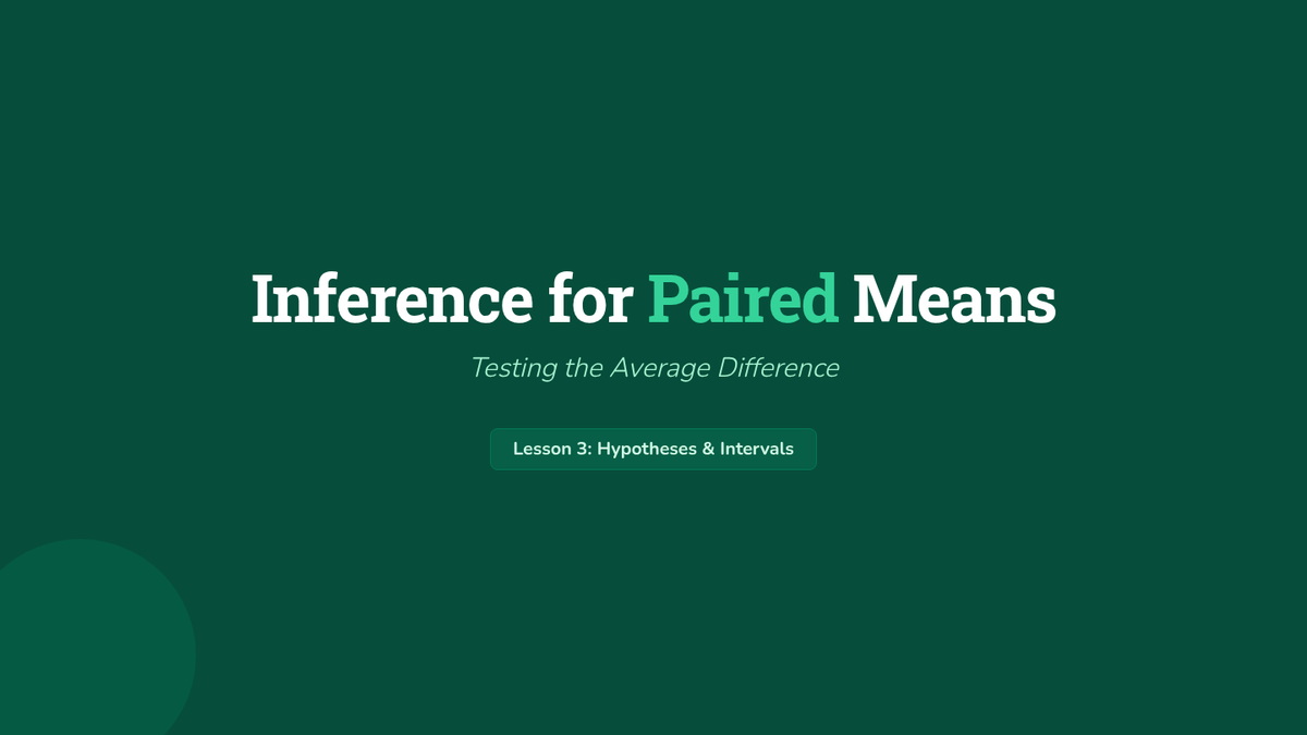 Students perform hypothesis tests and calculate confidence intervals for the mean difference. The lesson emphasizes treating the differences as a single sample for a one-sample t-procedure.