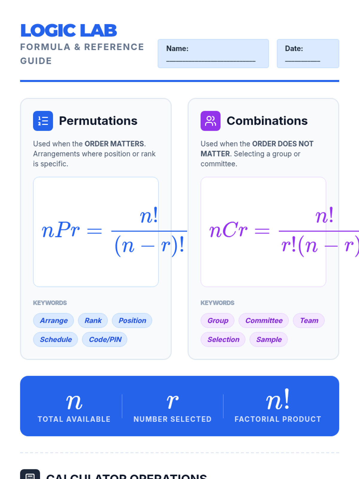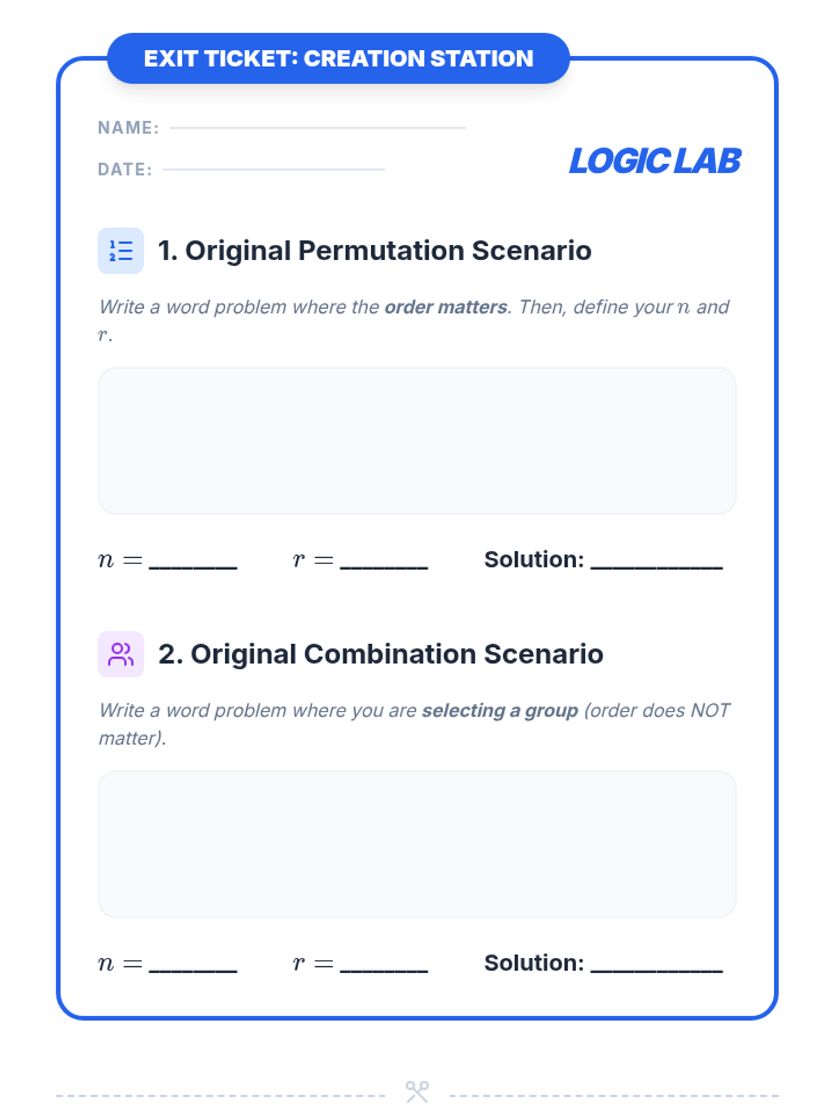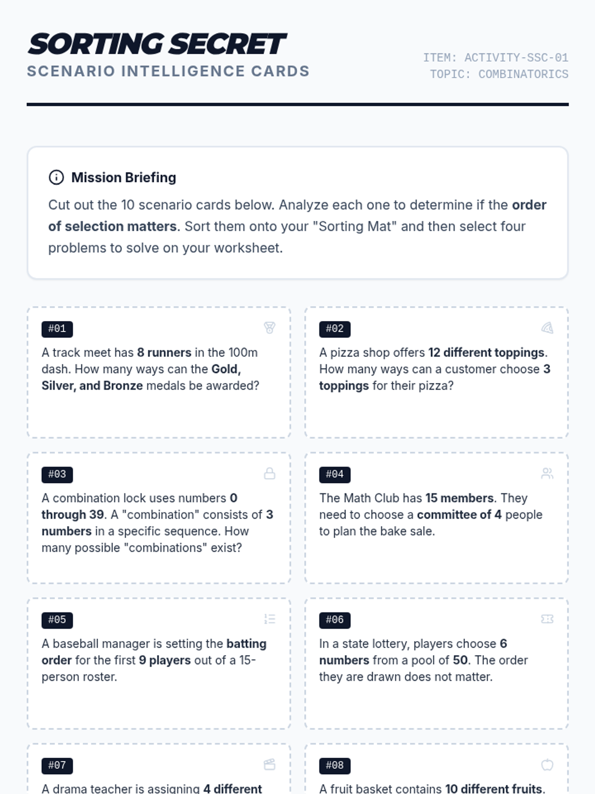 Students will master the distinction between permutations and combinations by identifying keywords in complex word problems. This lesson uses a 'Keyword Detective' theme to help students analyze scenarios for order-dependence versus group-membership.
