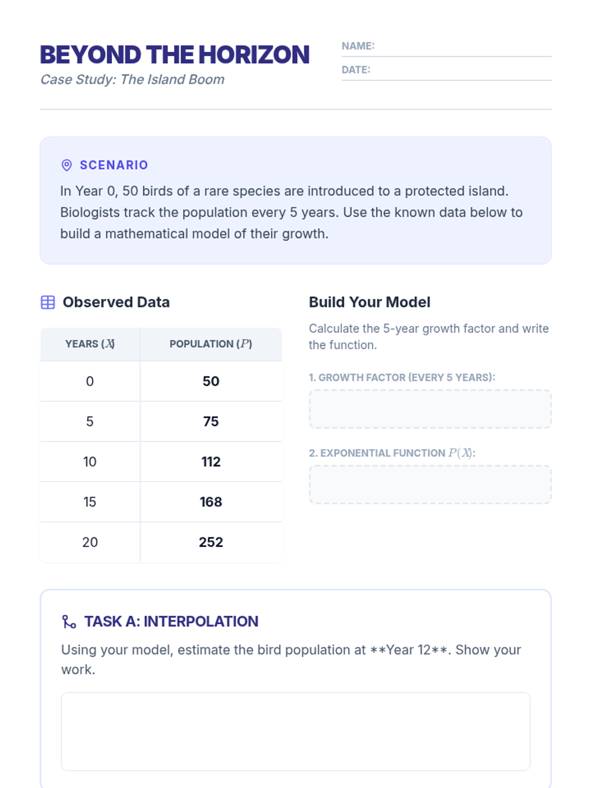 Students take raw data tables and practice plotting points to visualize non-linear trends (quadratic or exponential). They learn to sketch smooth curves to predict future data points, visualizing growth and decay.