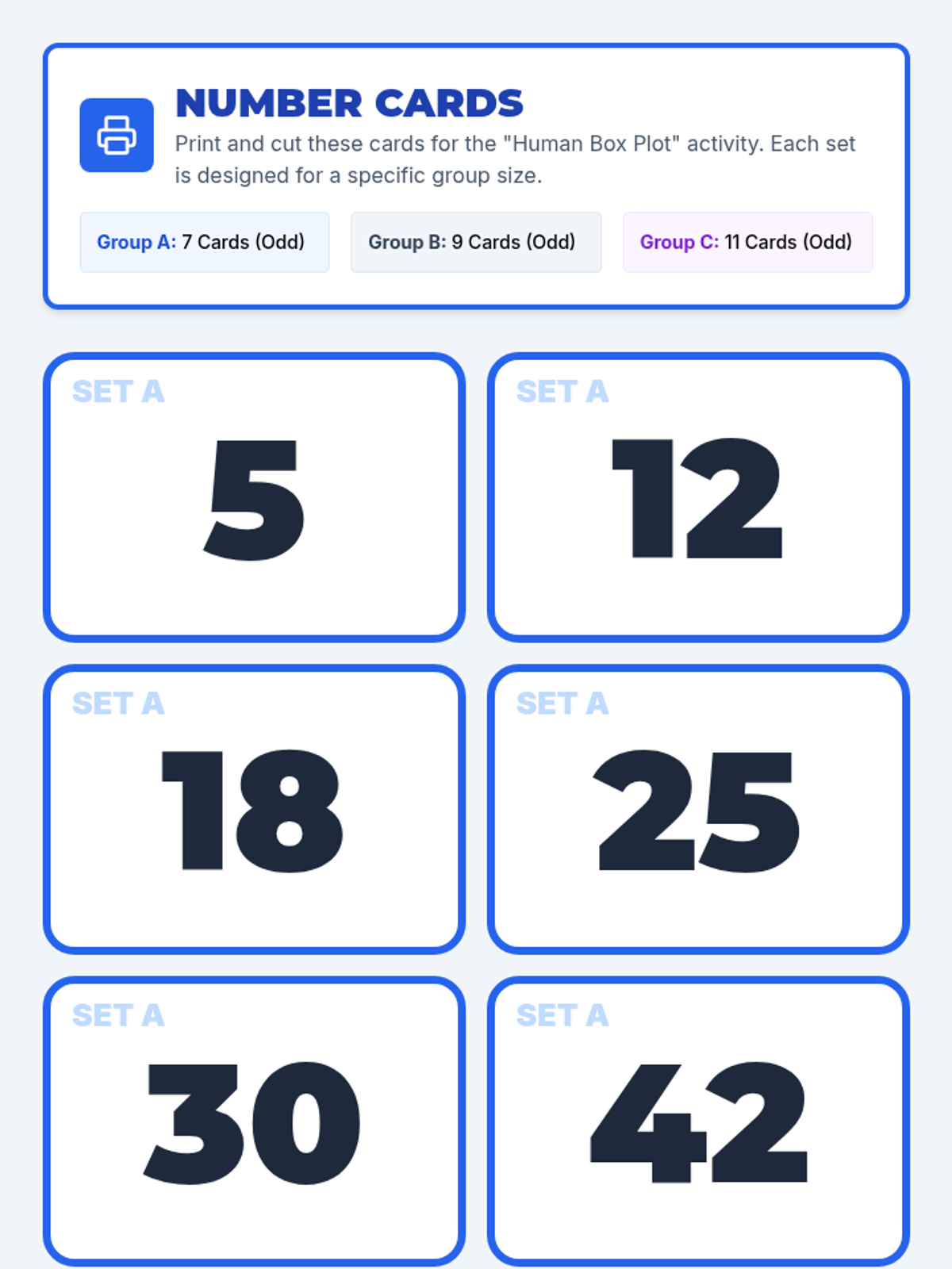 A hands-on lesson where students physically represent data points to understand the five-number summary and construct box and whisker plots.