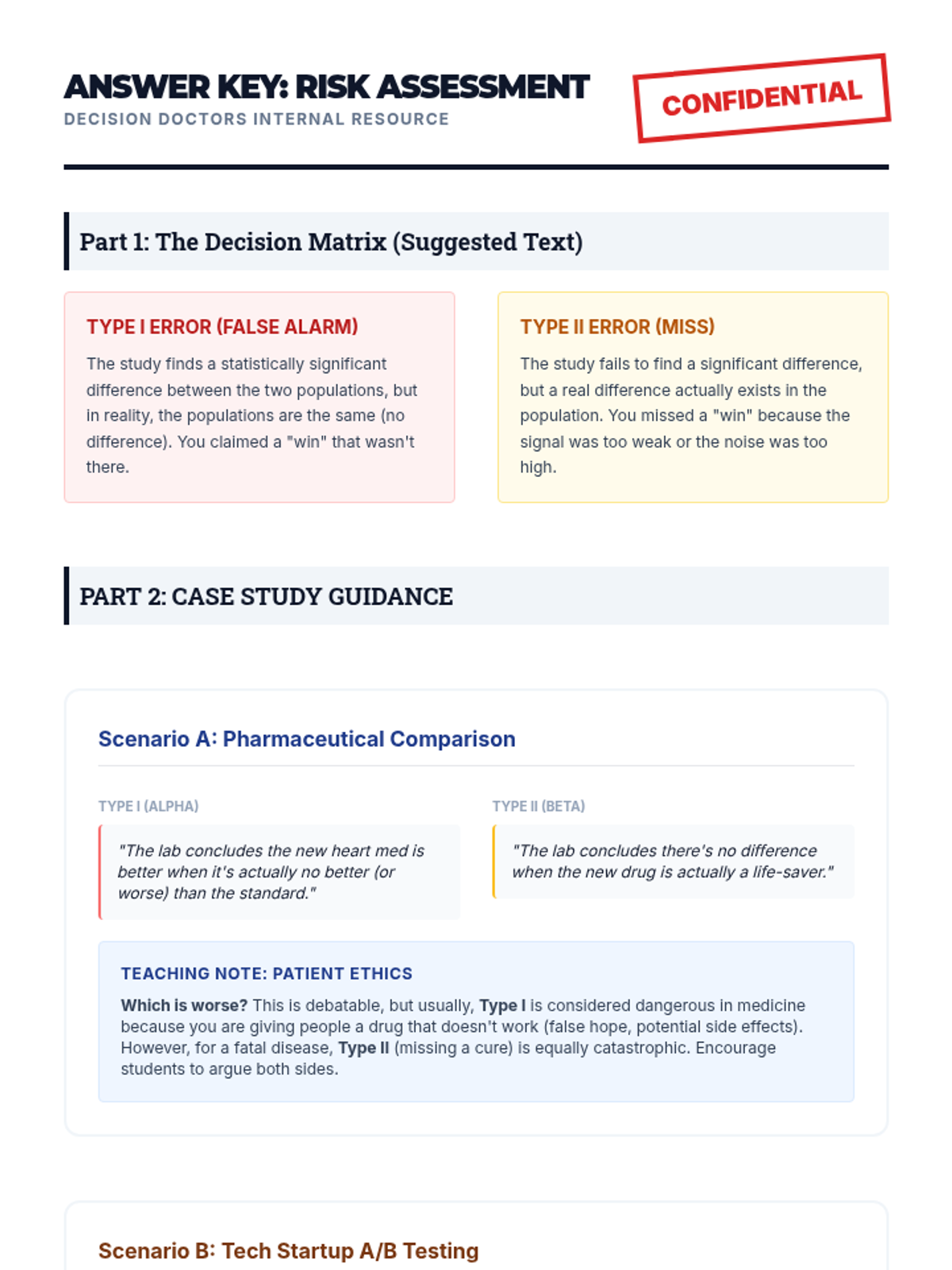 Explores the real-world impact and definitions of Type I and Type II errors within the context of comparative studies.