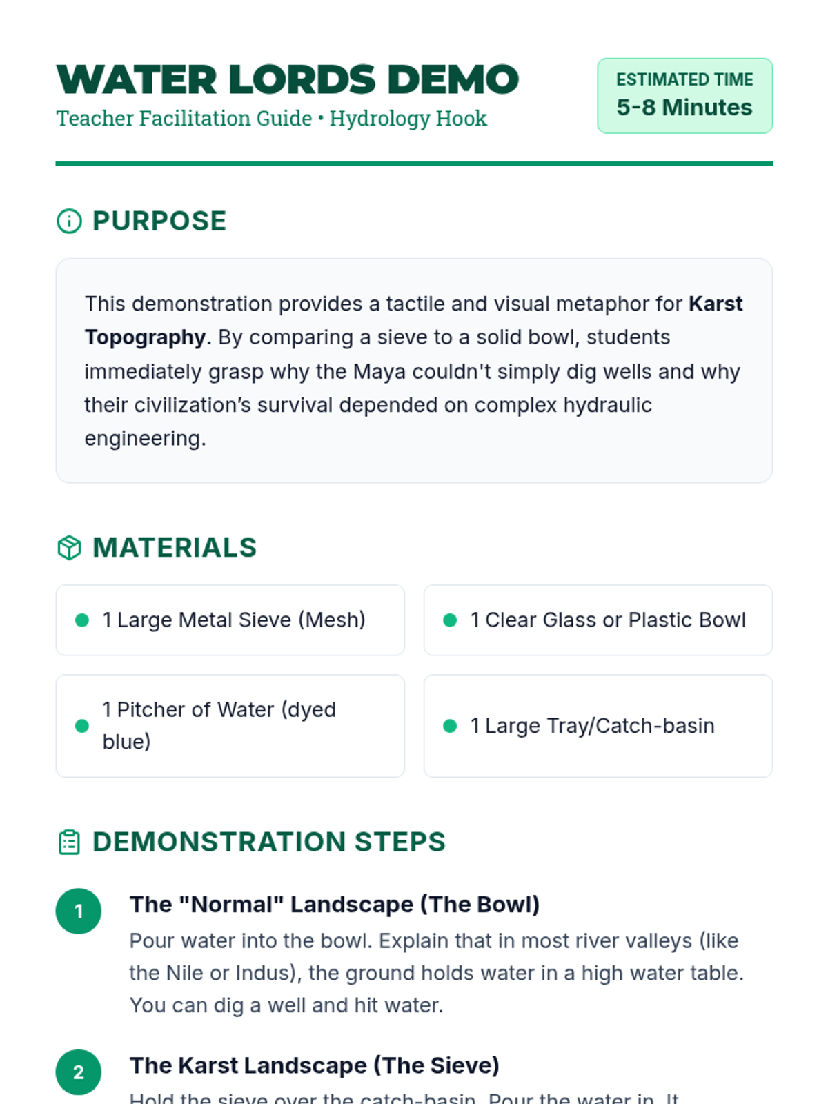 This lesson explores the intersection of hydrology and history, focusing on how Karst landscapes and El Niño events shaped the rise and fall of the Maya and Khmer civilizations through hydraulic engineering.