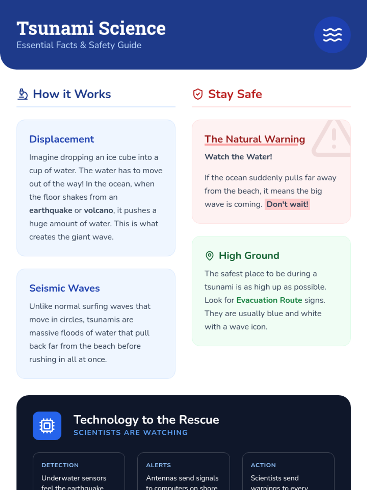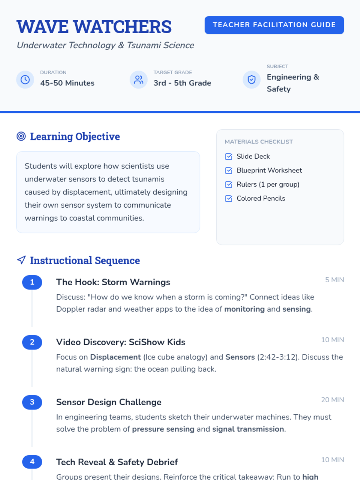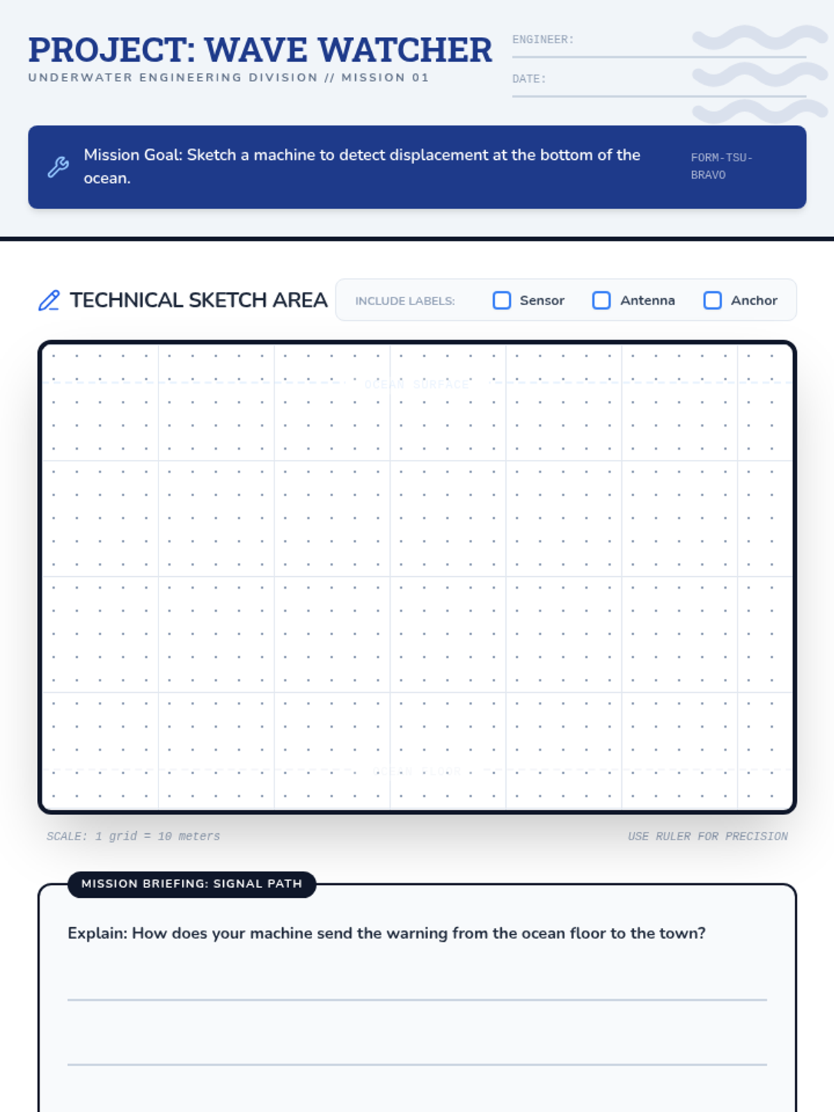 Students explore how technology and scientists prepare for tsunamis through a video analysis and a creative engineering design challenge to build an underwater sensor.