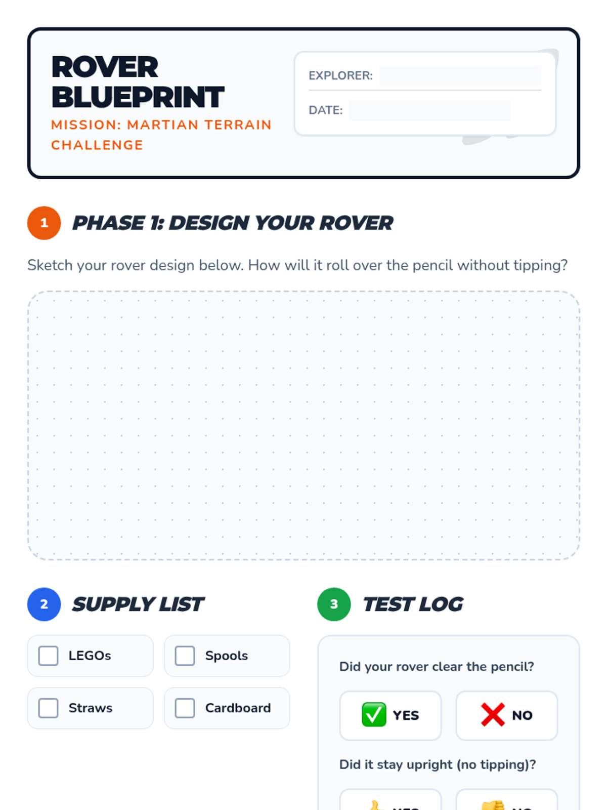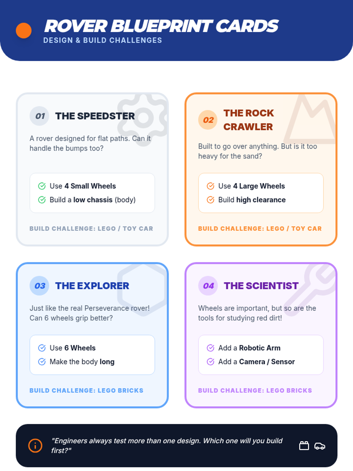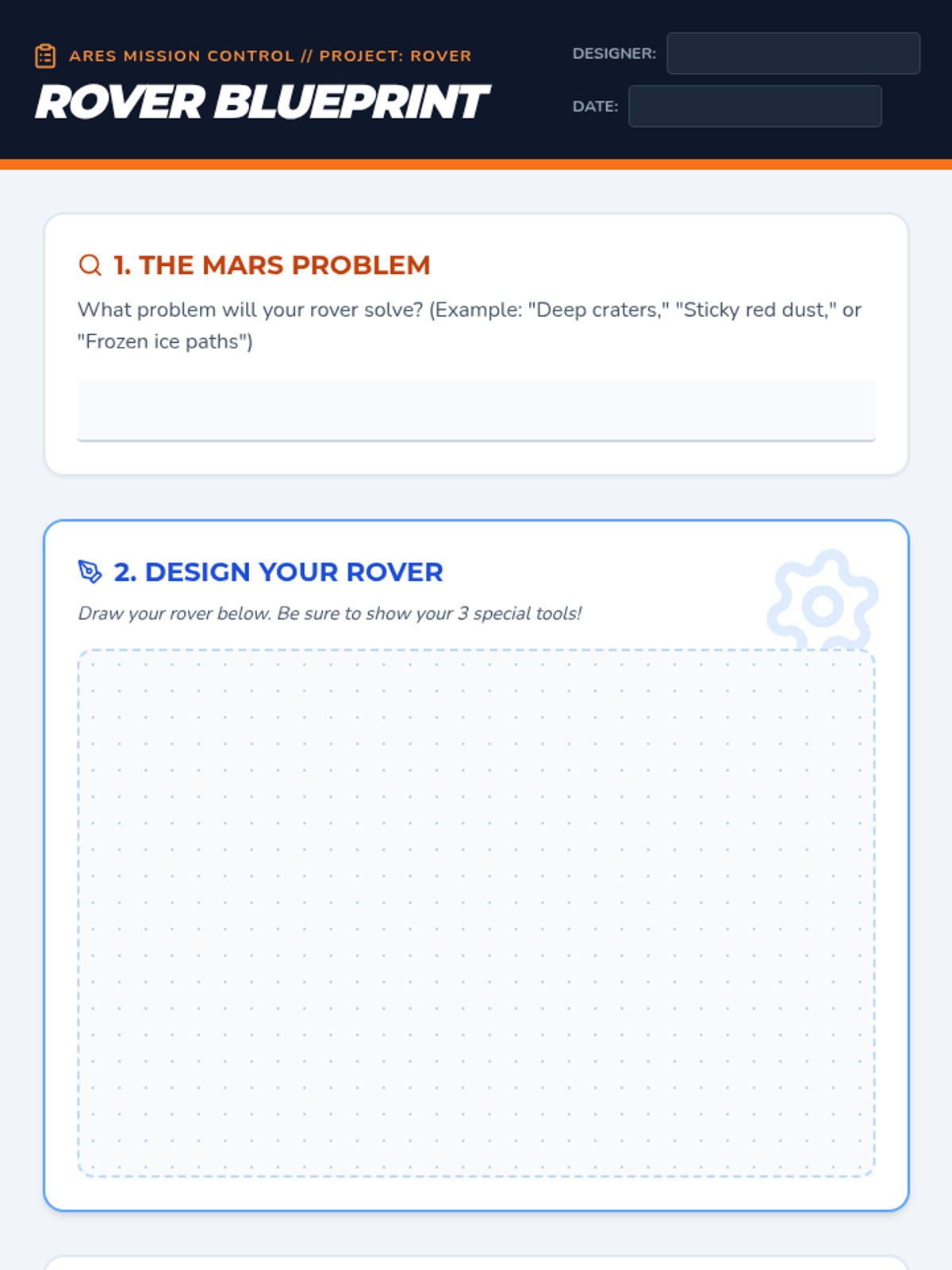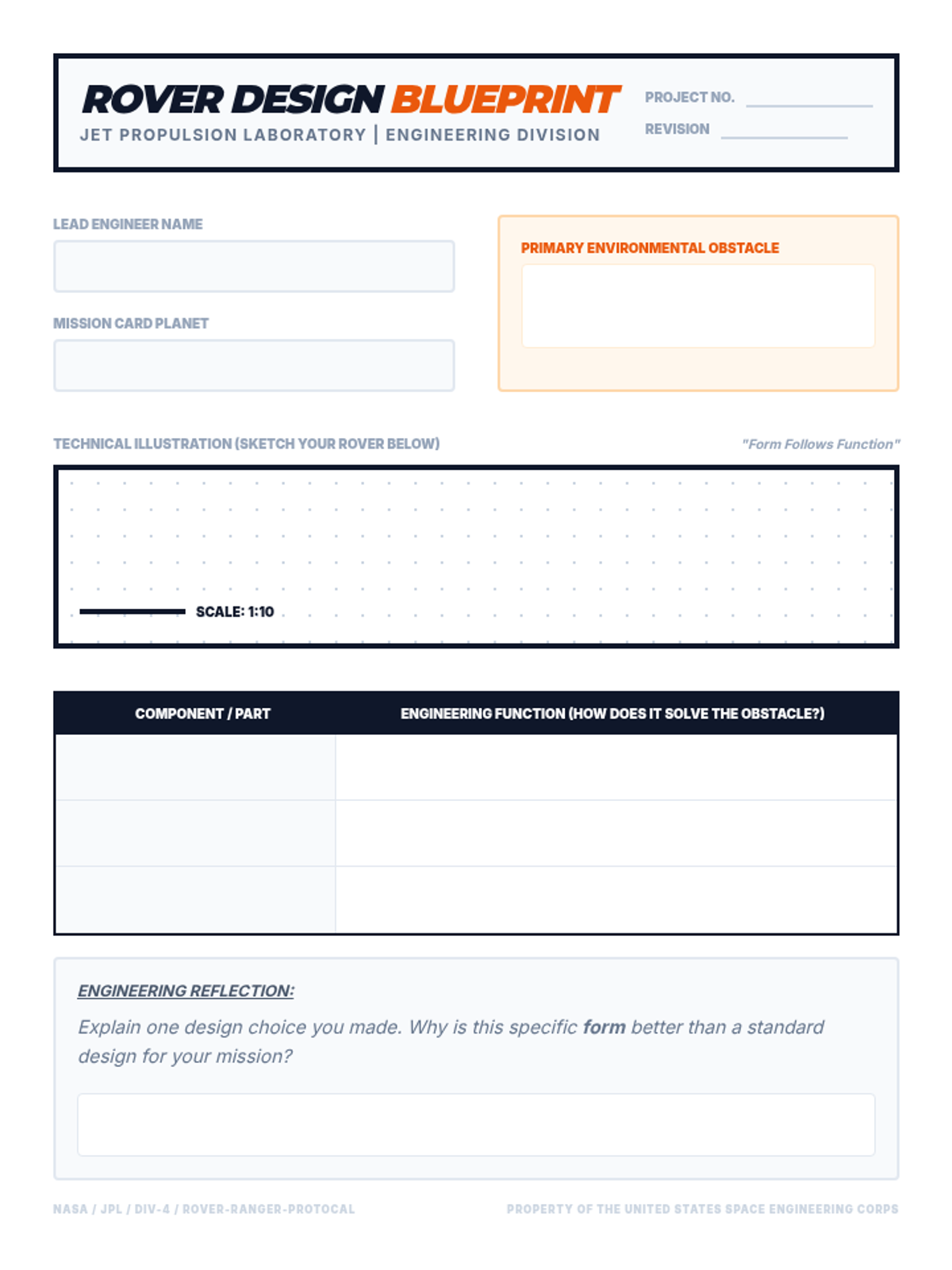 Students step into the role of NASA engineers to design a space rover tailored to the extreme terrain of a mystery planet, applying the principle of 'form follows function.'