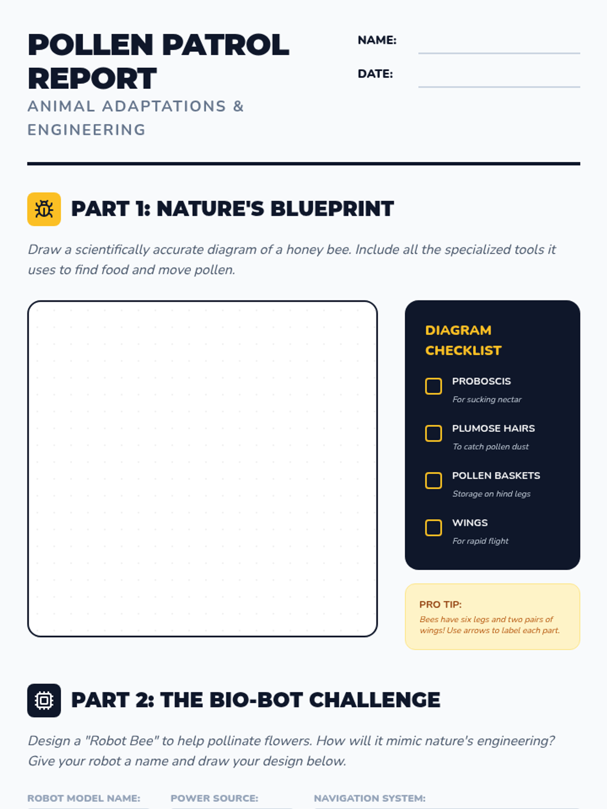 Students explore the concept of biomimicry, evaluate how nature solves engineering challenges, and design a 'Bio-Bot' robot for extreme environments using biological traits for efficiency.